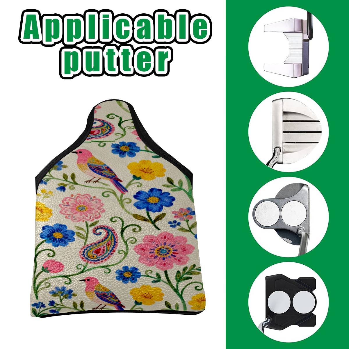 Mallet Putter Cover,Golf Club Head Cover, PU Leather Iron Head Covers Set Gift for Travel Cases Protector Fit Most, Easily Slips on and Secures Colorful Vine Texture Design