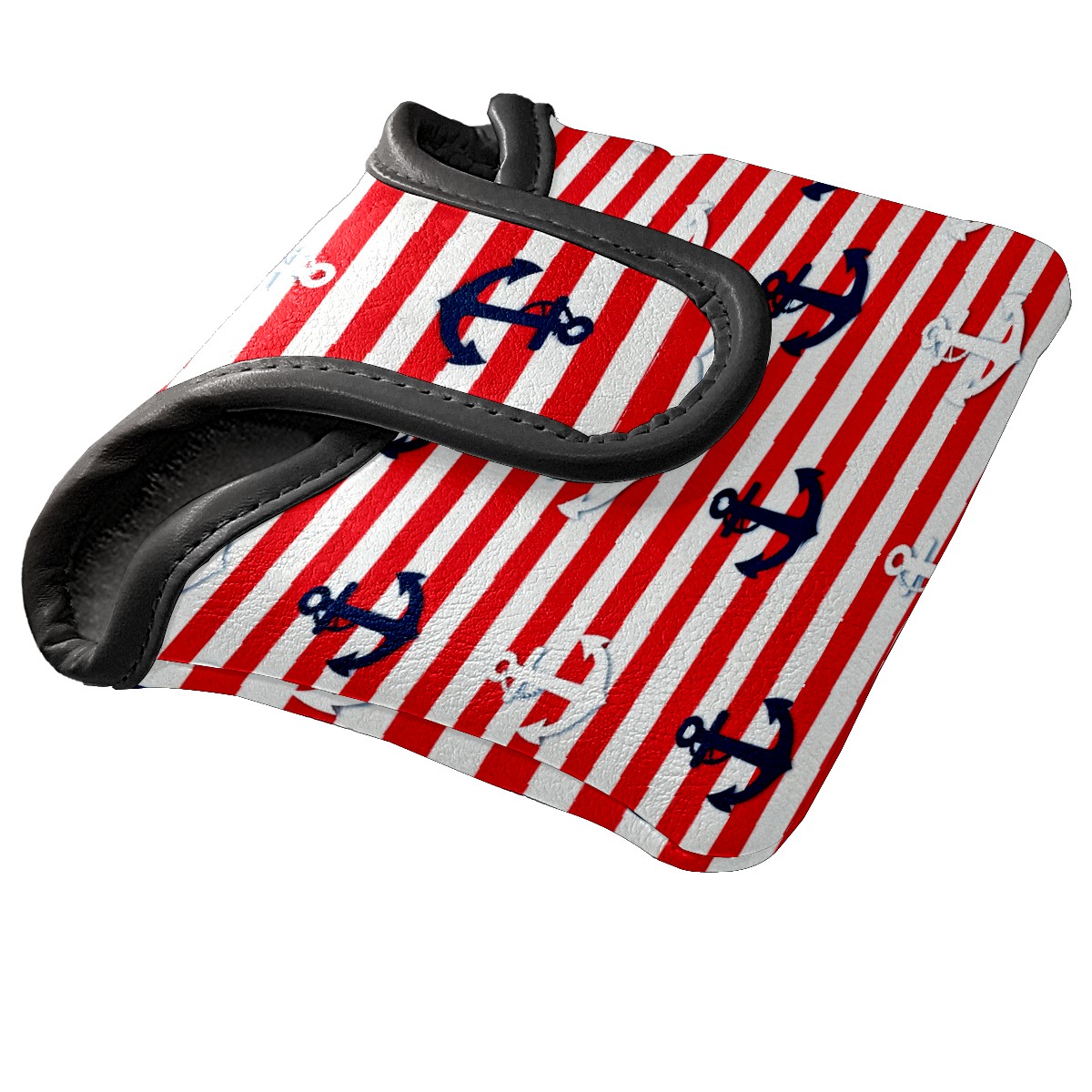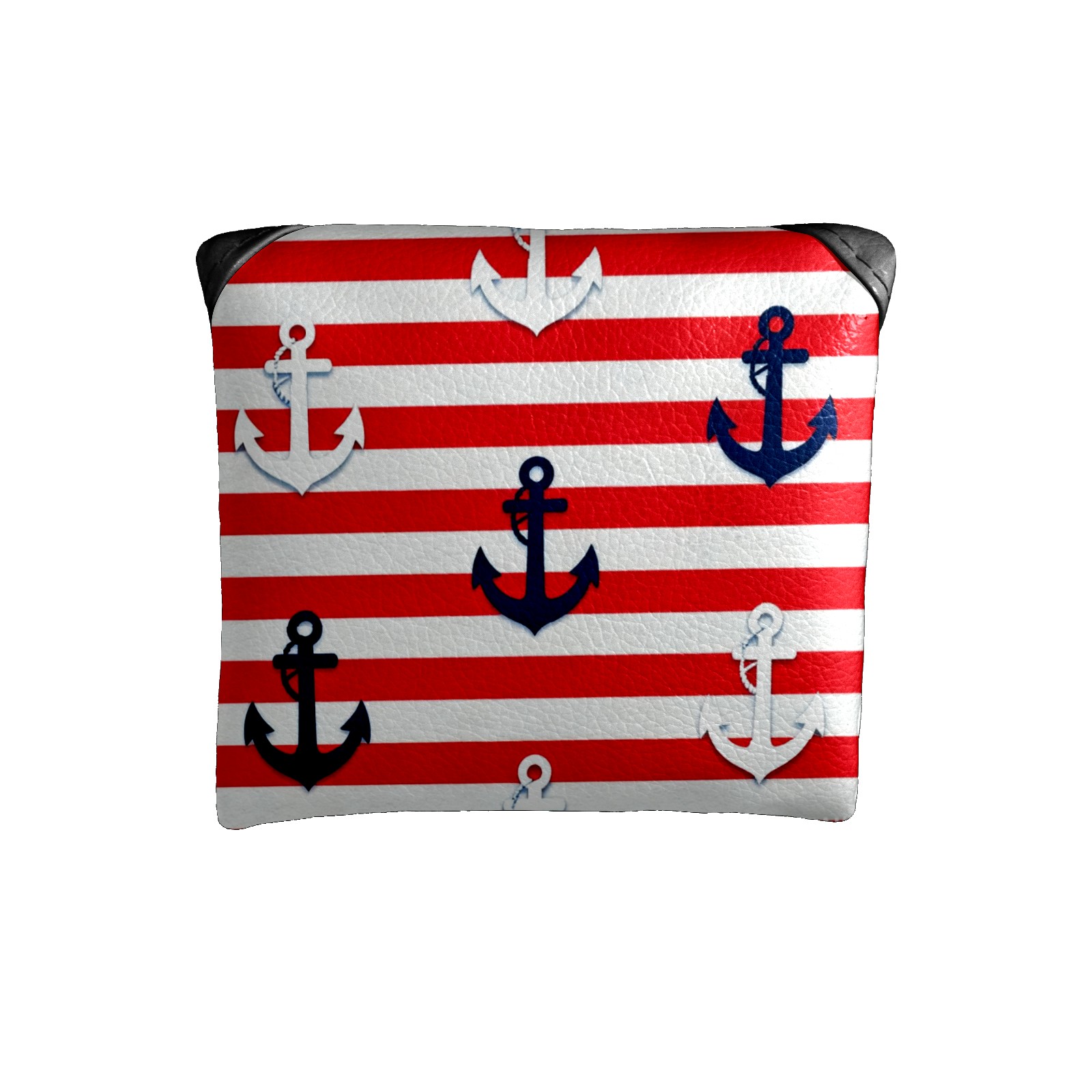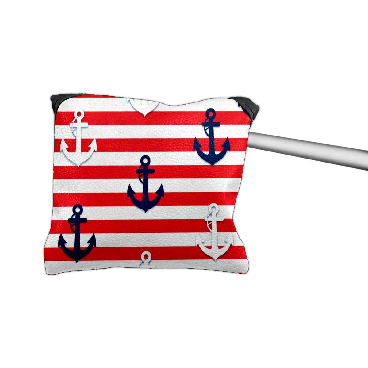 Mallet Putter Cover,Golf Club Head Cover, PU Leather Iron Head Covers Set Gift for Travel Cases Protector Fit Most, Easily Slips on and Secures Red And White Striped Anchor Pattern