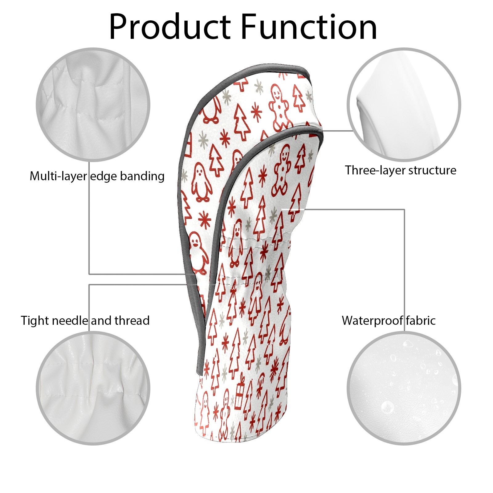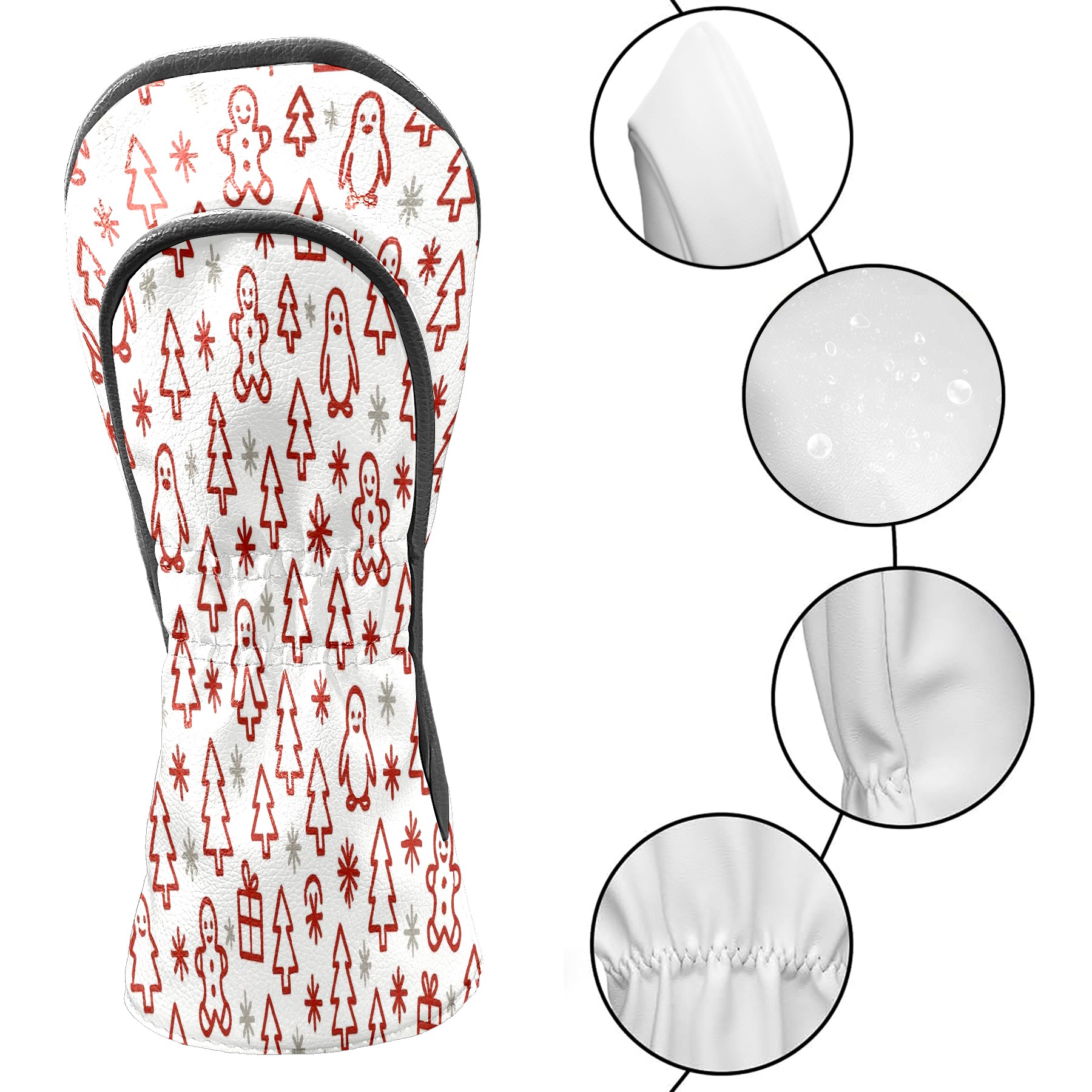 Golf Club Head Covers Gingerbread SantaHat BrownRed Floral Design for Driver & Hybrid, Waterproof PU Leather with Plush Velvet Lining, Scratch Protection & Secure Fit, Ideal Golf Gift for Men Women