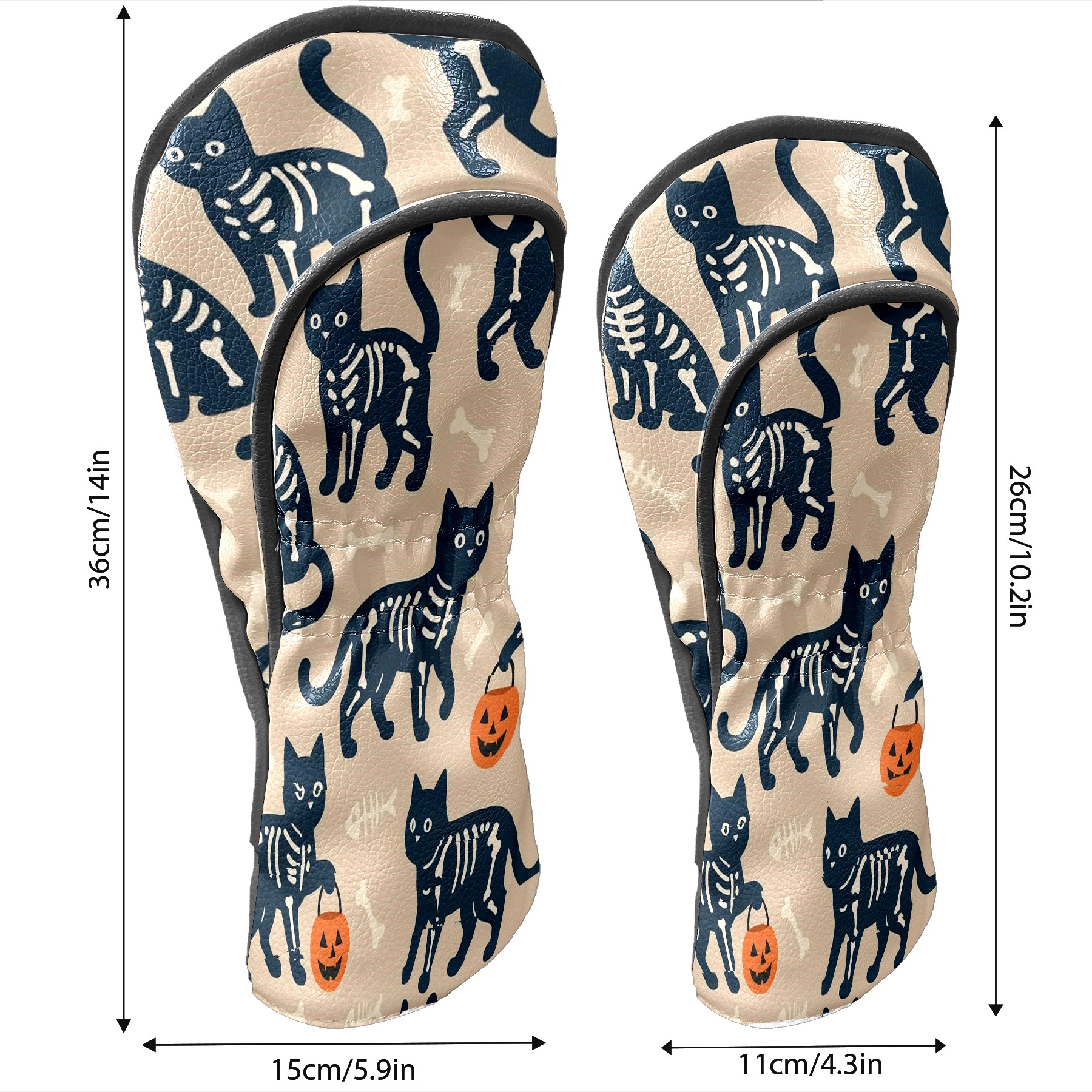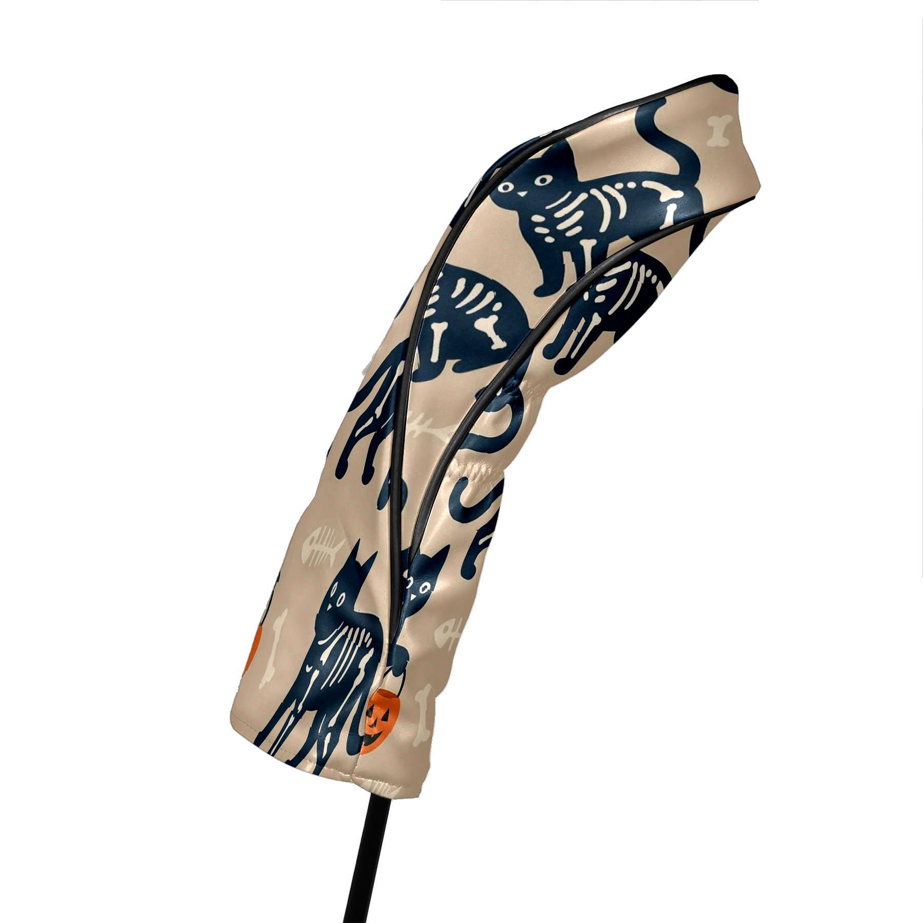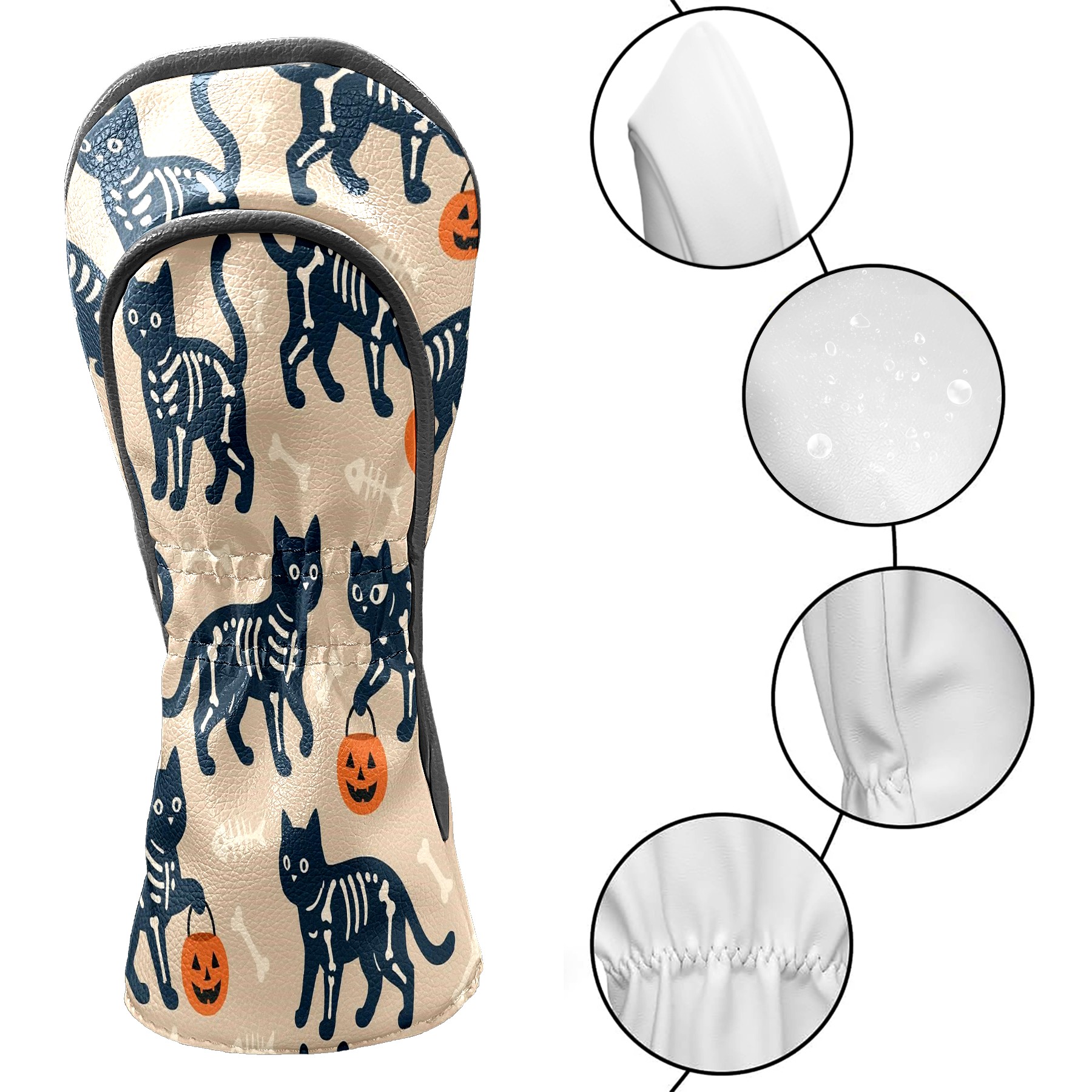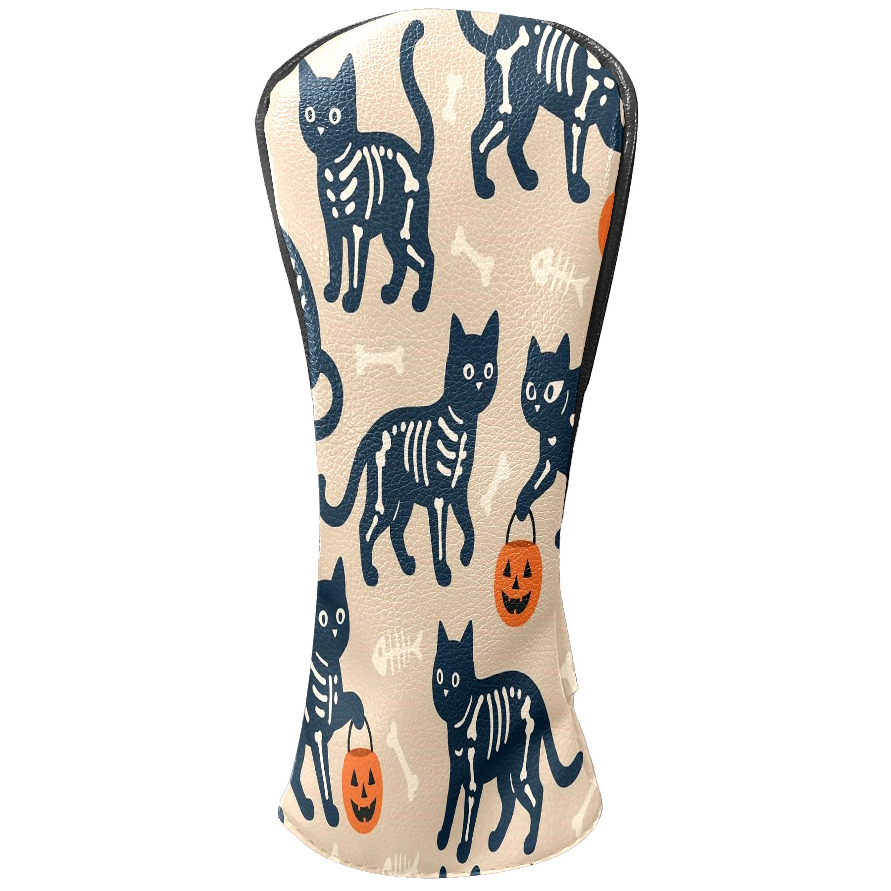 Golf Club Head Covers Halloween SkeletonCat BrownBlack Floral Design for Driver & Hybrid, Waterproof PU Leather with Plush Velvet Lining, Scratch Protection & Secure Fit, Ideal Golf Gift for Men Women