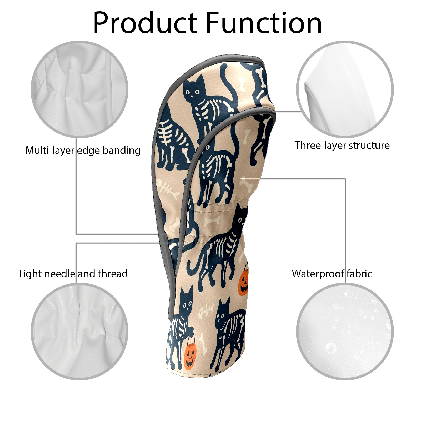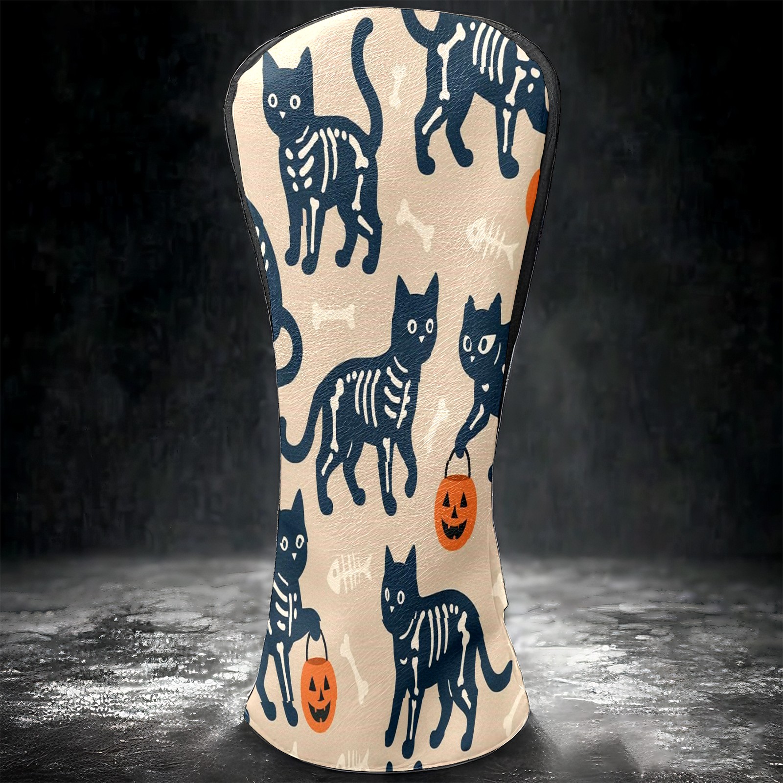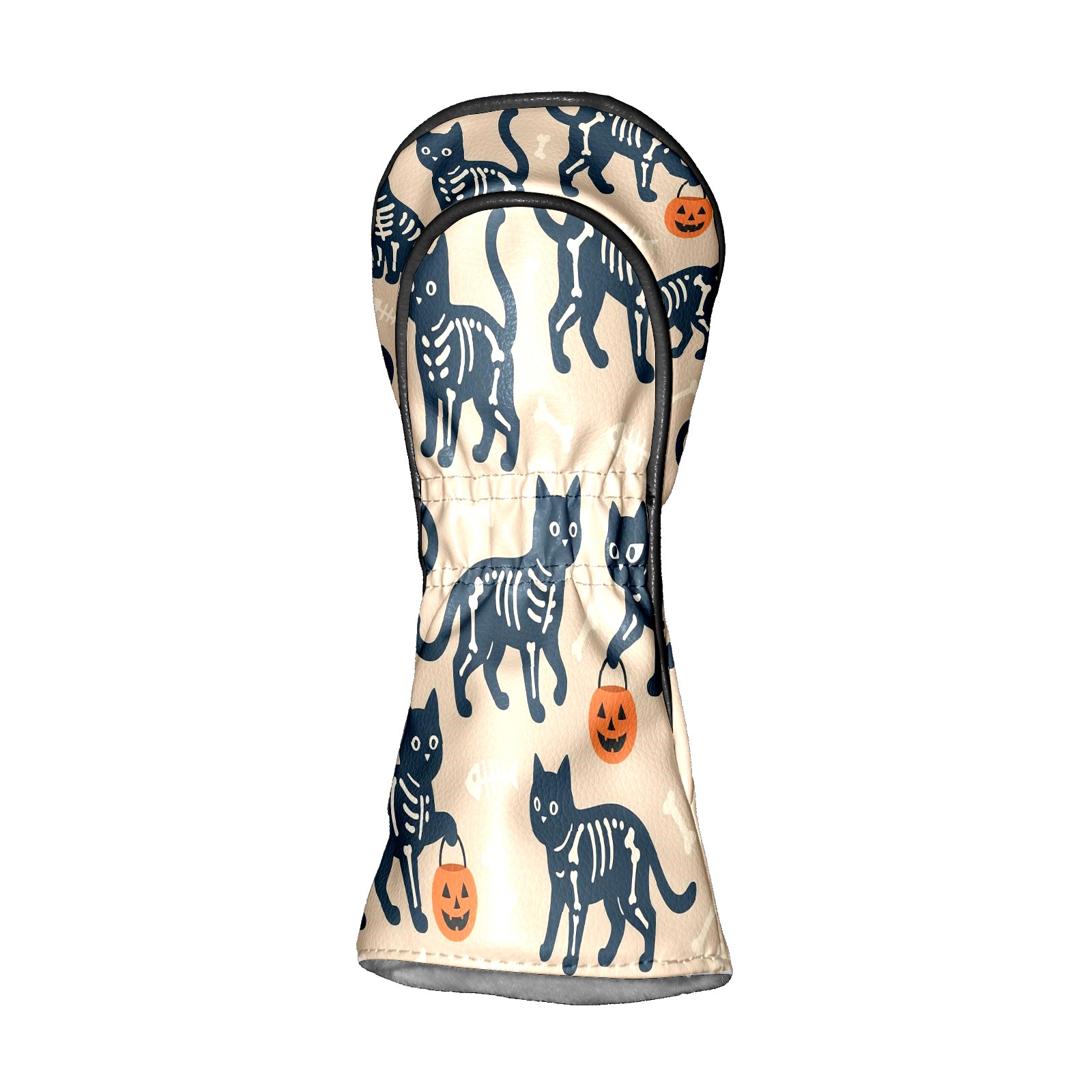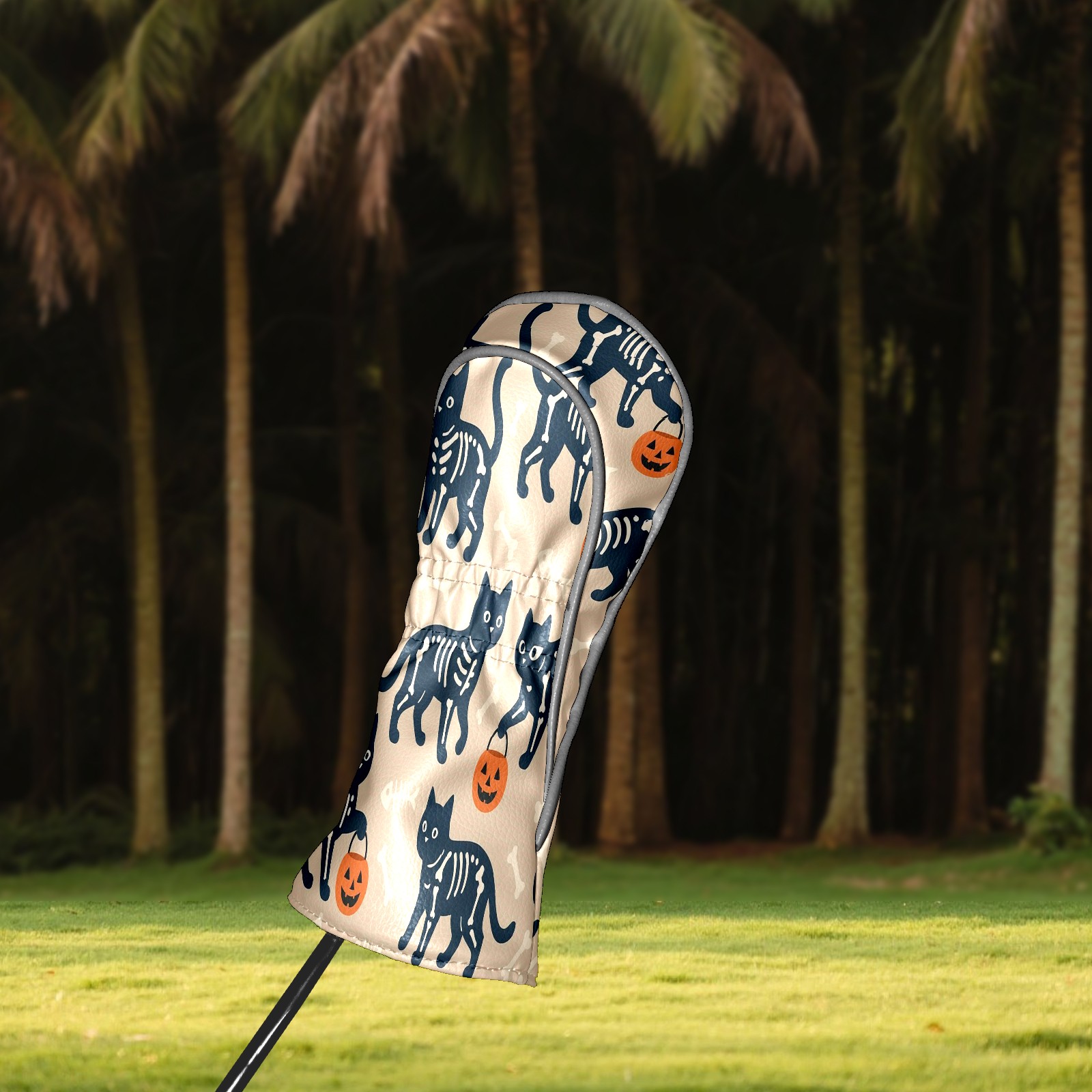 Golf Club Head Covers Halloween SkeletonCat BrownBlack Floral Design for Driver & Hybrid, Waterproof PU Leather with Plush Velvet Lining, Scratch Protection & Secure Fit, Ideal Golf Gift for Men Women