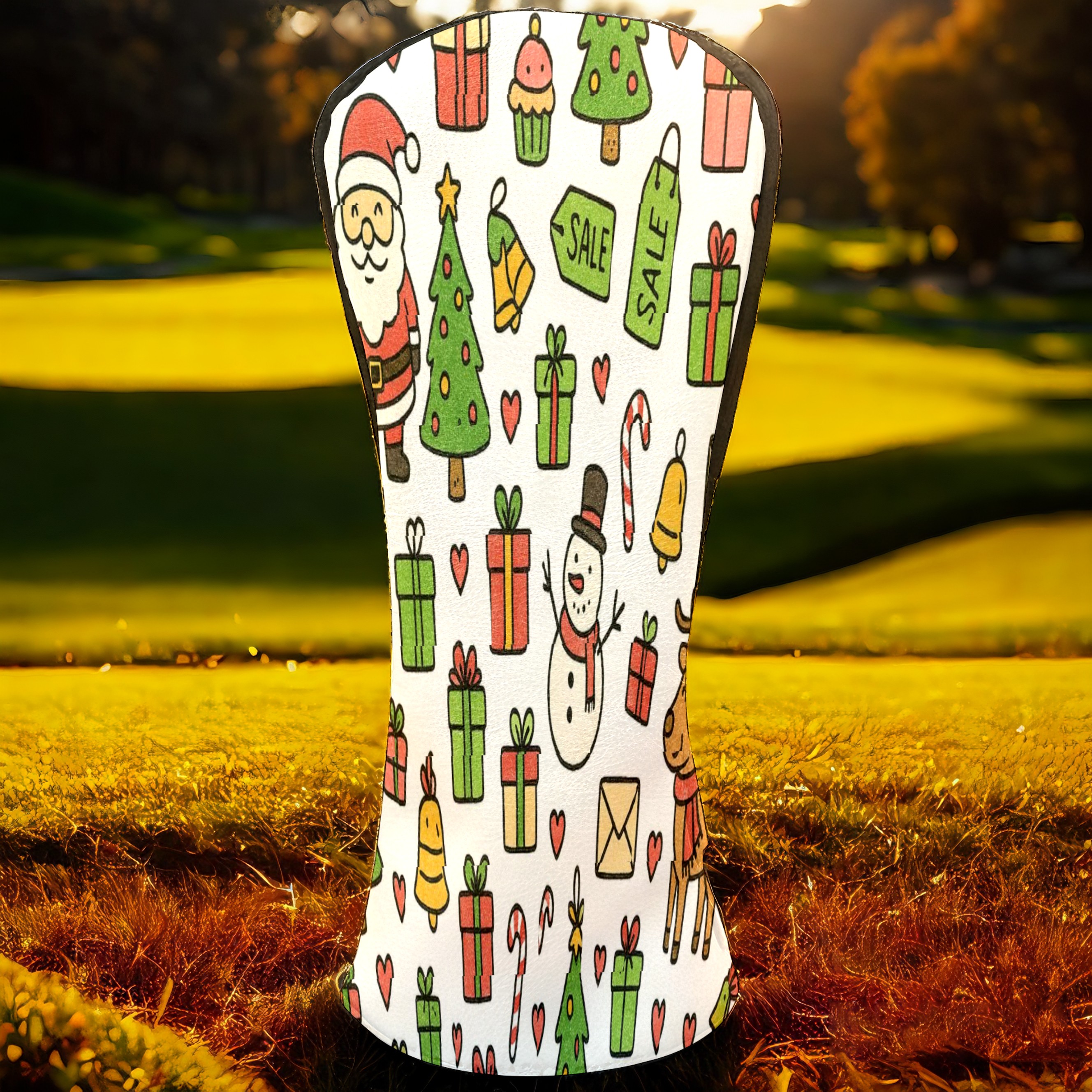 Golf Club Head Covers Xmas Decor RedGreen Floral Design for Driver & Hybrid, Waterproof PU Leather with Plush Velvet Lining, Scratch Protection & Secure Fit, Ideal Golf Gift for Men Women