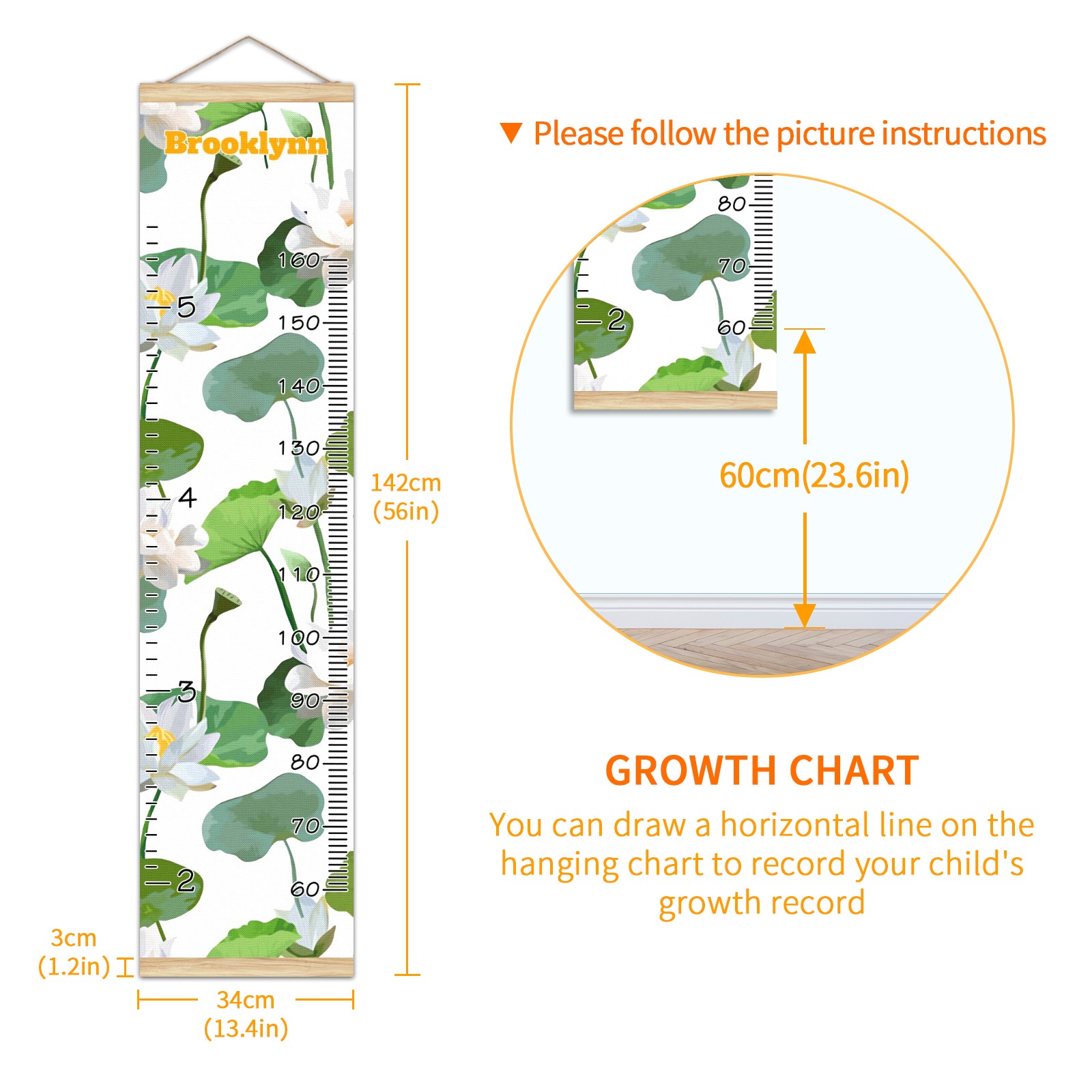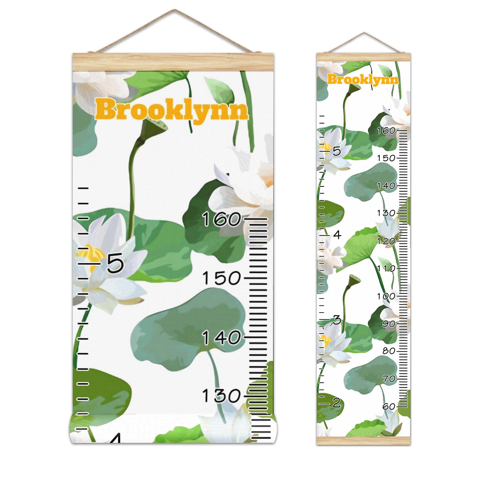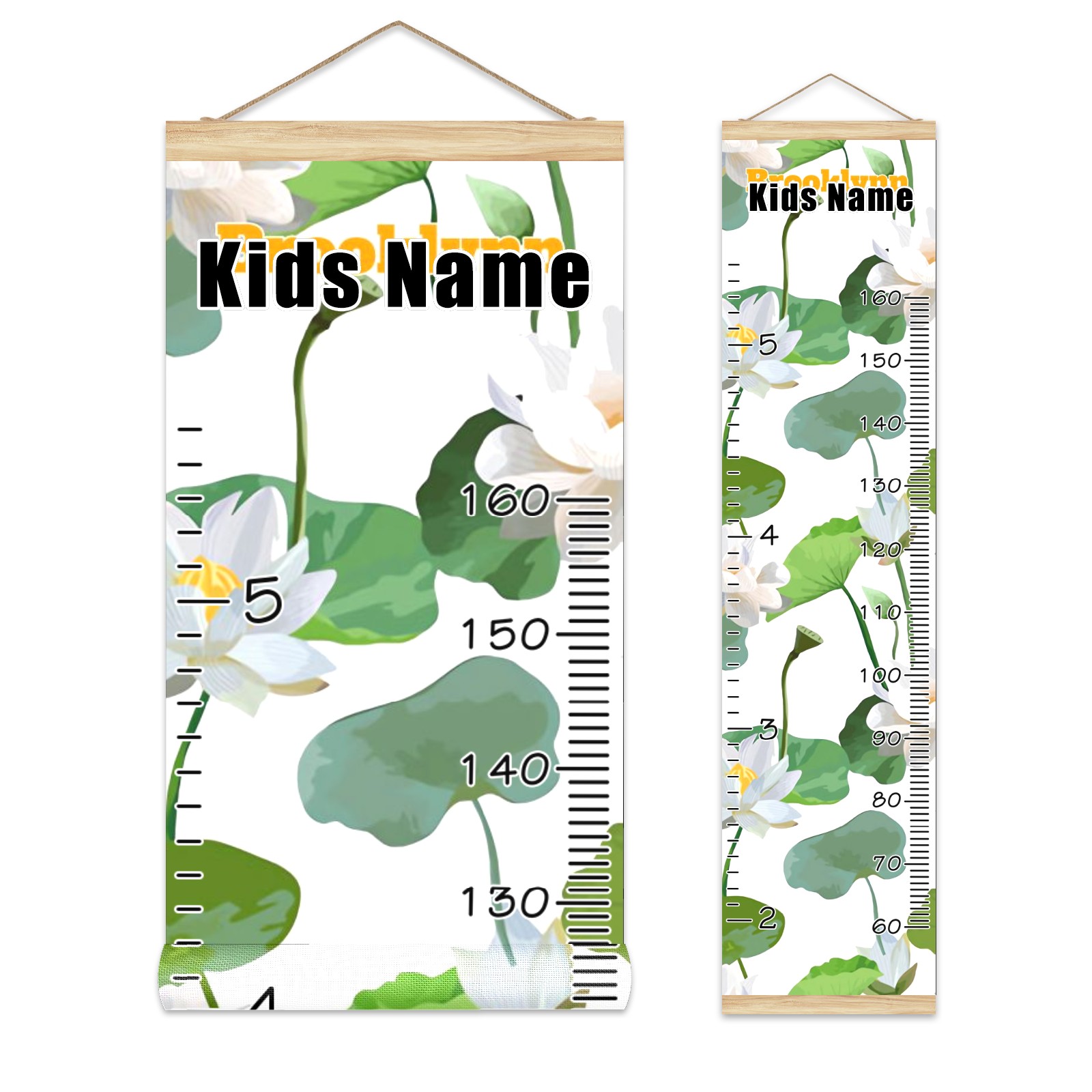 Personalized Kids Name Growth Chart Ruler for Wall Wood Frame Canvas Height Measure Chart 13.4x56 in Hanging Growth Chart White Lotus10.30 Boys Girls Room Decor