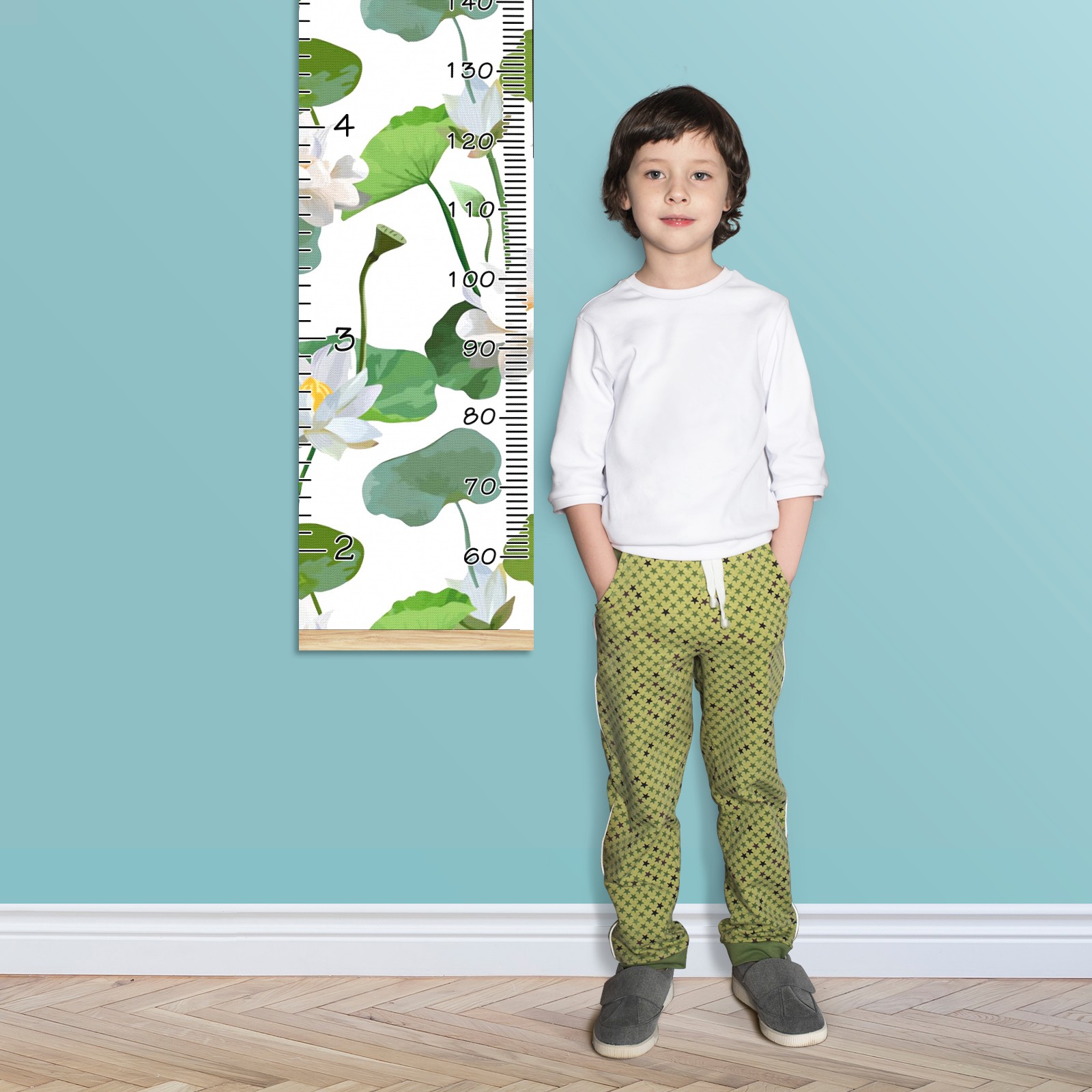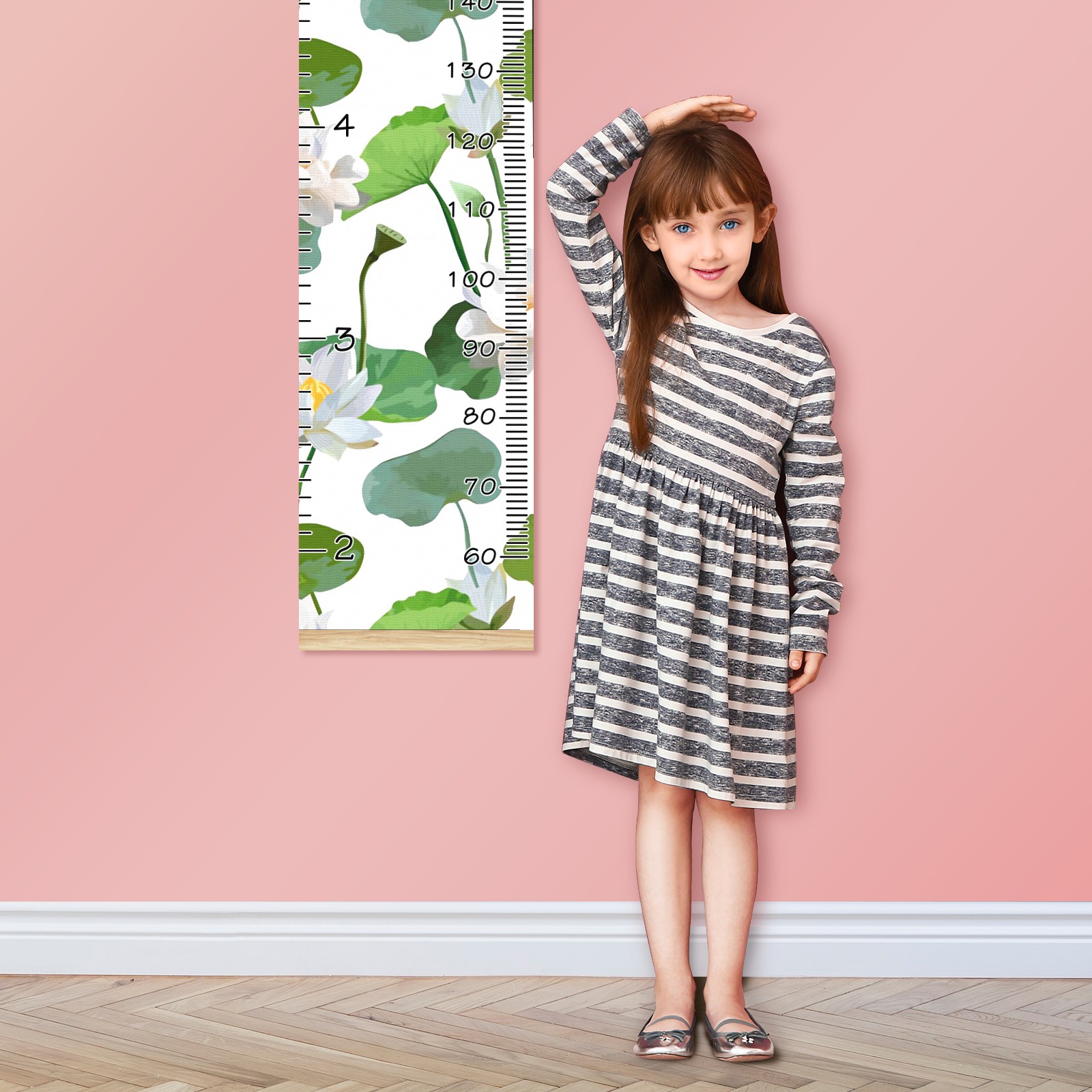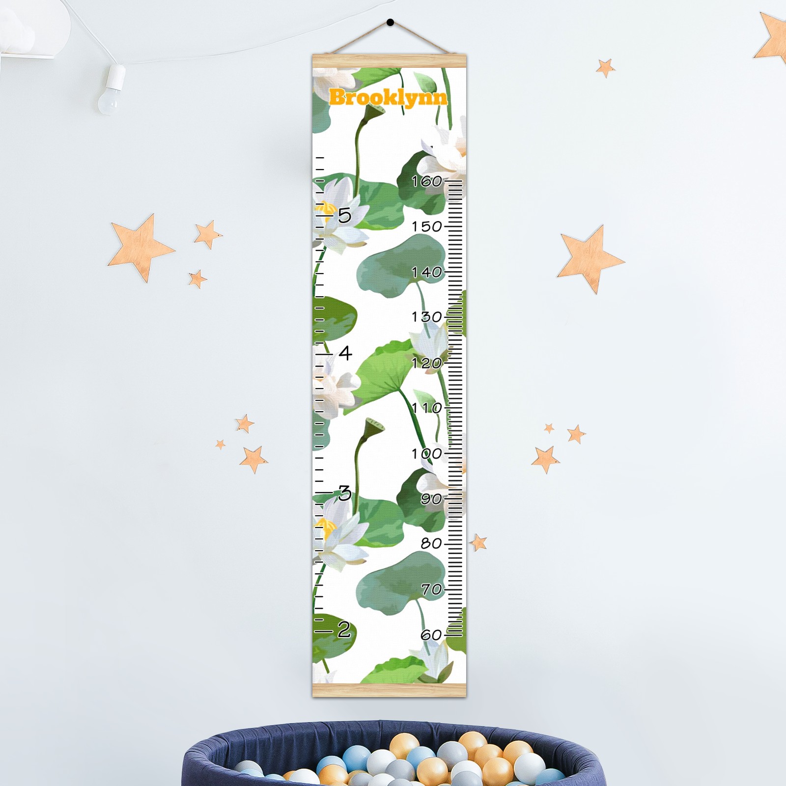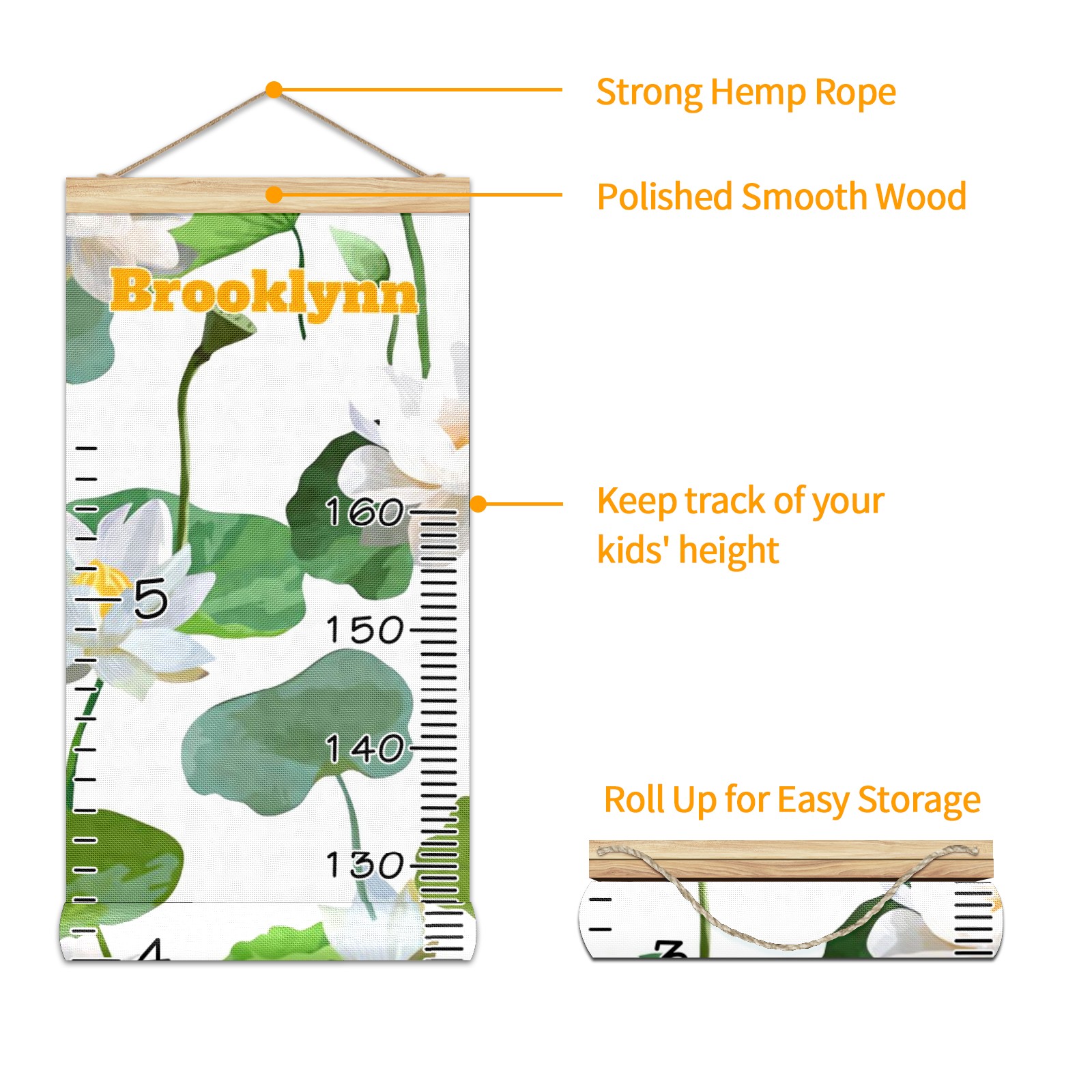 Personalized Kids Name Growth Chart Ruler for Wall Wood Frame Canvas Height Measure Chart 13.4x56 in Hanging Growth Chart White Lotus10.30 Boys Girls Room Decor
