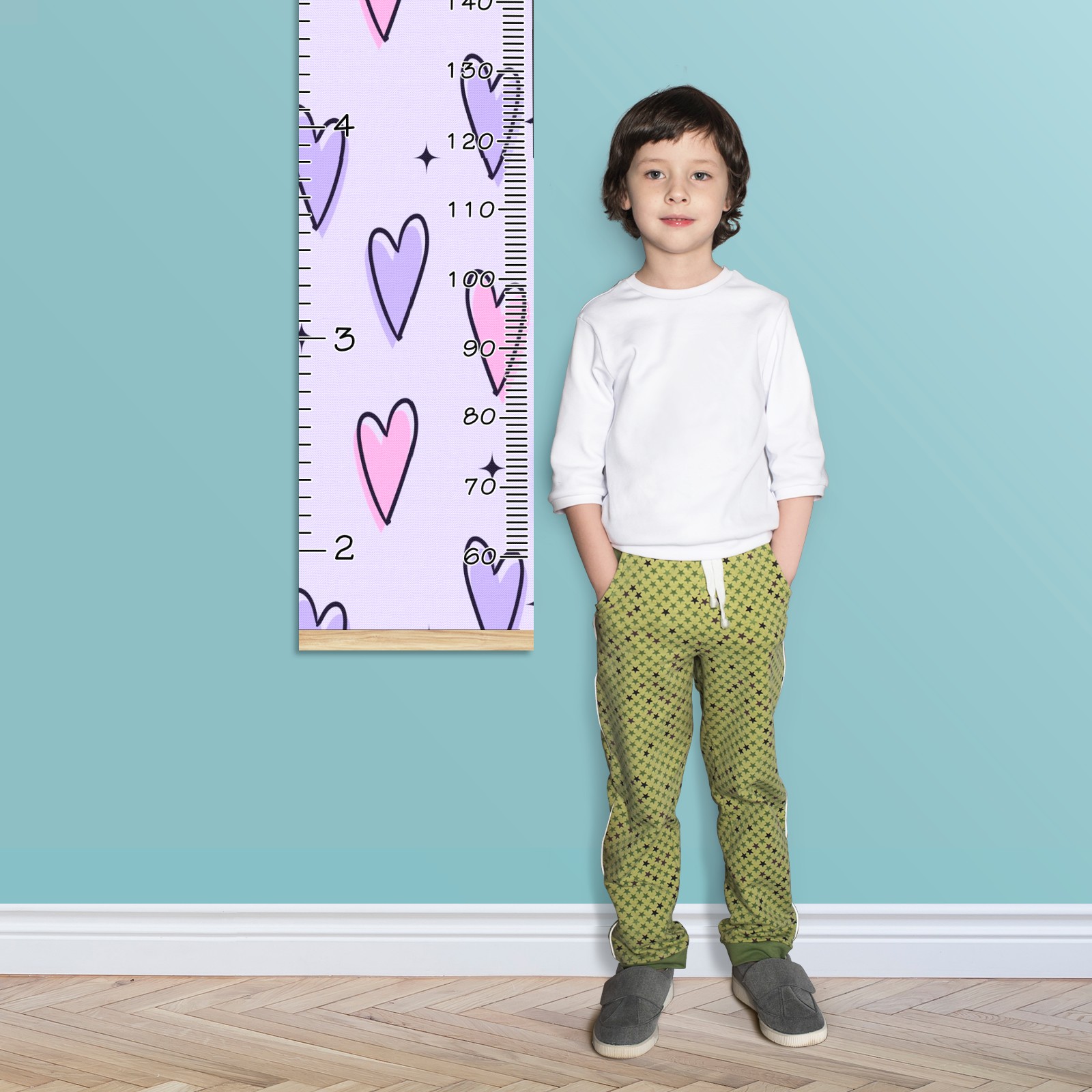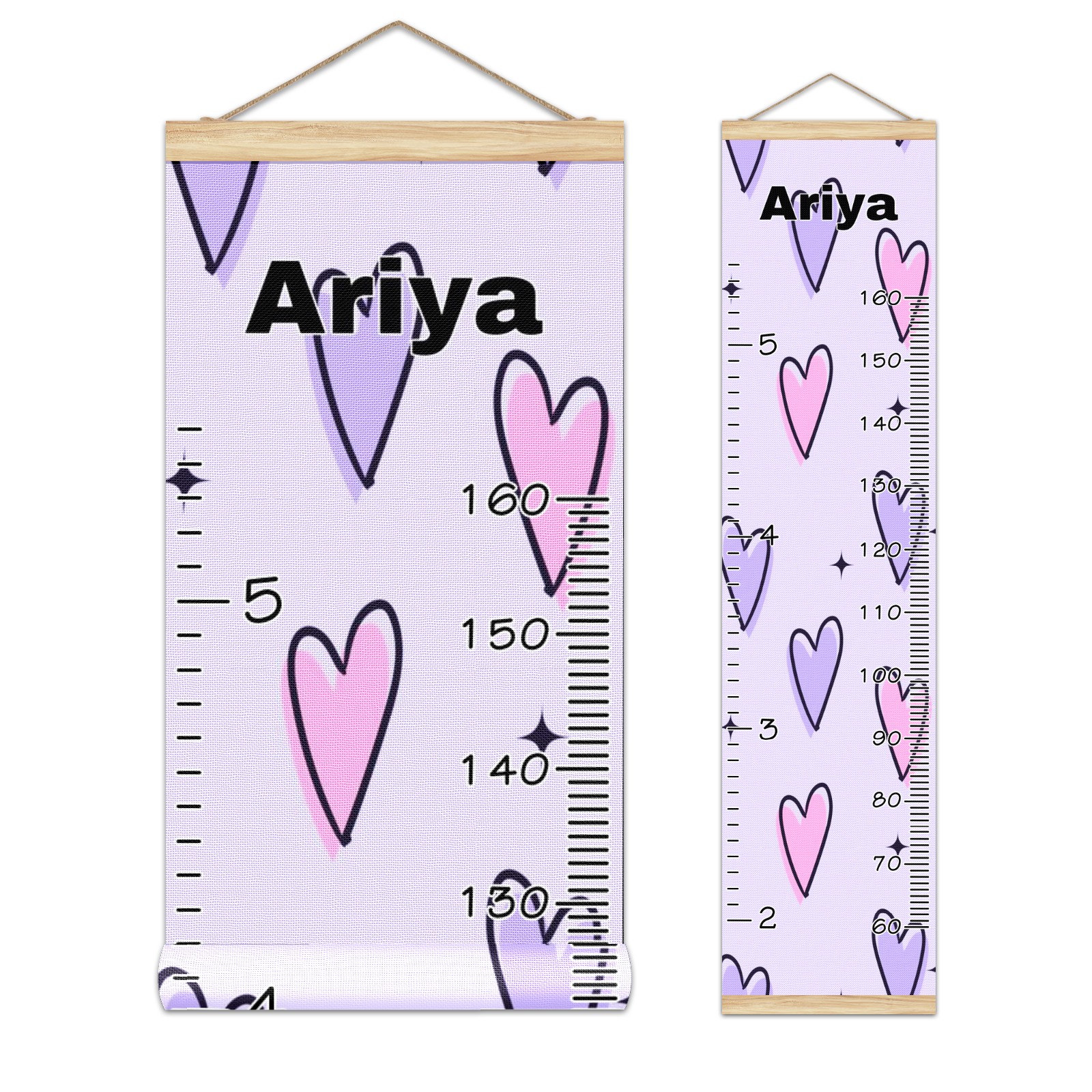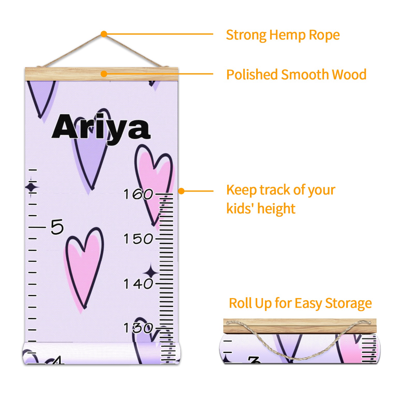 Personalized Kids Name Growth Chart Ruler for Wall Wood Frame Canvas Height Measure Chart 13.4x56 in Hanging Growth Chart Pink Purple Love Heart10.30 Boys Girls Room Decor