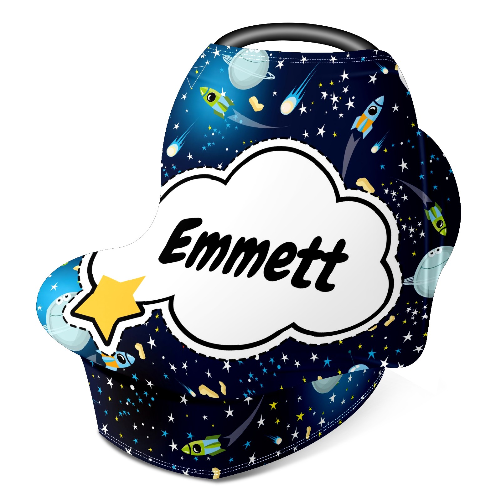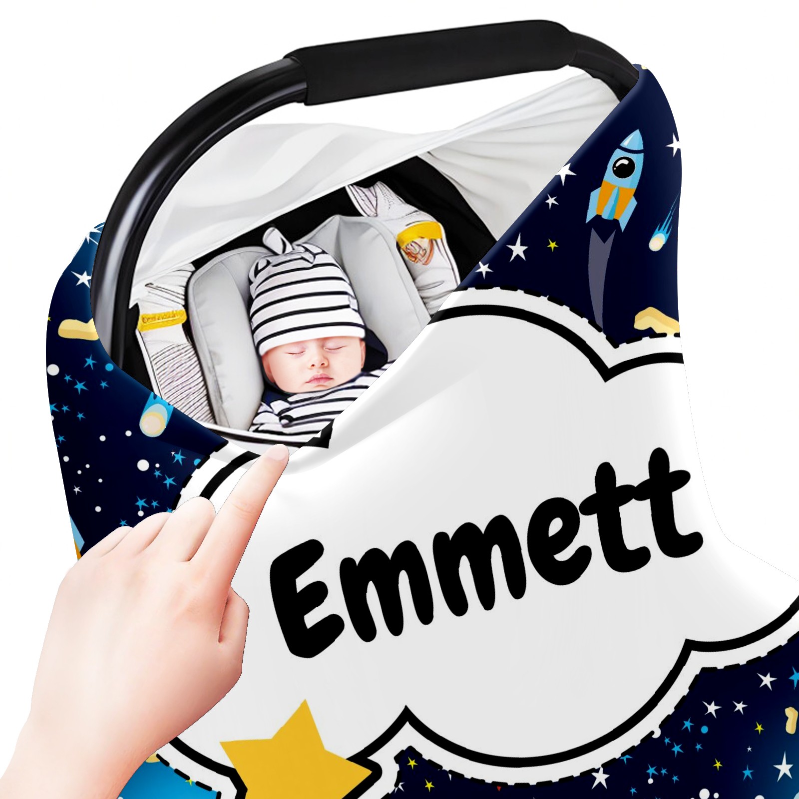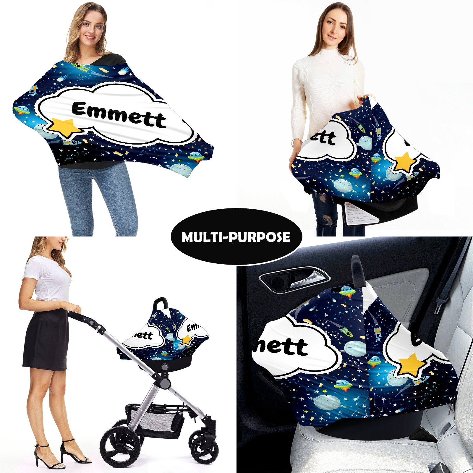 Baby Car Seat Stroller Covers Custom Name Outer Space Planet Rockets10.31 Nursing Cover Breastfeeding Scarf Soft Breathable Stretchy Coverage Carseat Canopy Cover for Boys and Girls Multi Use