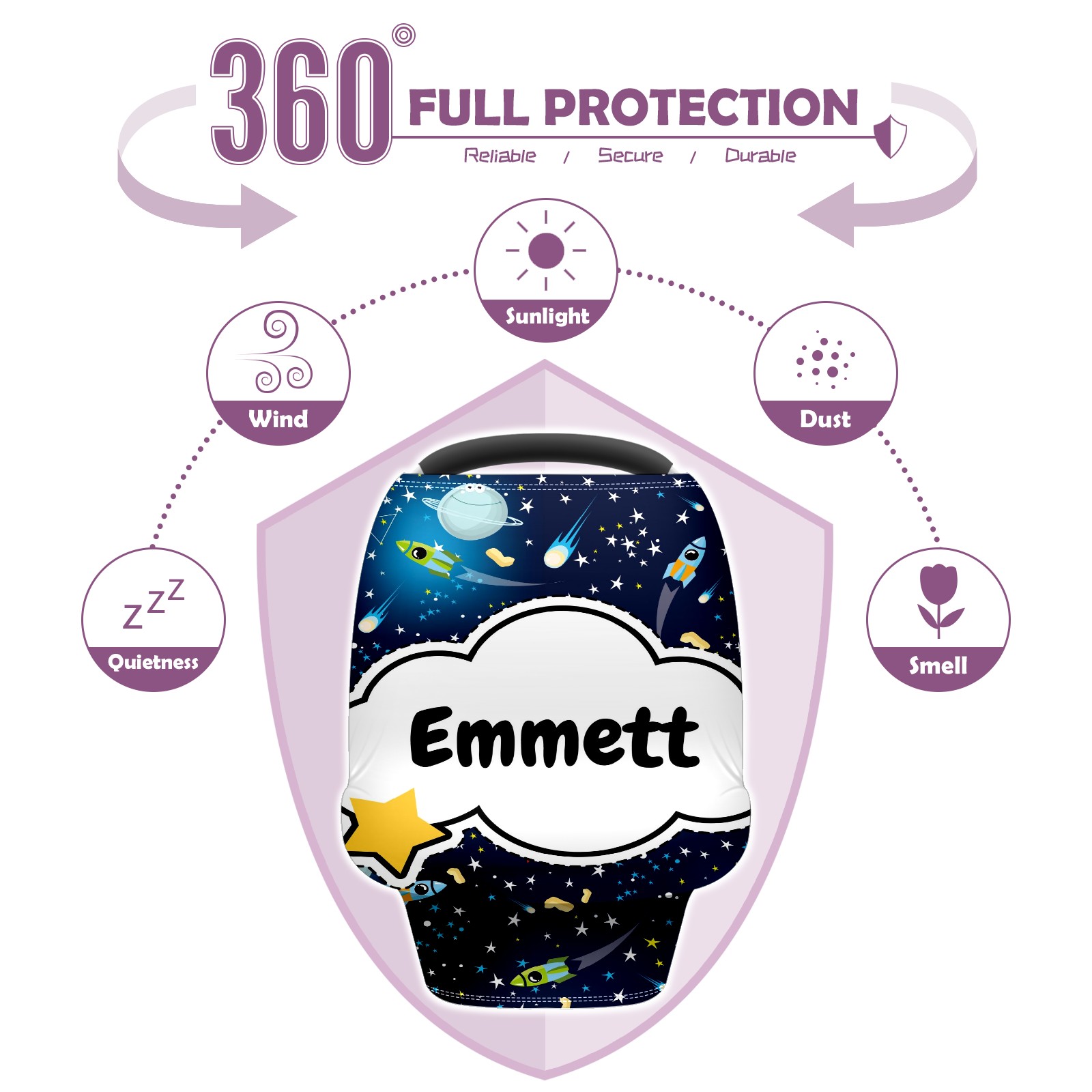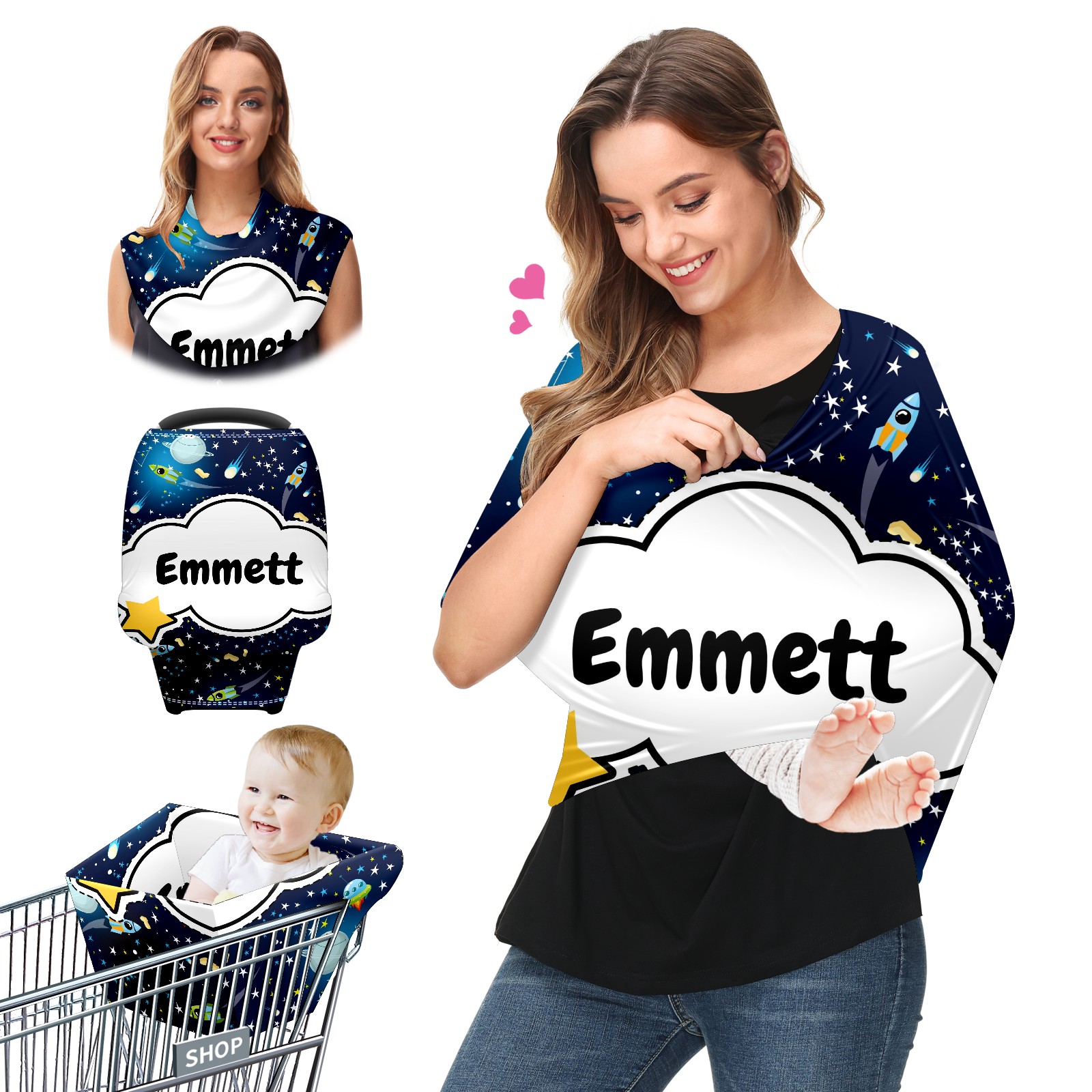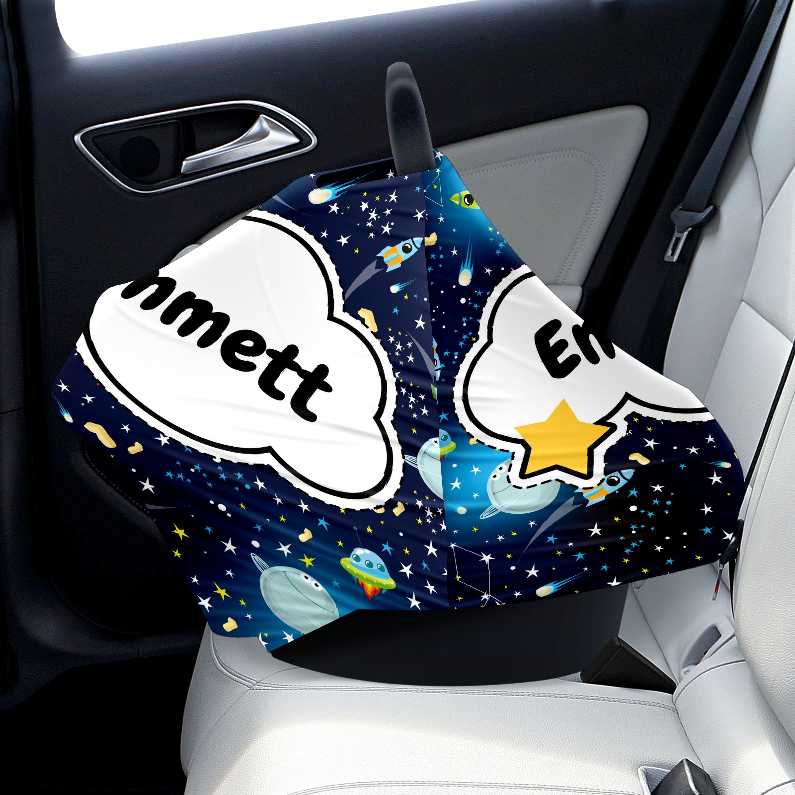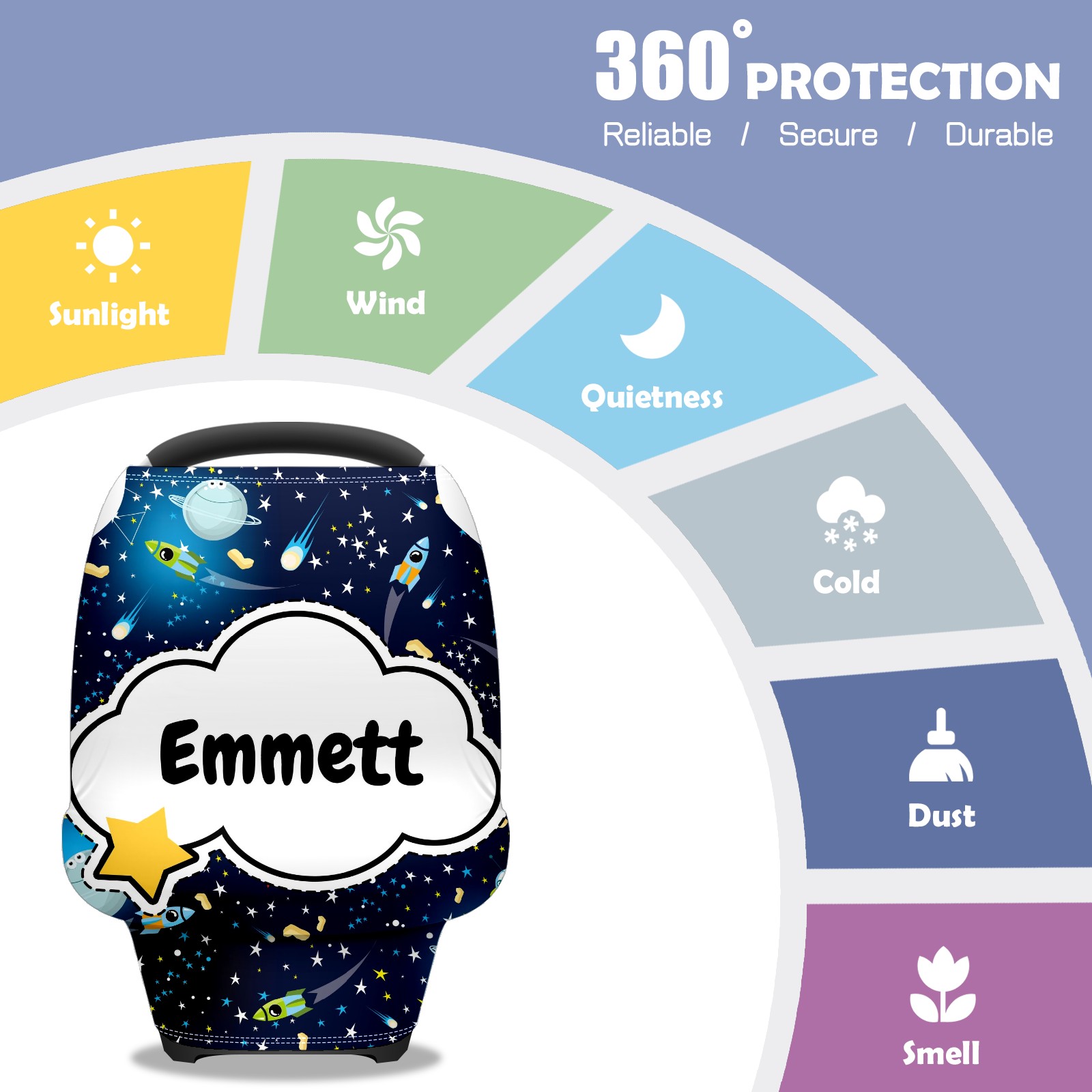Baby Car Seat Stroller Covers Custom Name Outer Space Planet Rockets10.31 Nursing Cover Breastfeeding Scarf Soft Breathable Stretchy Coverage Carseat Canopy Cover for Boys and Girls Multi Use