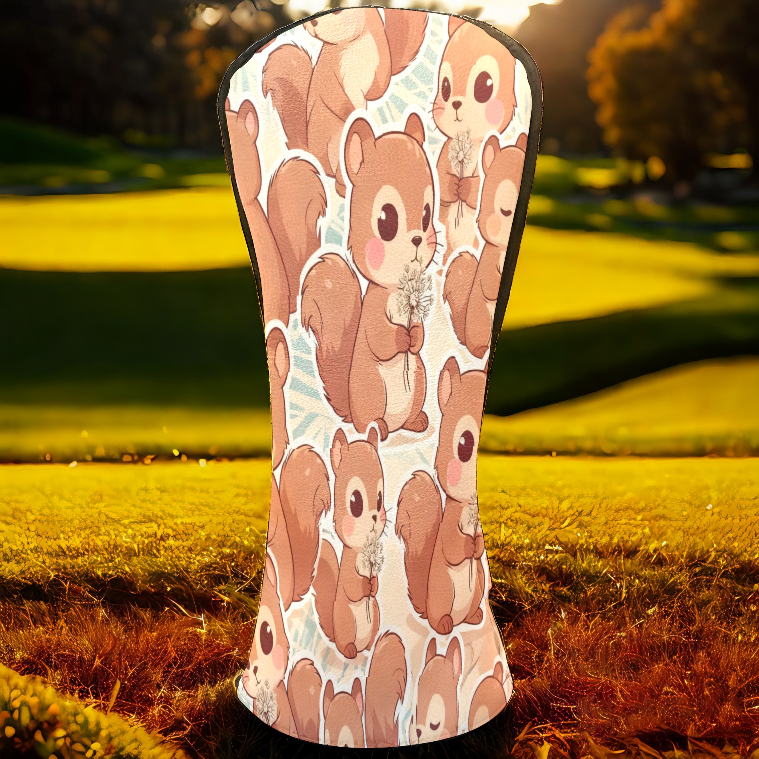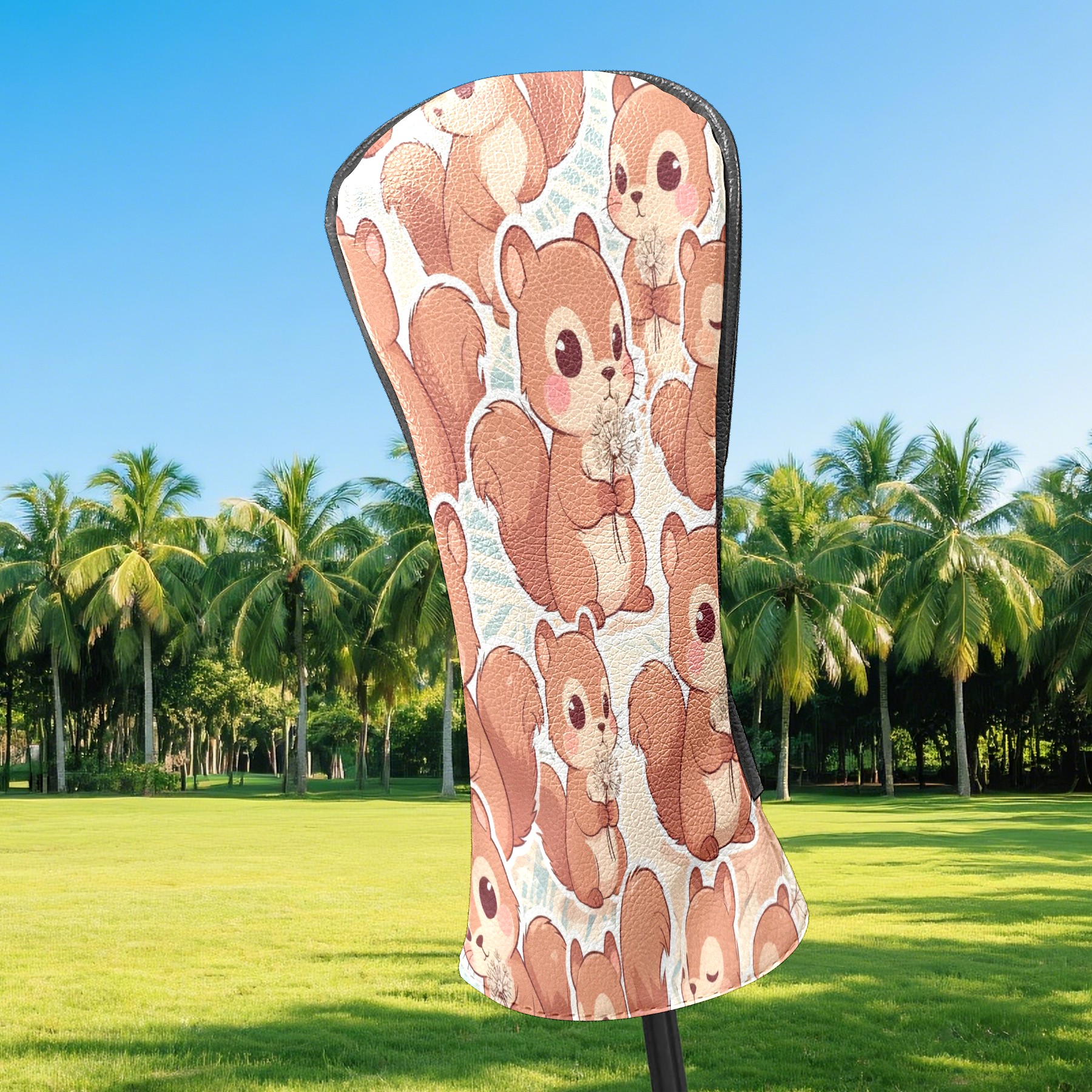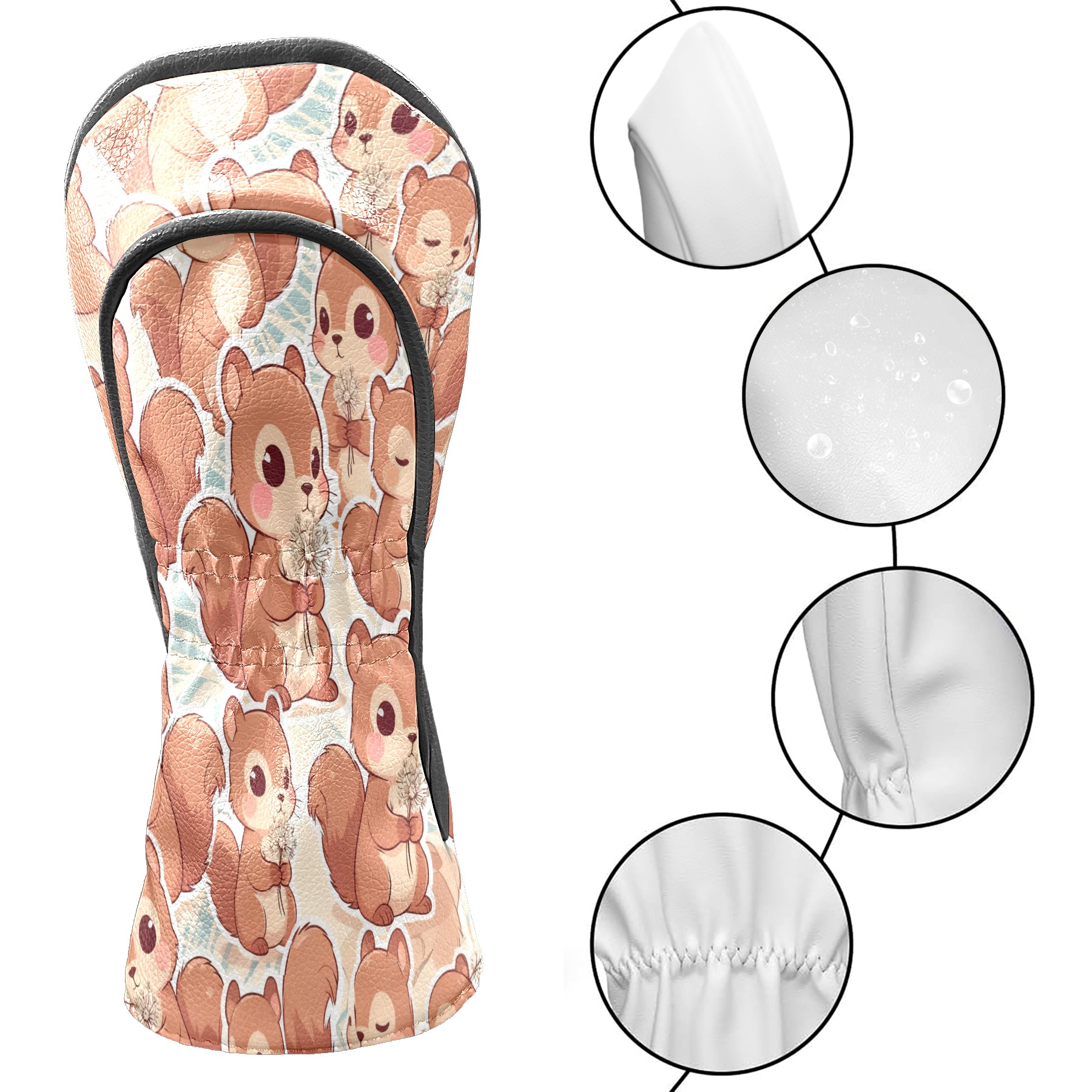 Golf Club Head Covers Beige Squirrels Design for Driver & Hybrid, Waterproof PU Leather with Plush Velvet Lining, Scratch Protection & Secure Fit, Ideal Golf Gift for Men Women