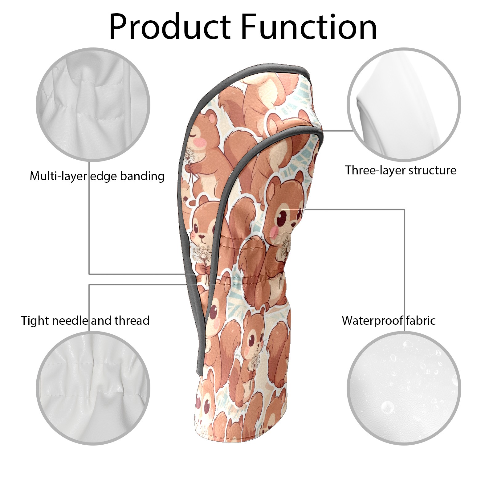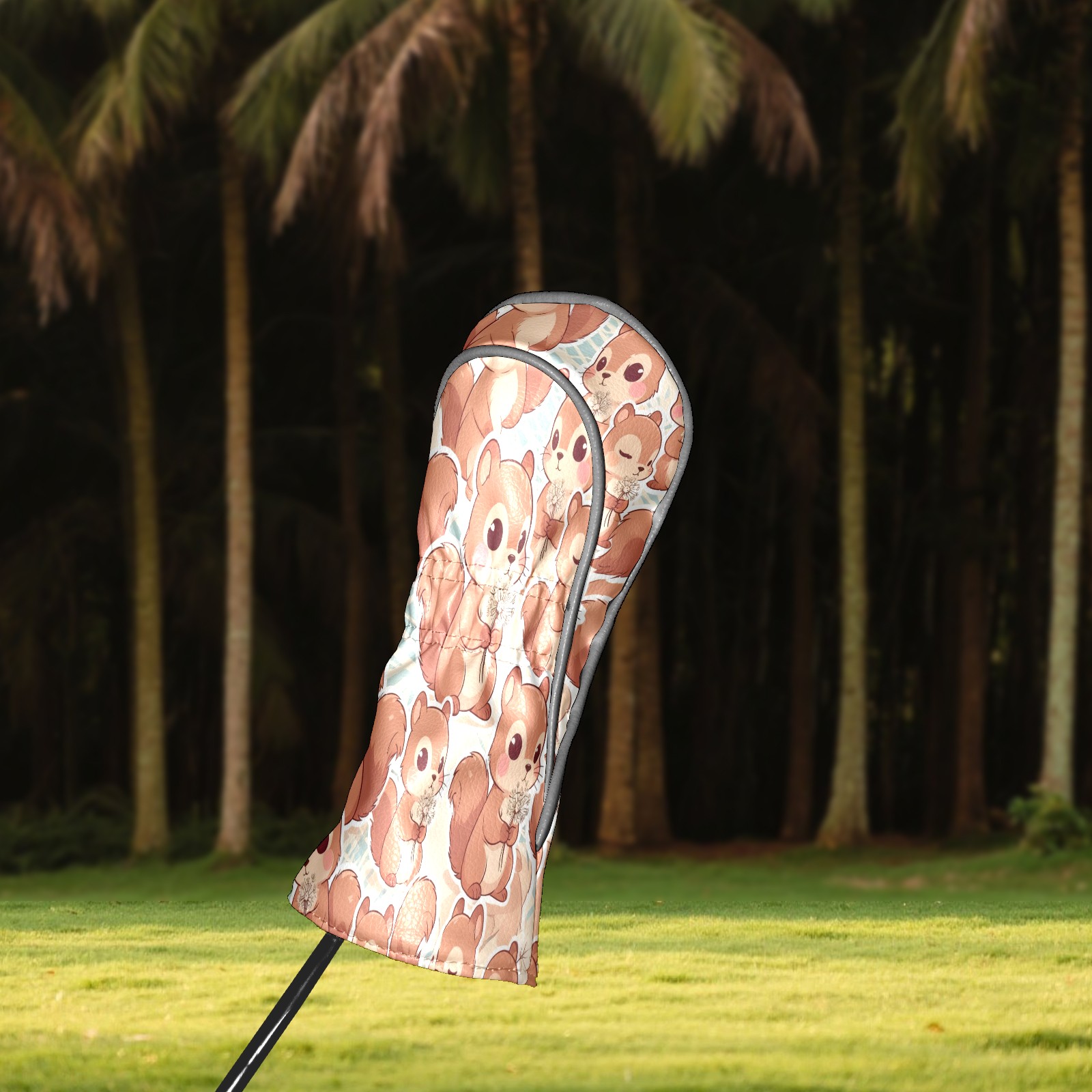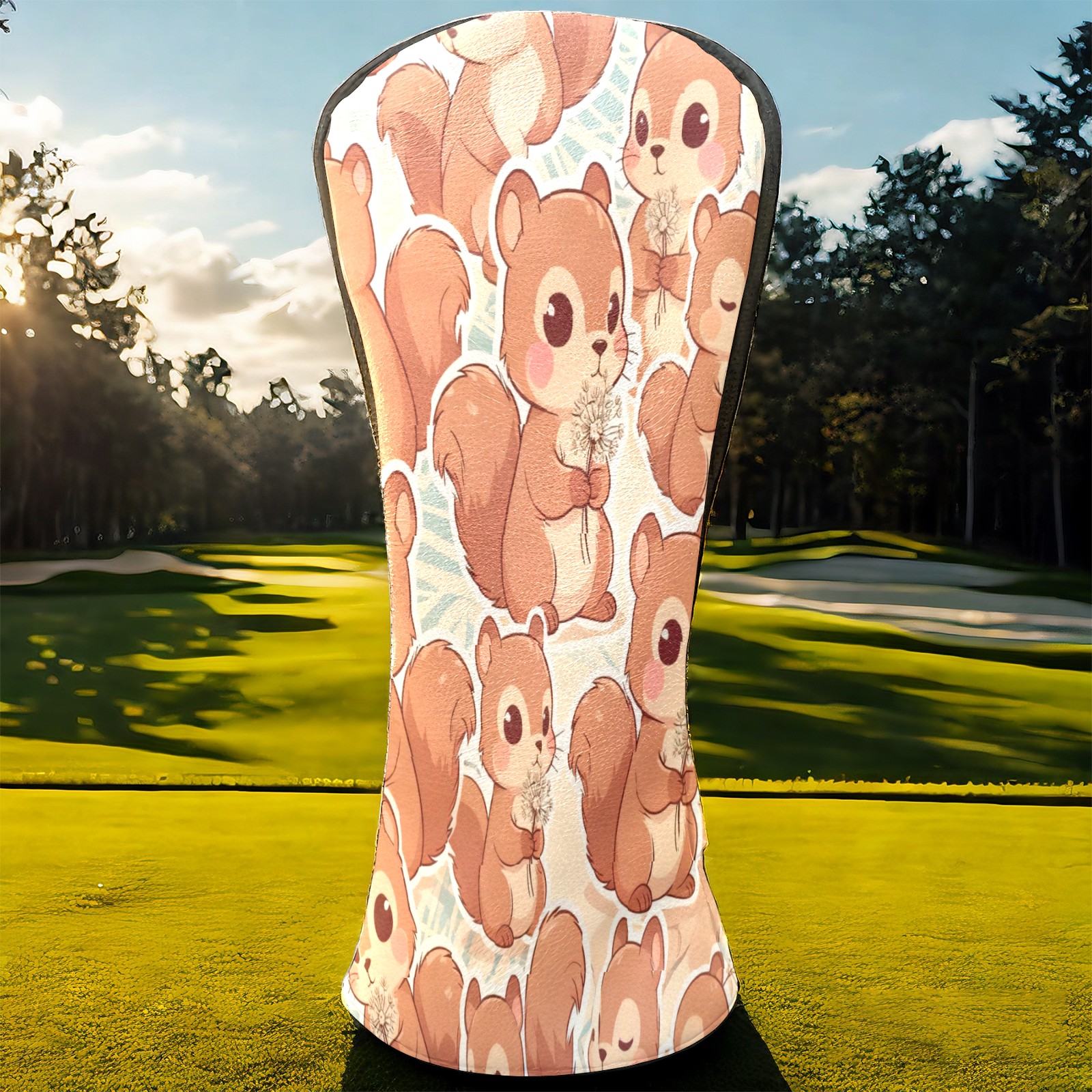 Golf Club Head Covers Beige Squirrels Design for Driver & Hybrid, Waterproof PU Leather with Plush Velvet Lining, Scratch Protection & Secure Fit, Ideal Golf Gift for Men Women