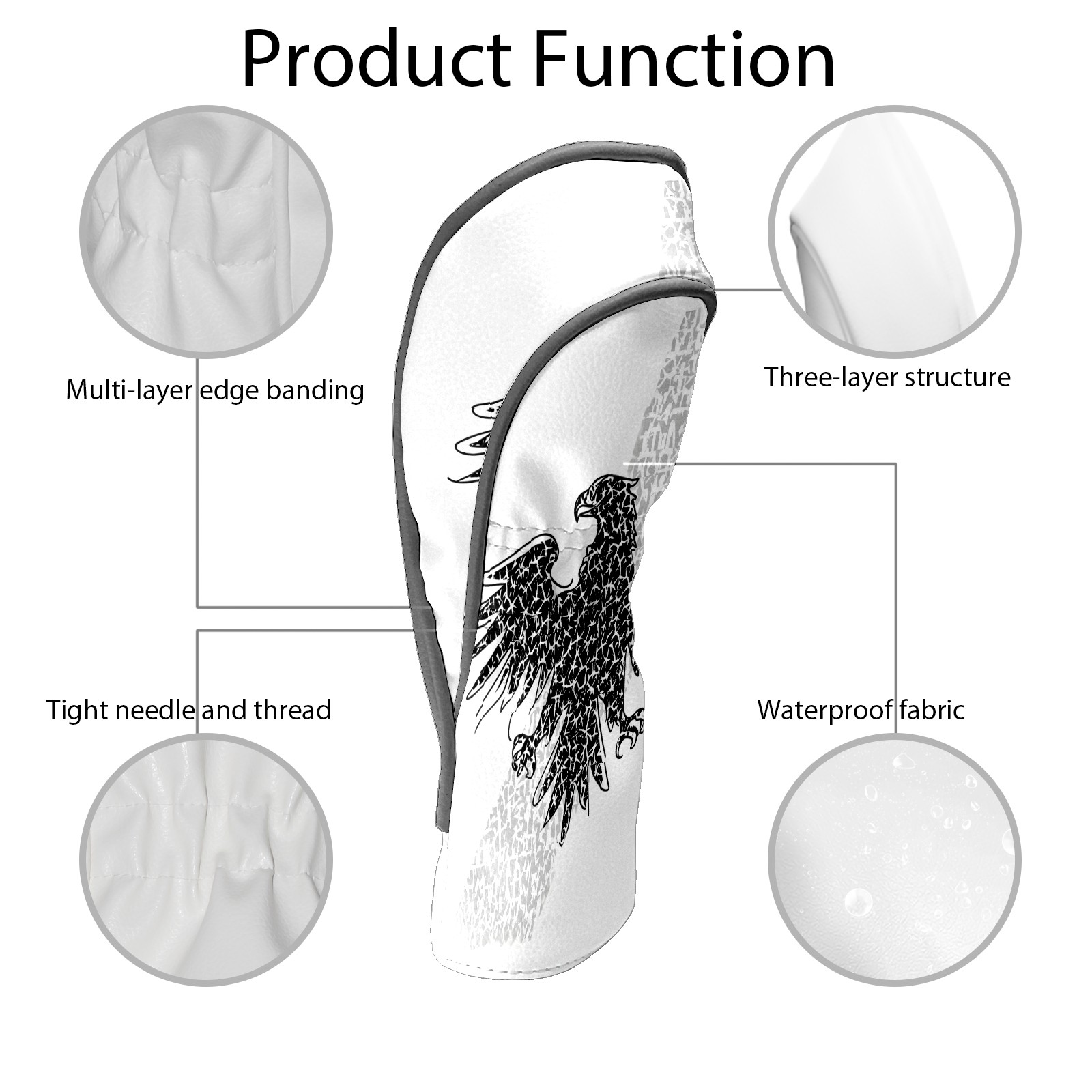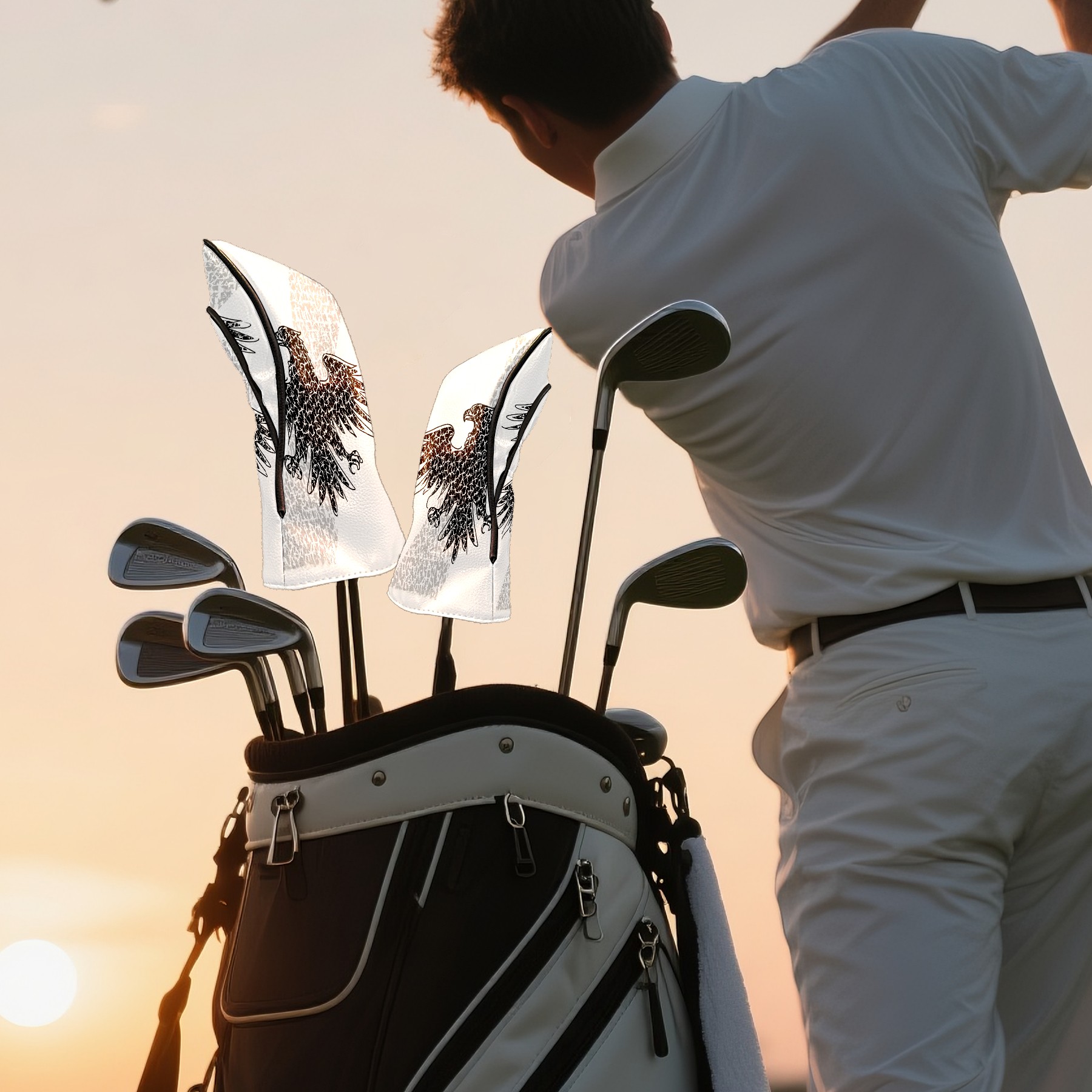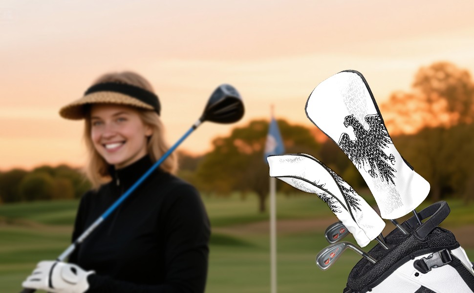 Golf Club Head Covers Black Eagle Design for Driver & Hybrid, Waterproof PU Leather with Plush Velvet Lining, Scratch Protection & Secure Fit, Ideal Golf Gift for Men Women