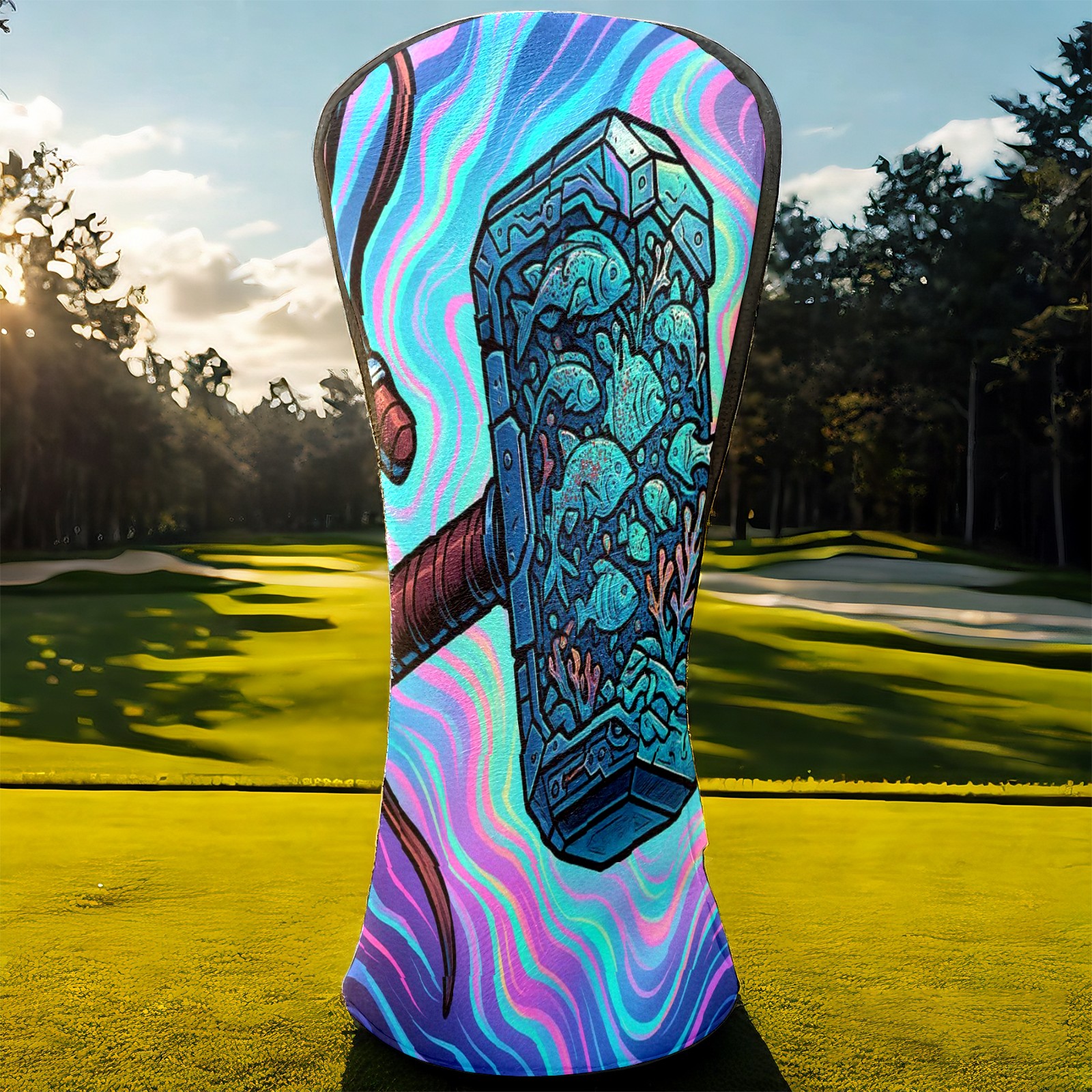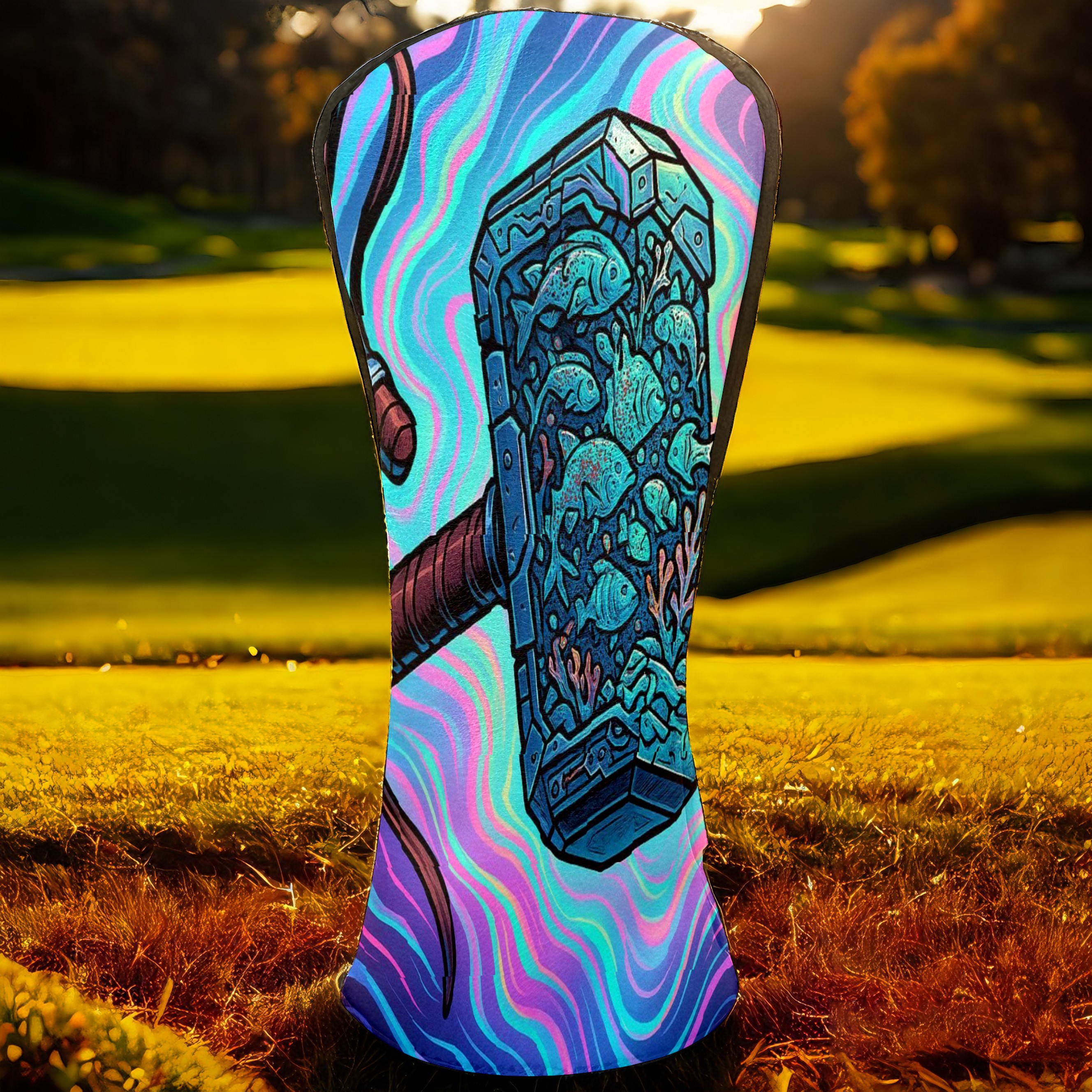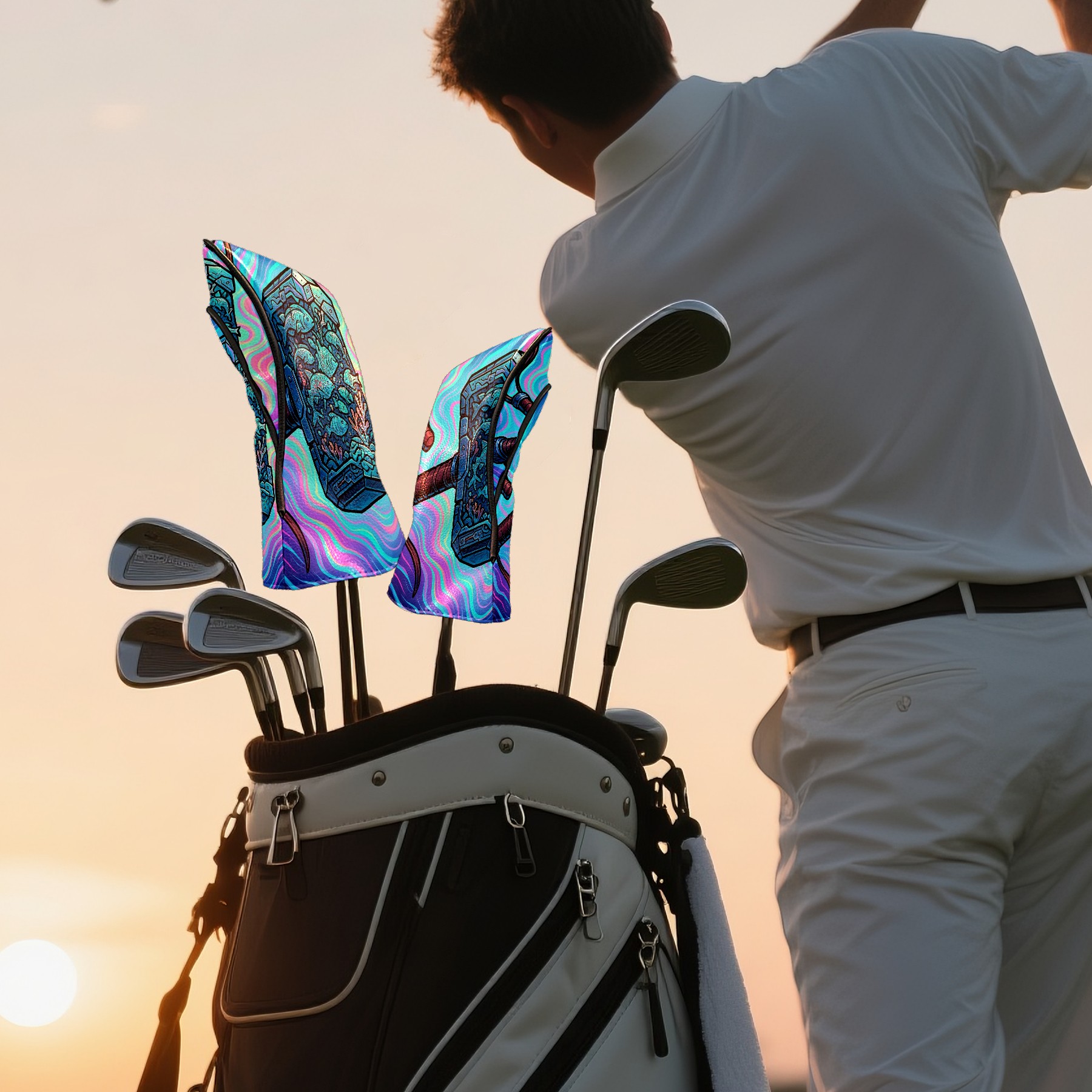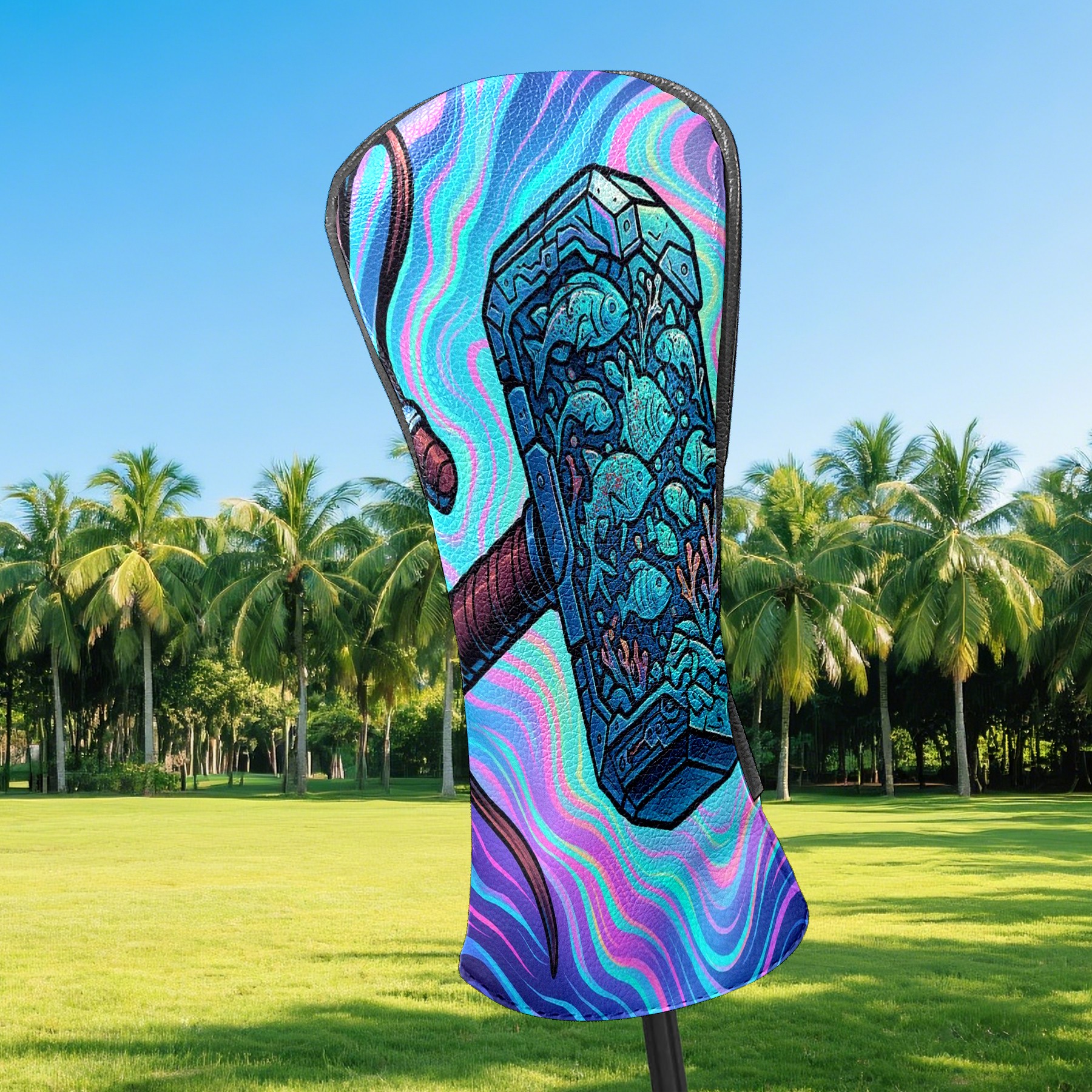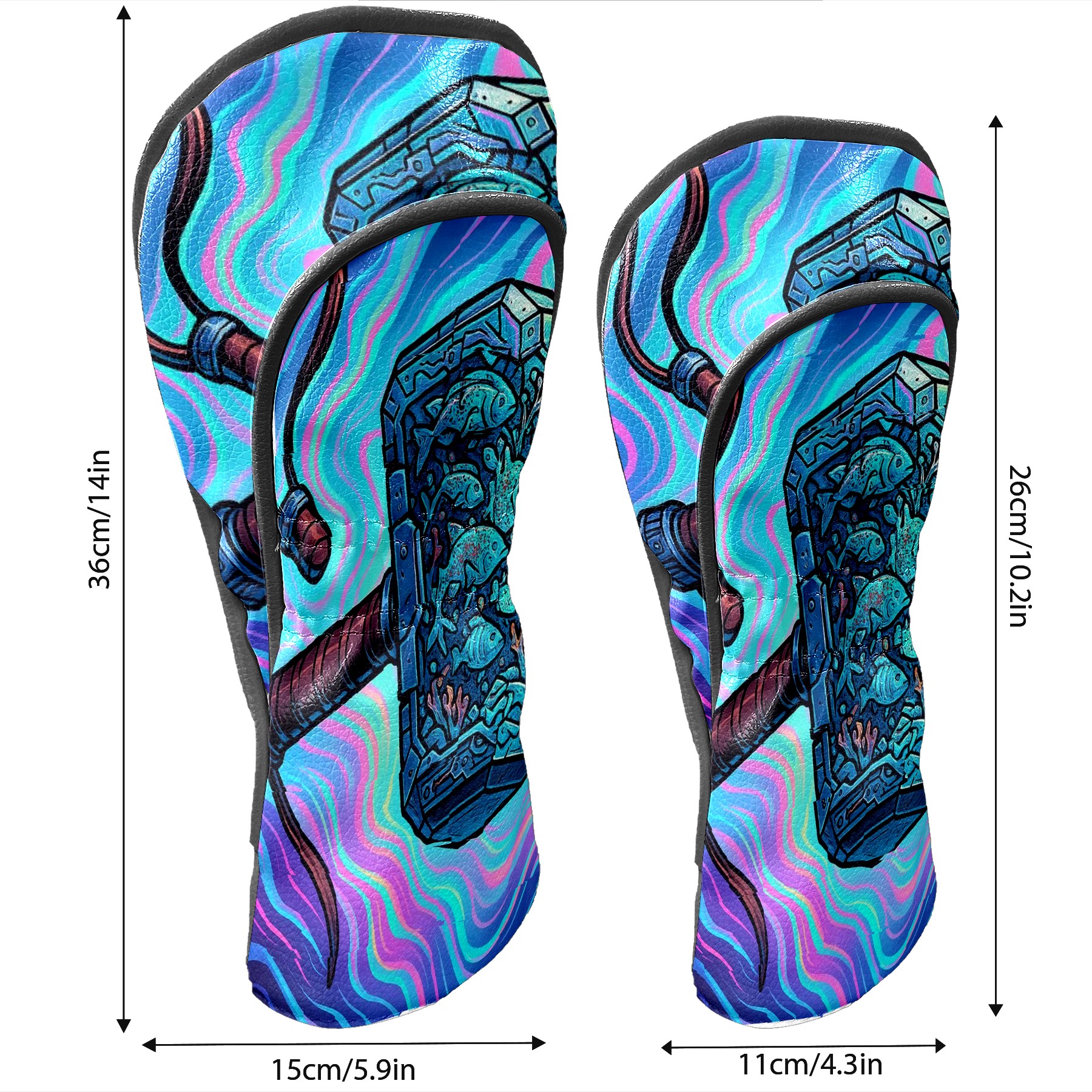 Golf Club Head Covers Blue Hammer Design for Driver & Hybrid, Waterproof PU Leather with Plush Velvet Lining, Scratch Protection & Secure Fit, Ideal Golf Gift for Men Women