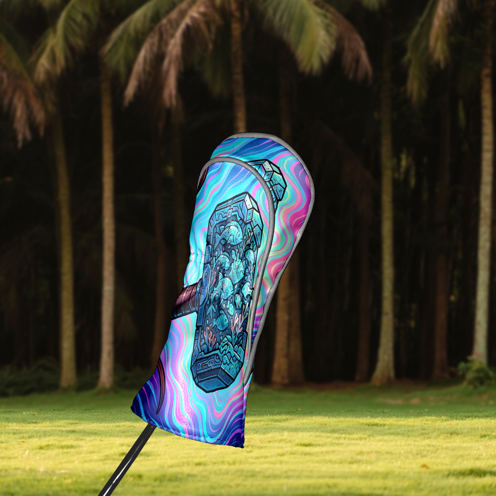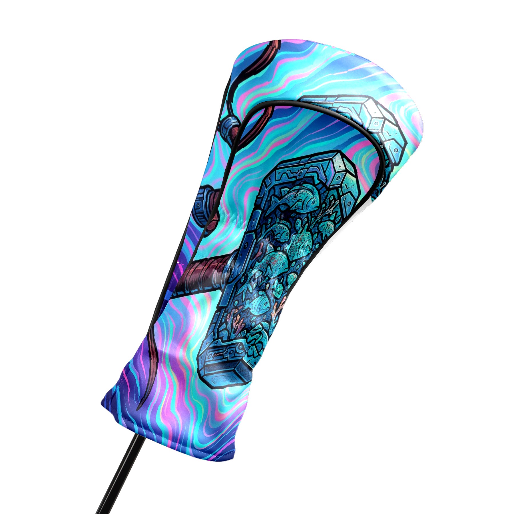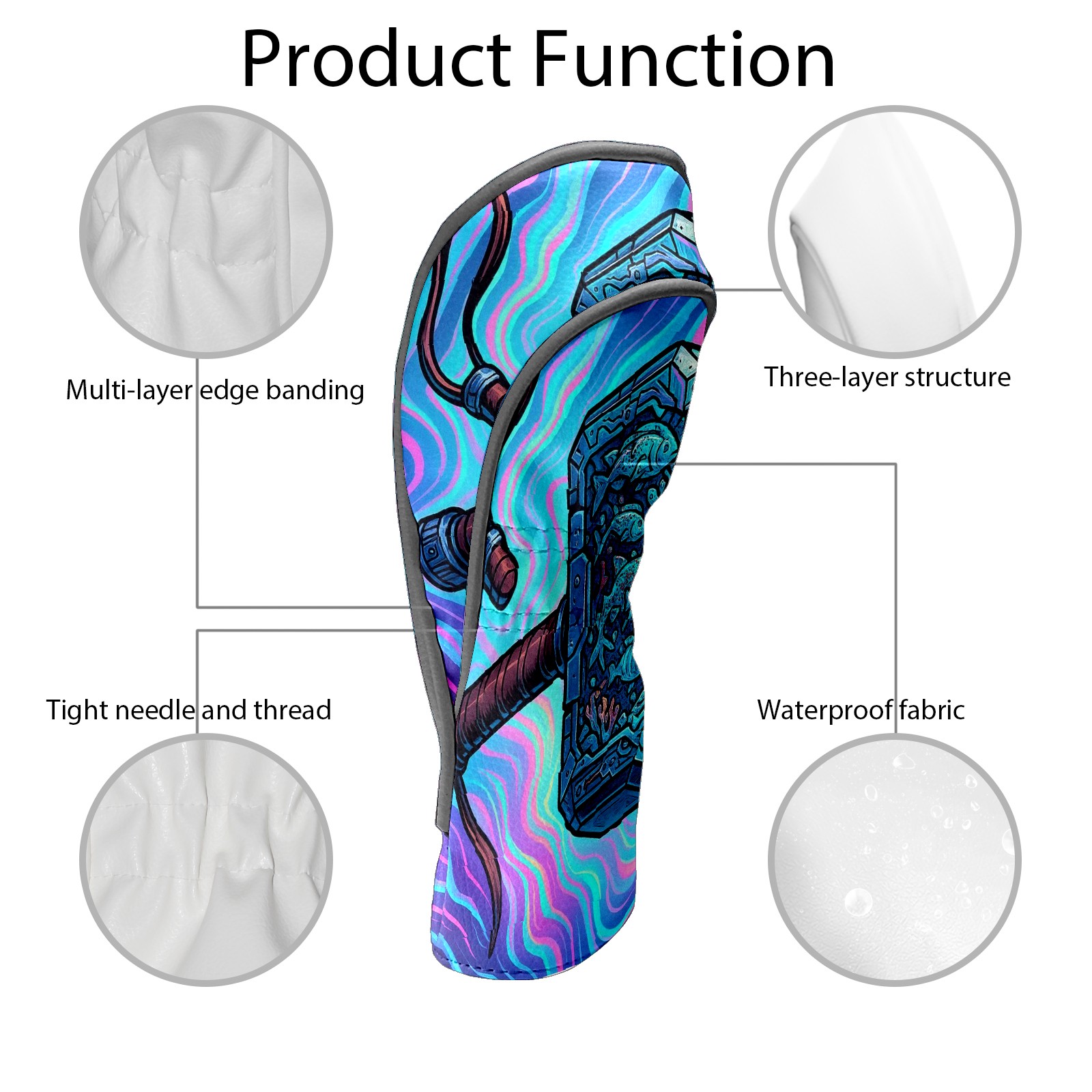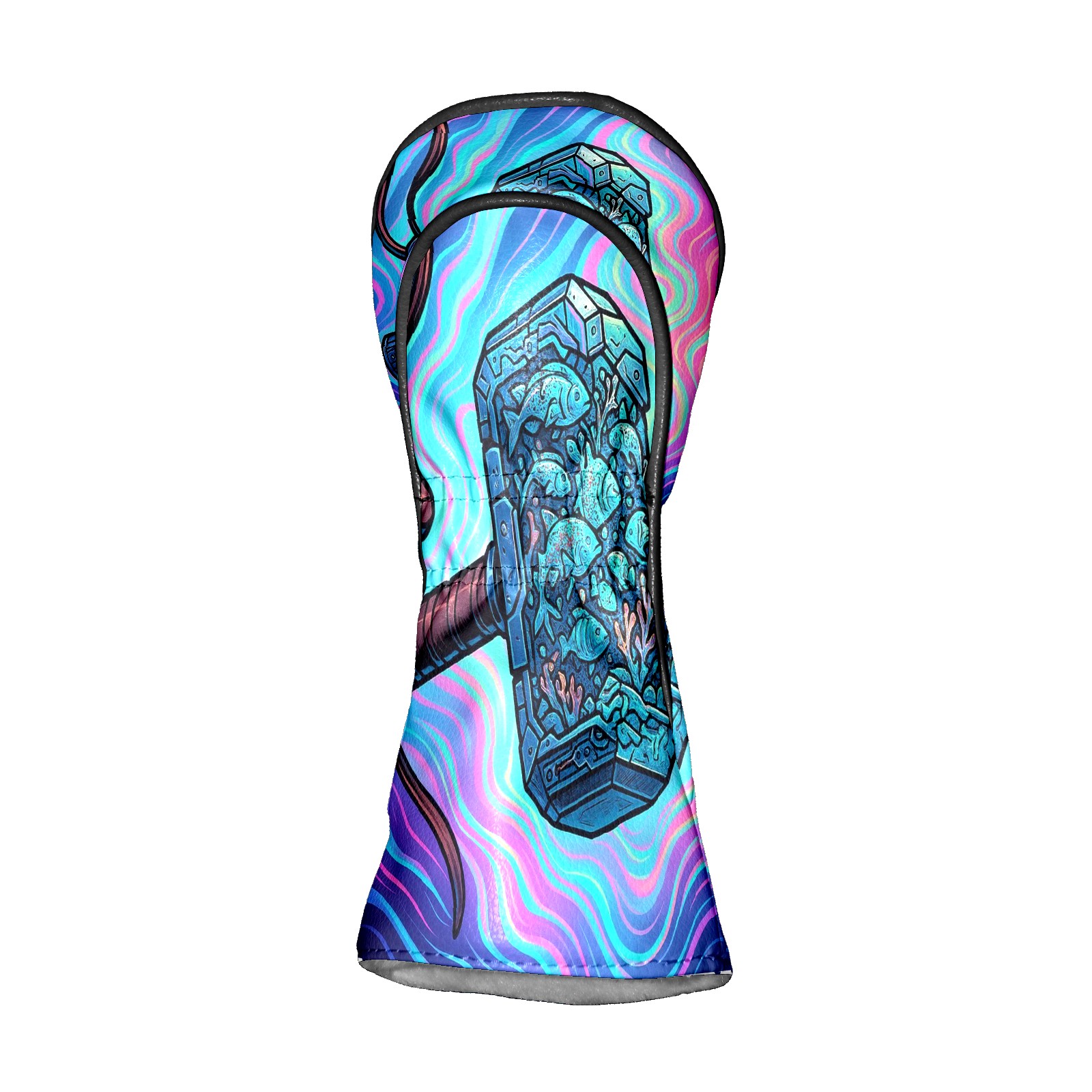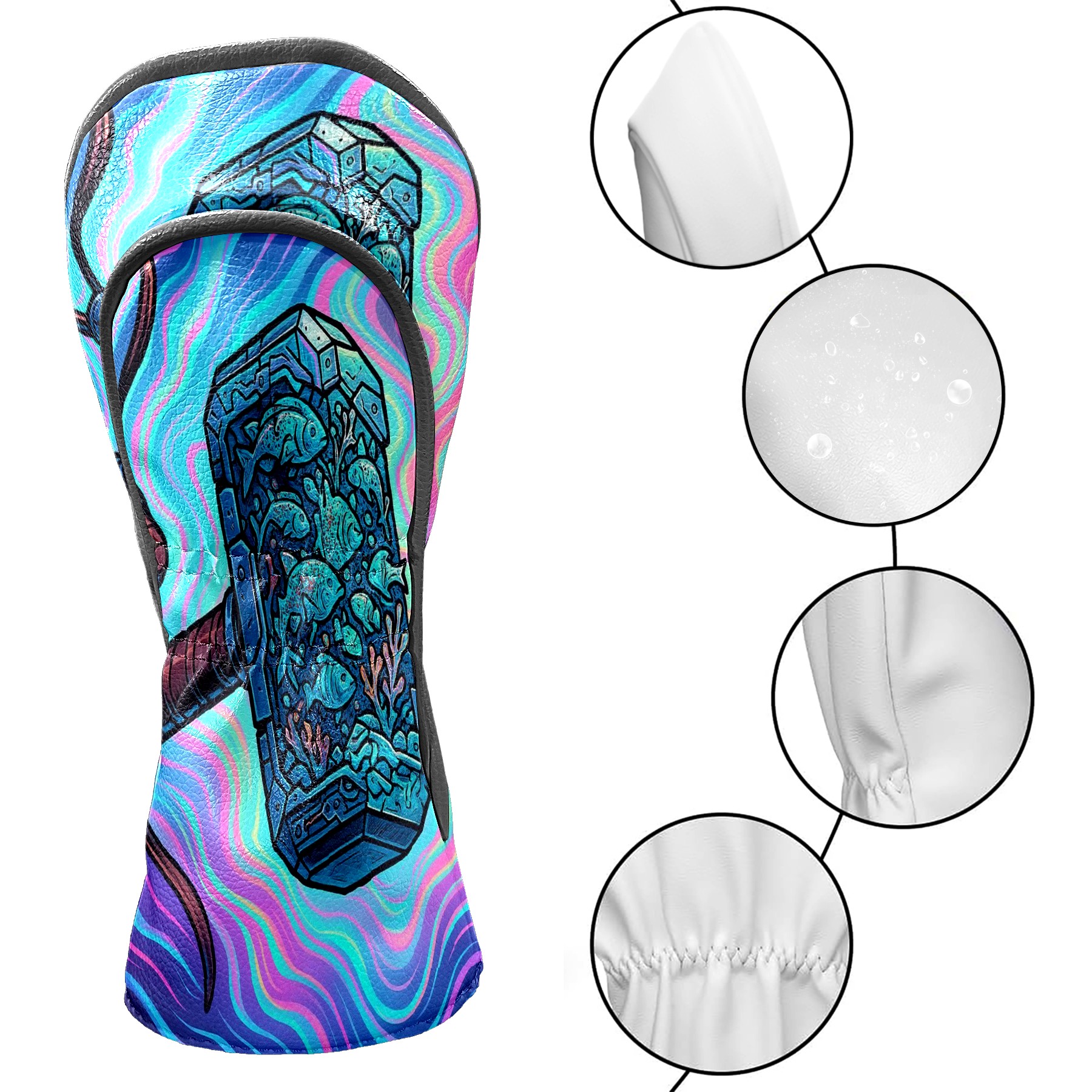 Golf Club Head Covers Blue Hammer Design for Driver & Hybrid, Waterproof PU Leather with Plush Velvet Lining, Scratch Protection & Secure Fit, Ideal Golf Gift for Men Women