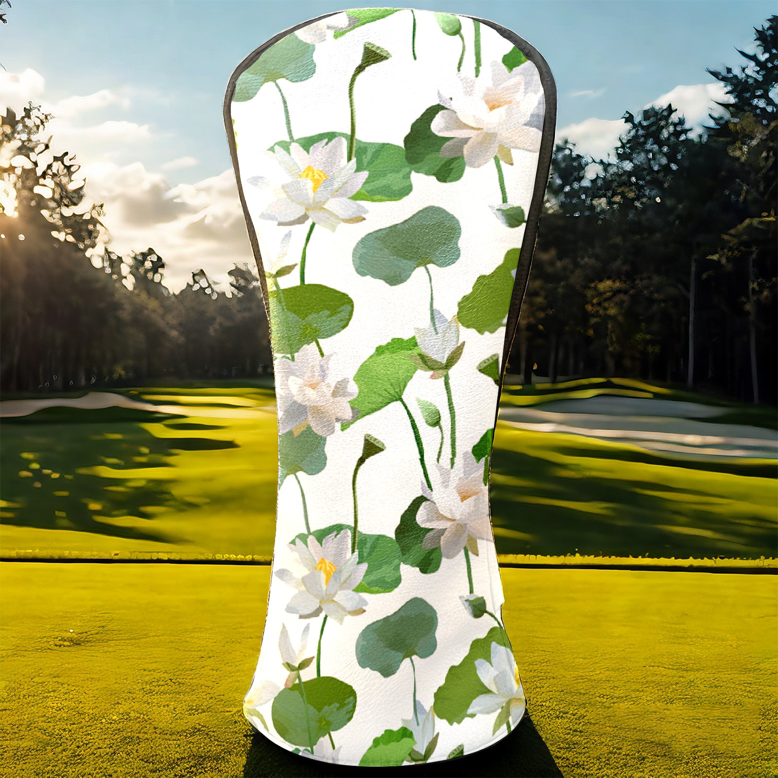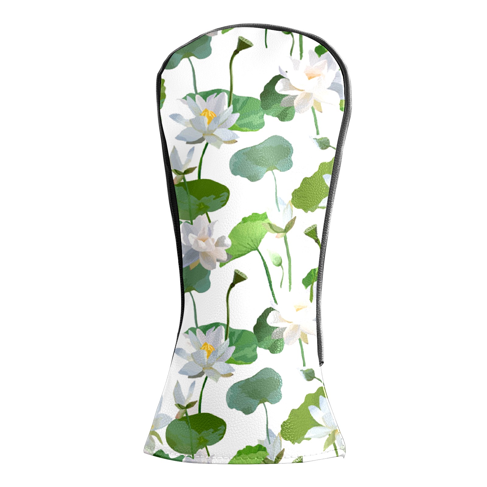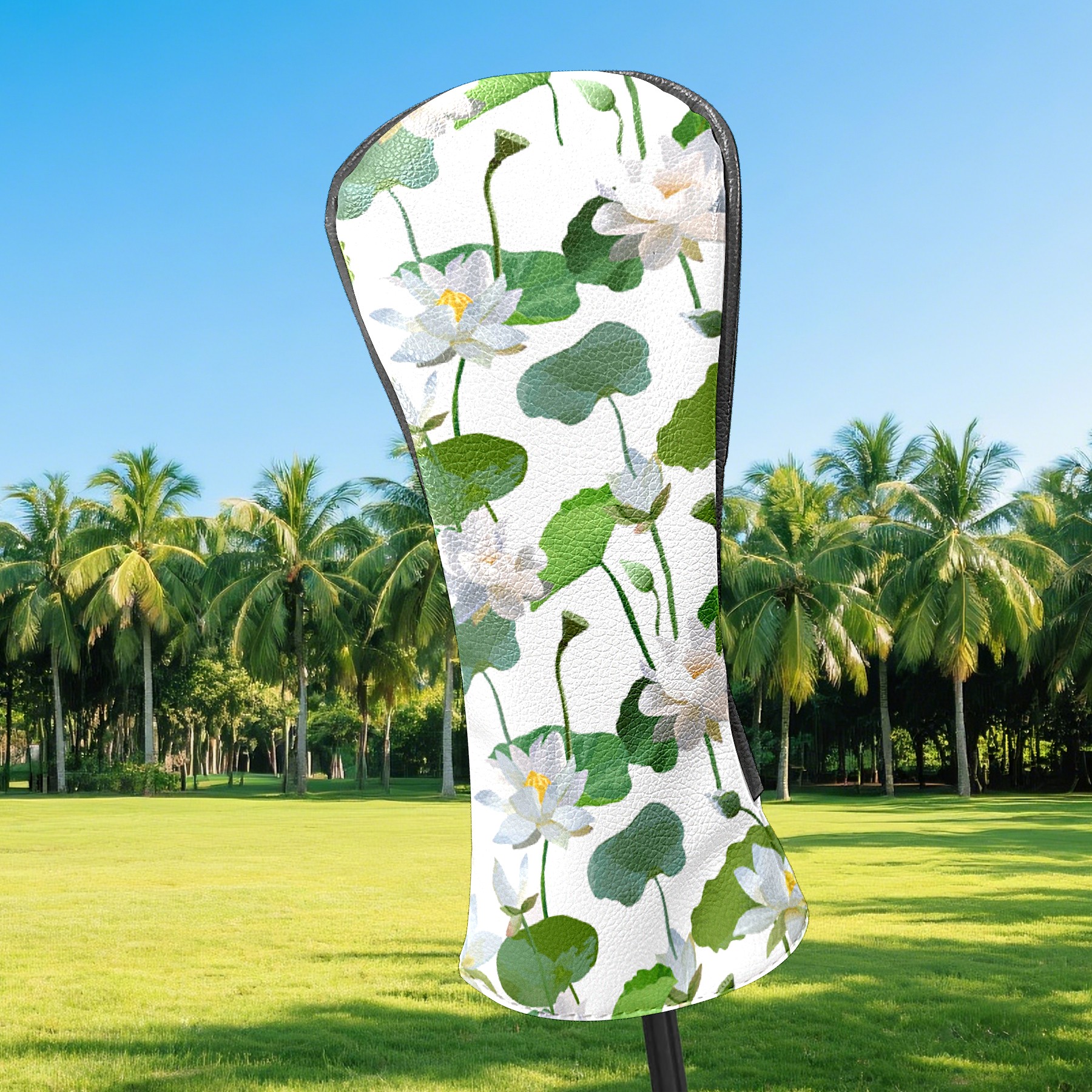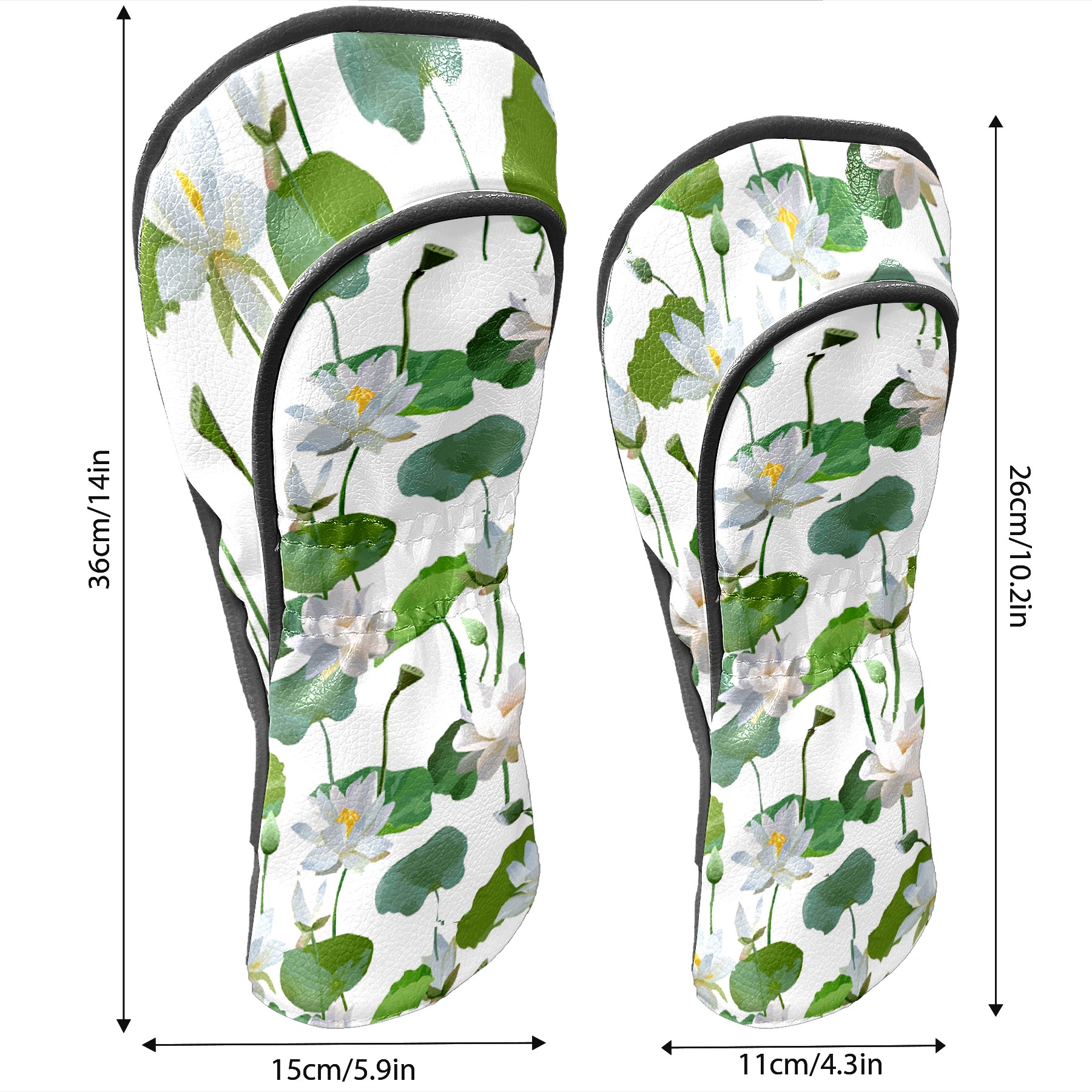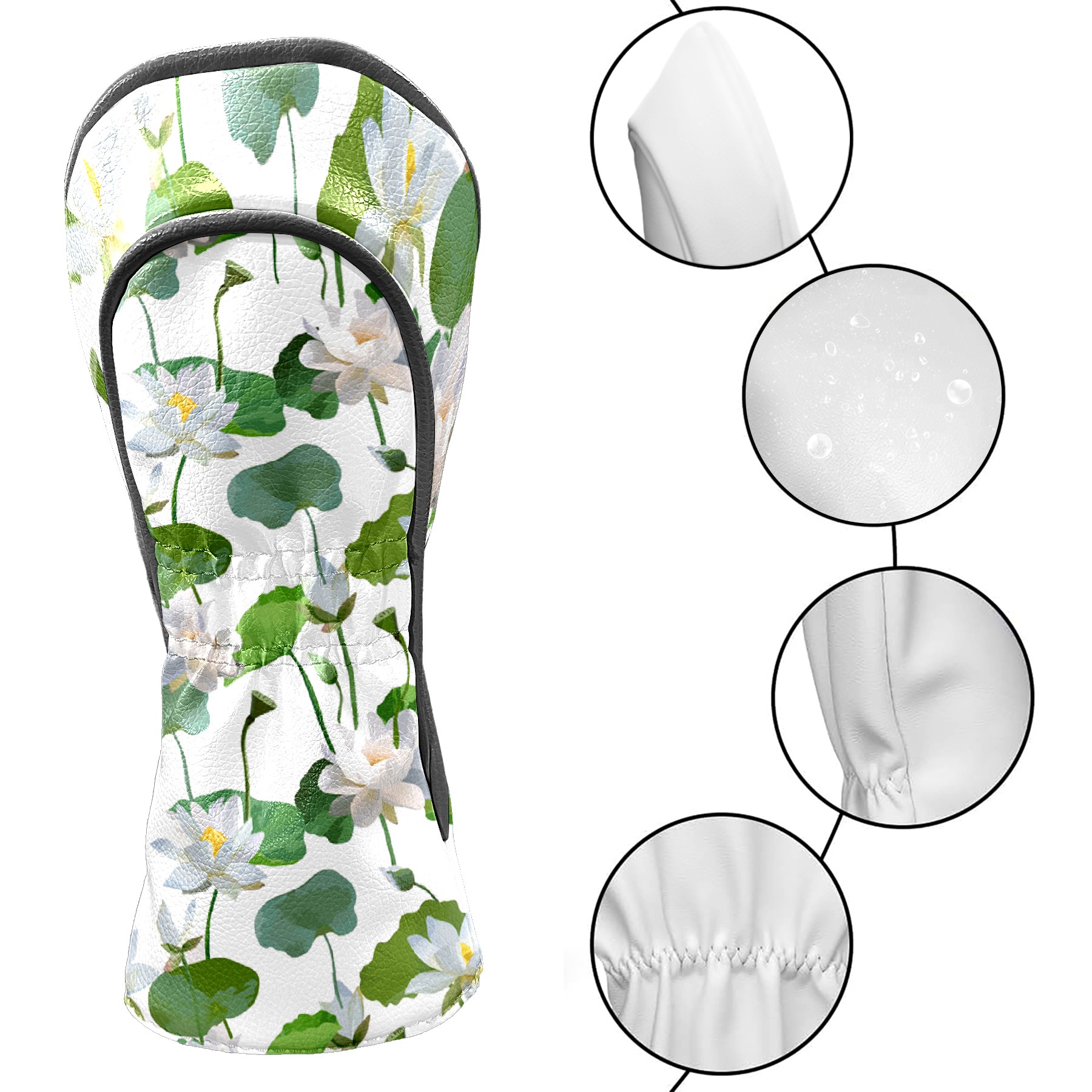 Golf Head Covers Leather Driver Headcovers, Premium Golf Club Covers with Anti-Scratch Lining 1/3/5 Wood Cover for golf clubs for Women Men (White Lotus)