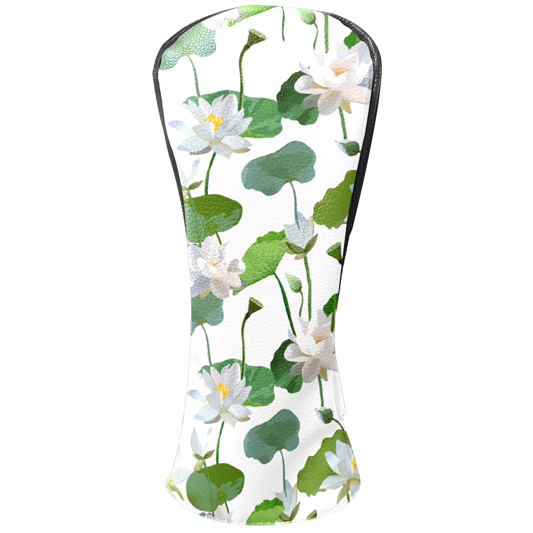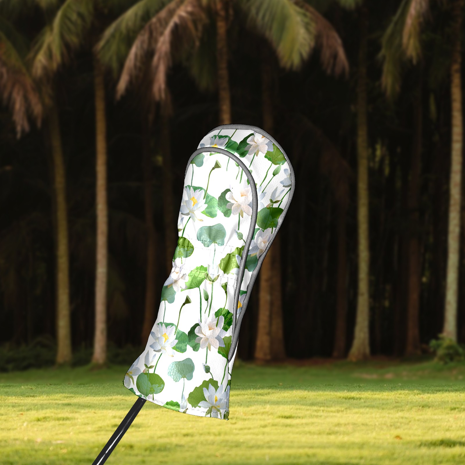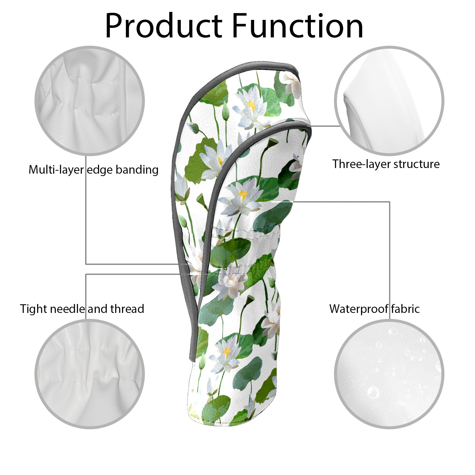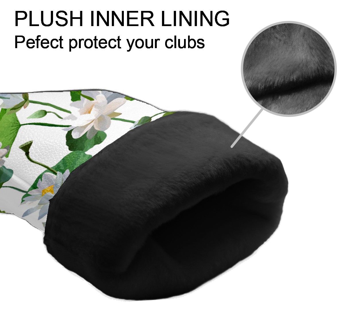 Golf Head Covers Leather Driver Headcovers, Premium Golf Club Covers with Anti-Scratch Lining 1/3/5 Wood Cover for golf clubs for Women Men (White Lotus)