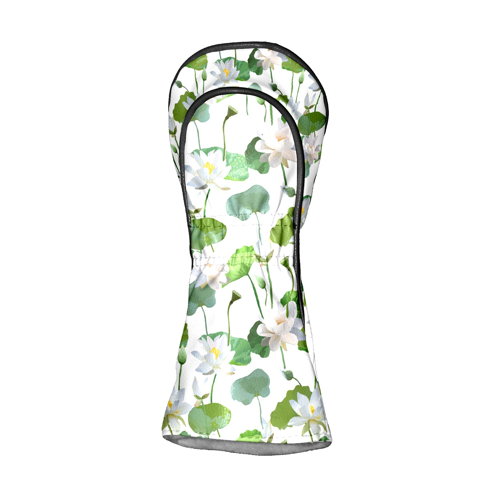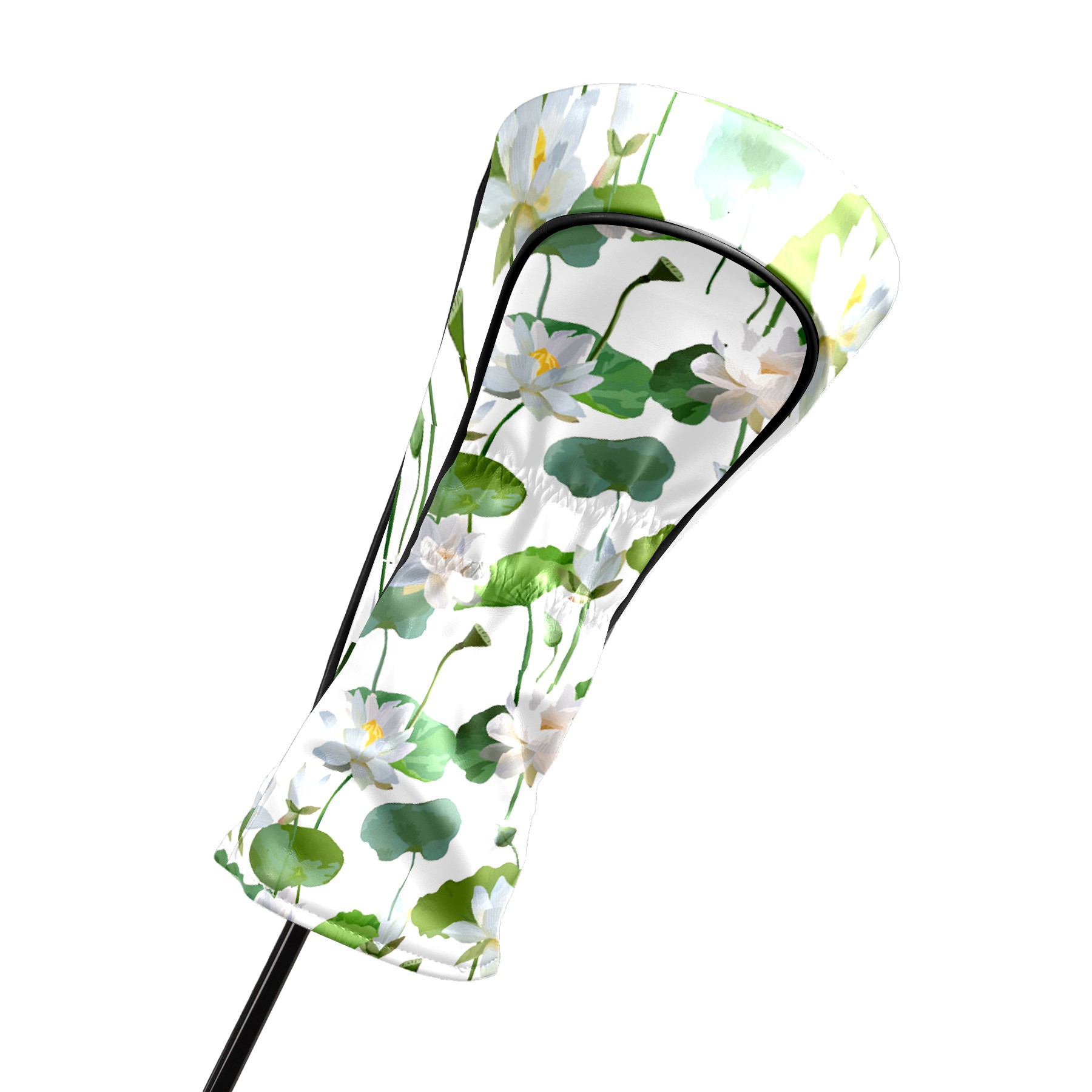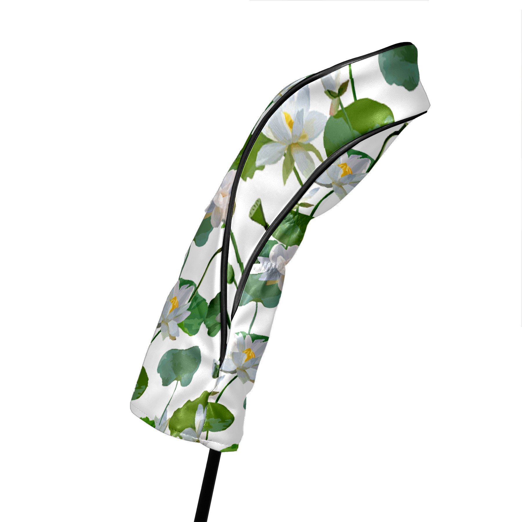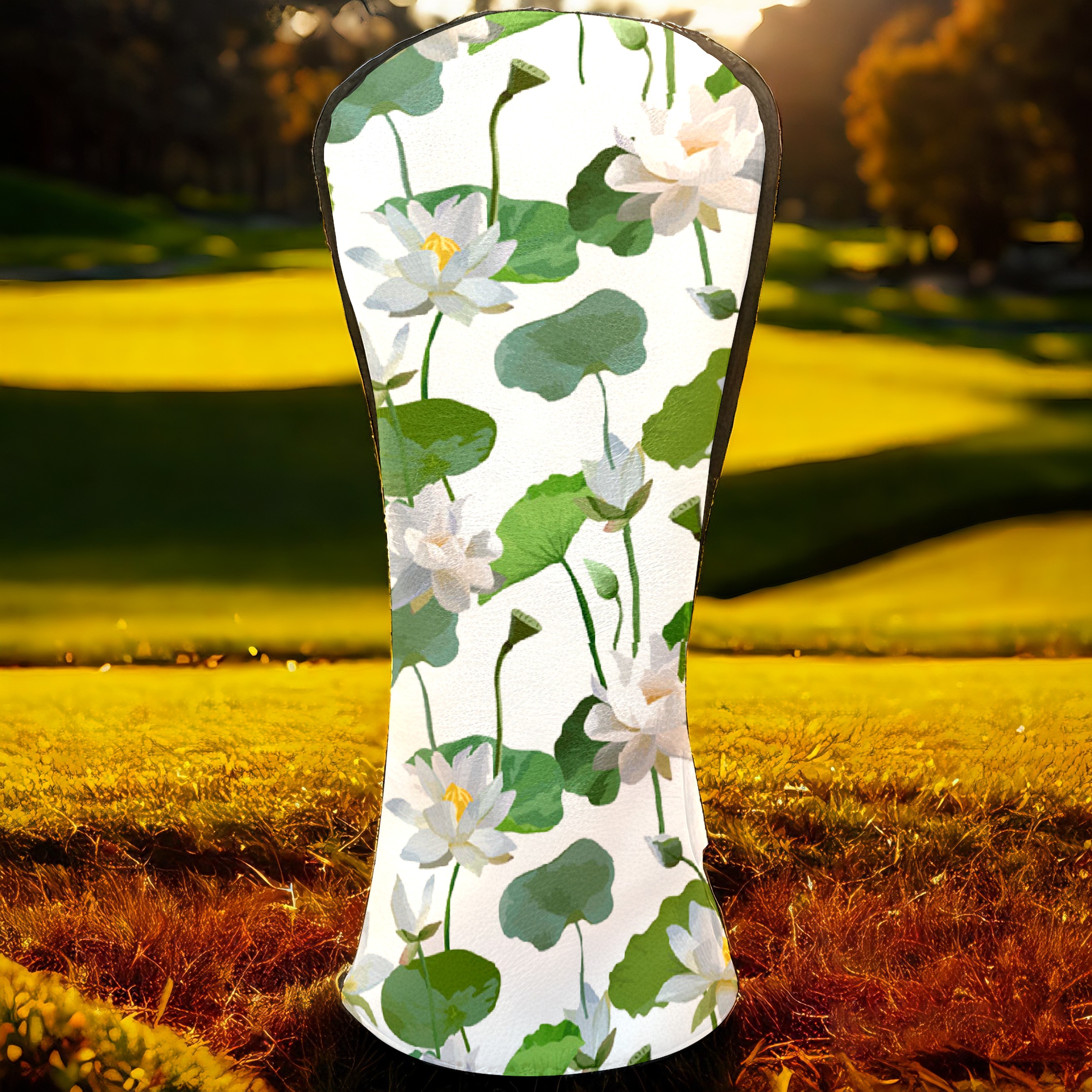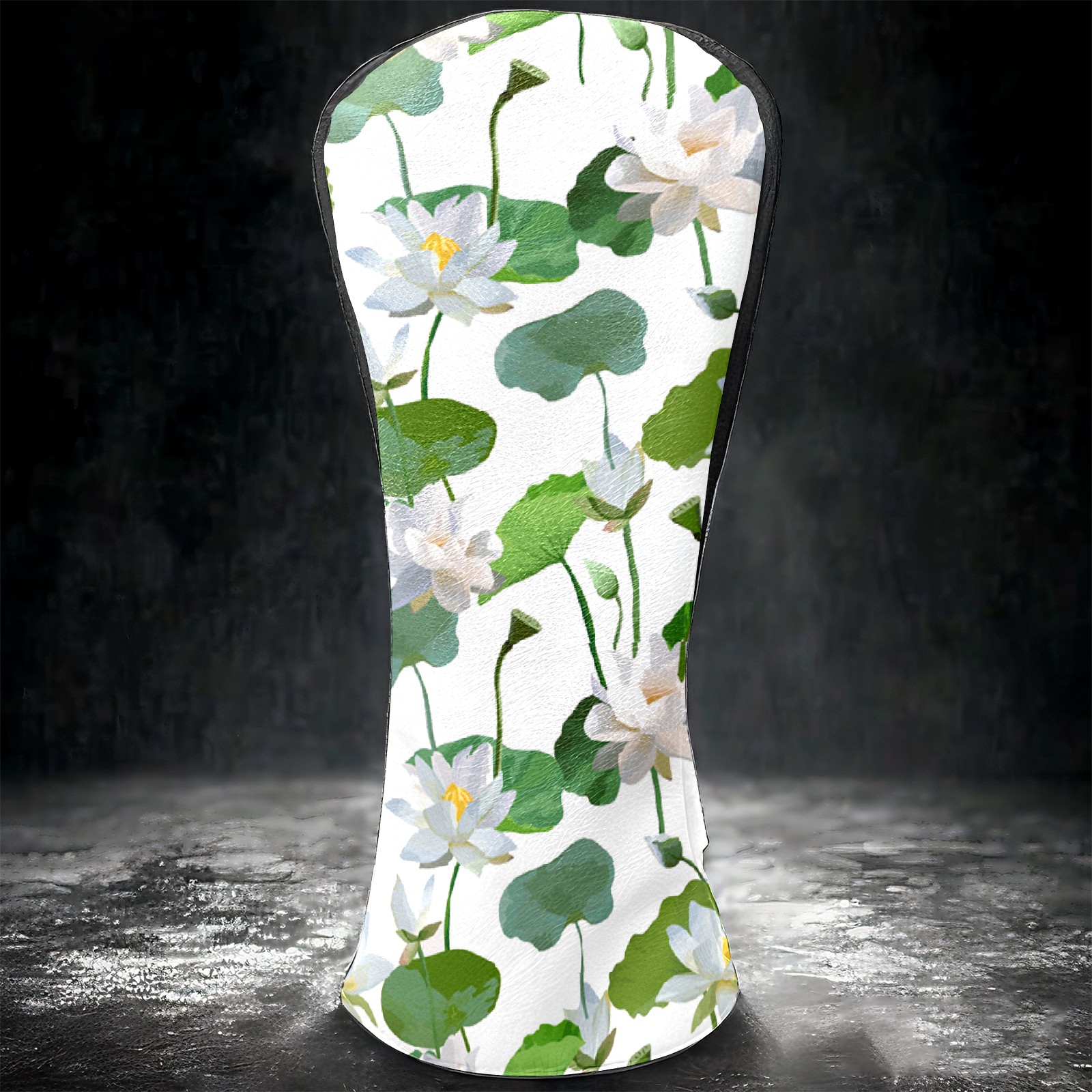 Golf Head Covers Leather Driver Headcovers, Premium Golf Club Covers with Anti-Scratch Lining 1/3/5 Wood Cover for golf clubs for Women Men (White Lotus)