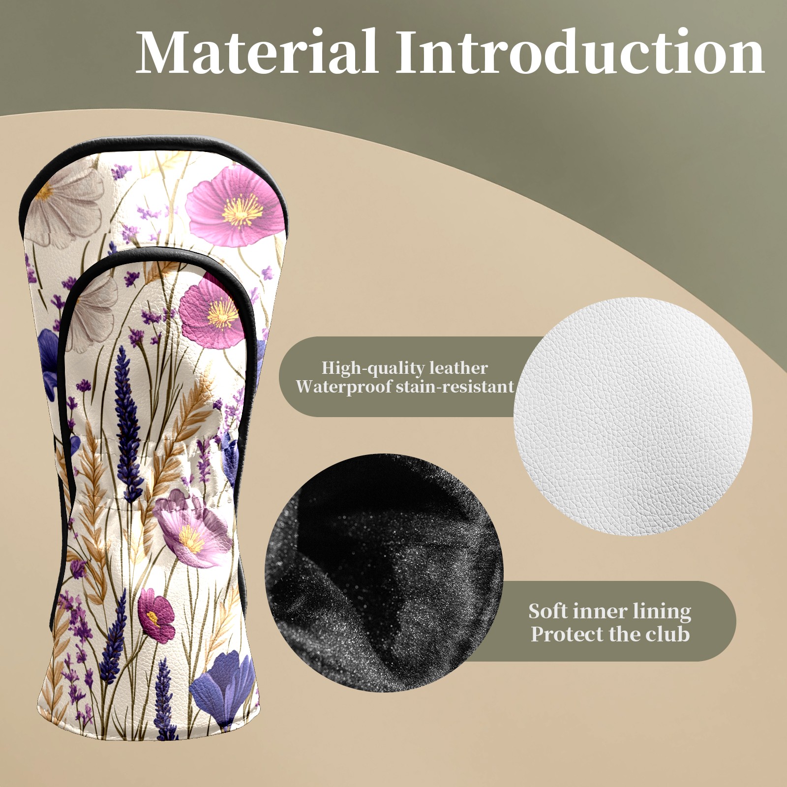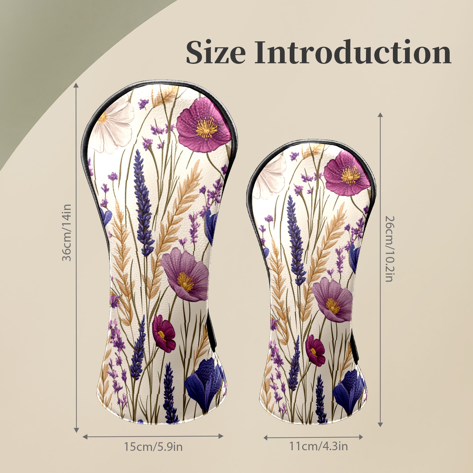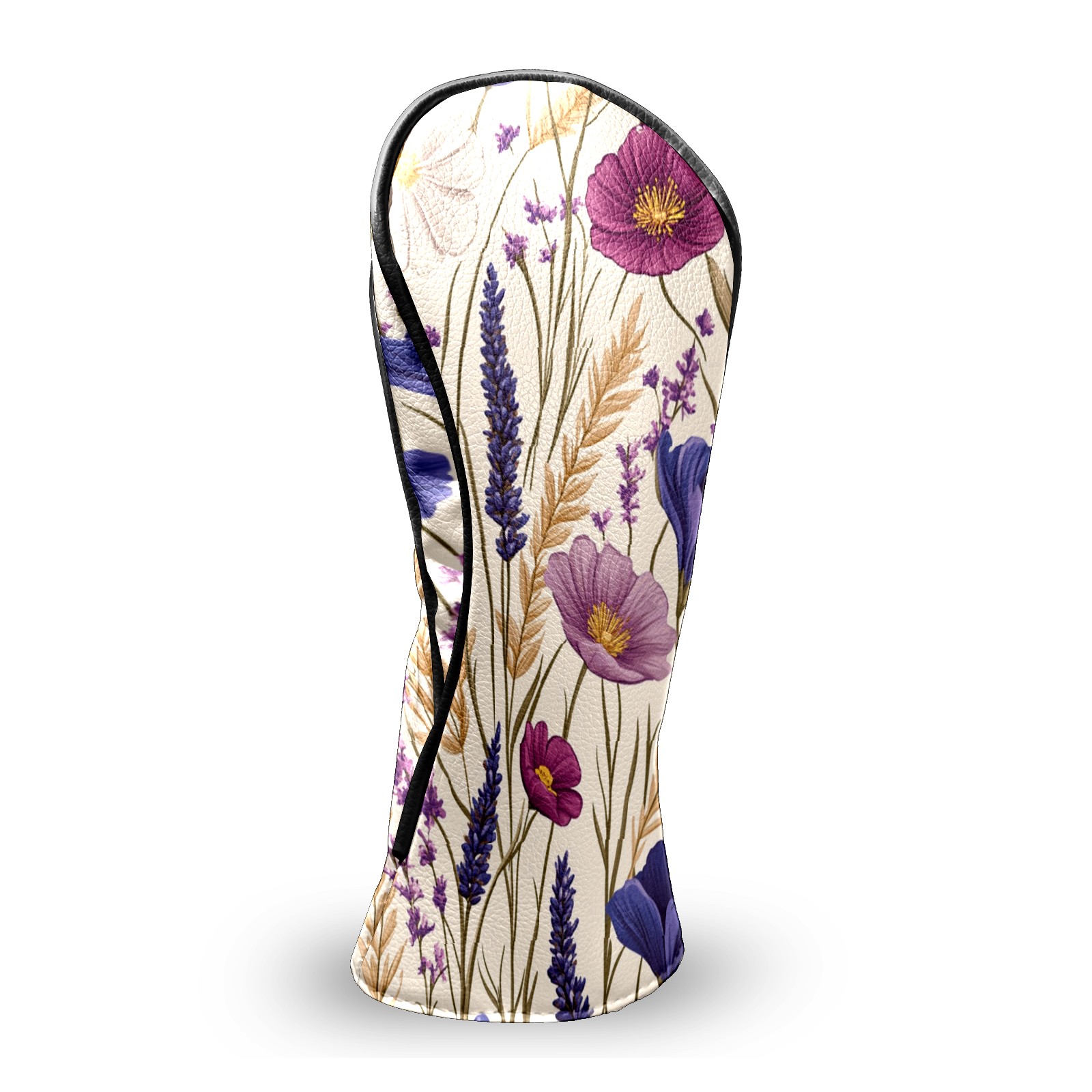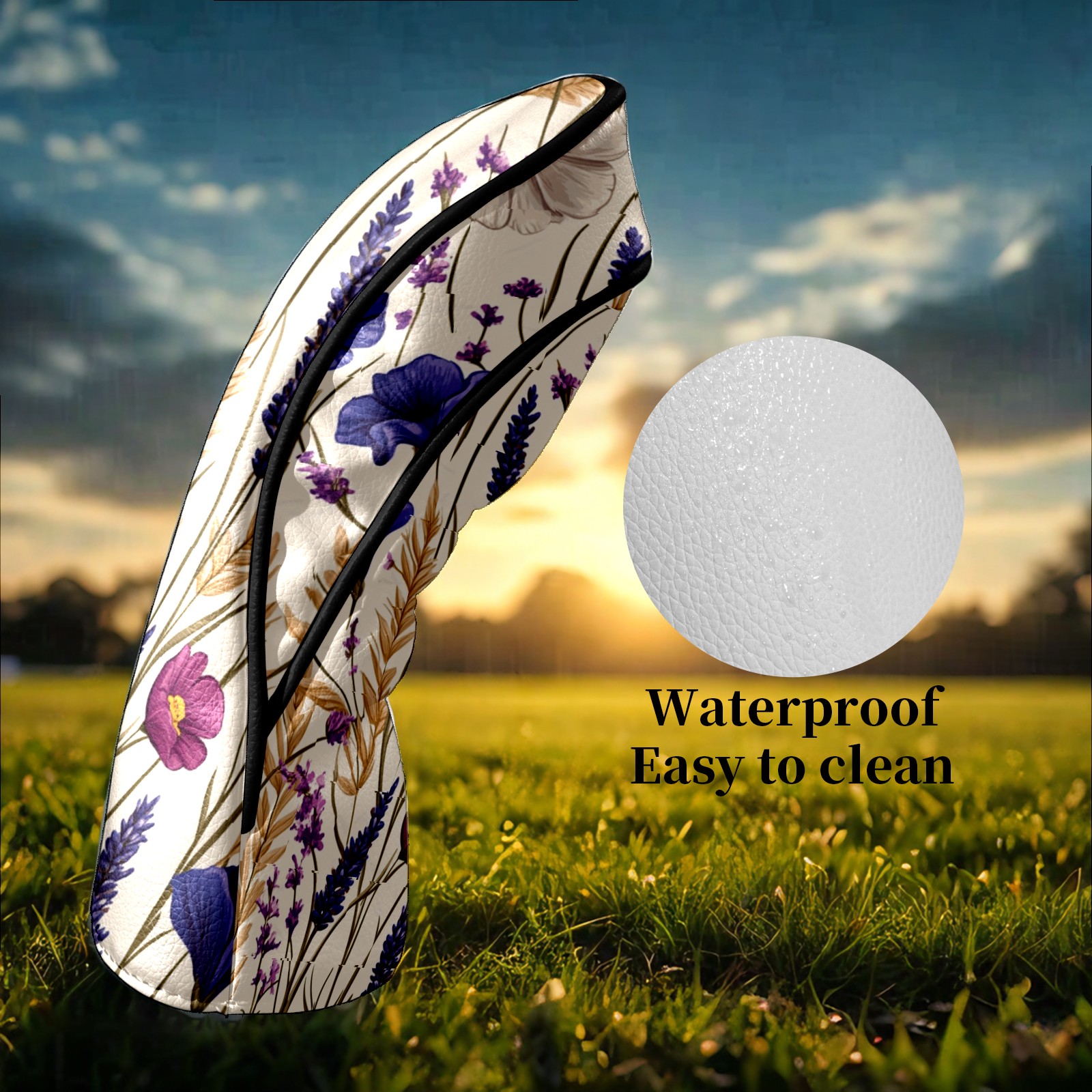 Premium Leather Golf Club Headcovers,Purple Pink Flowers Wheat Ears Fits Driver Hybrid Fairway 3/5 Wood,with Scratch-Resistant Lining, Gift for Men and Women