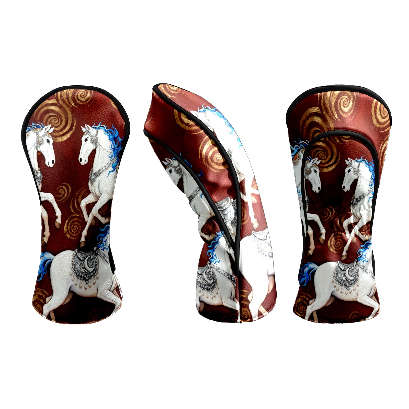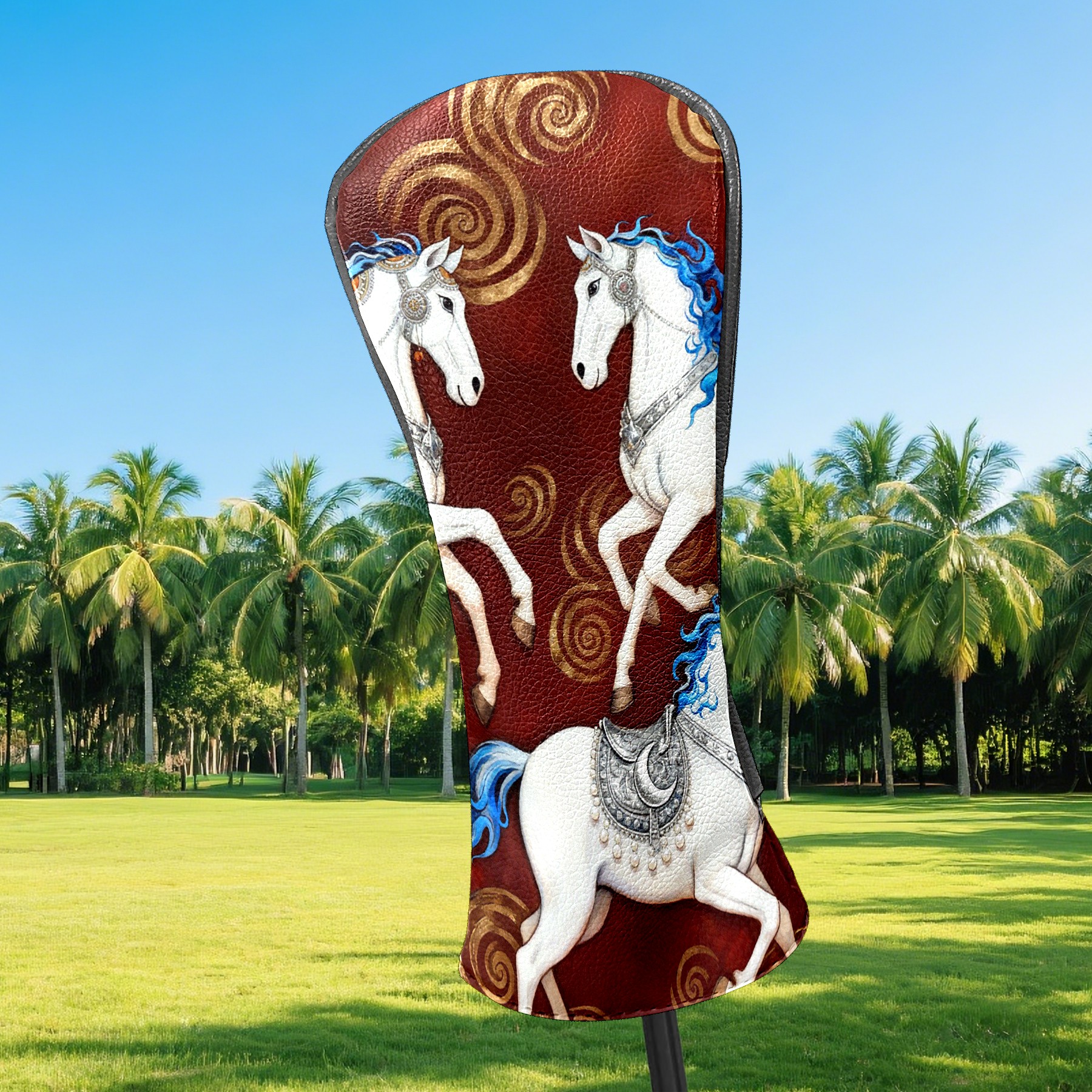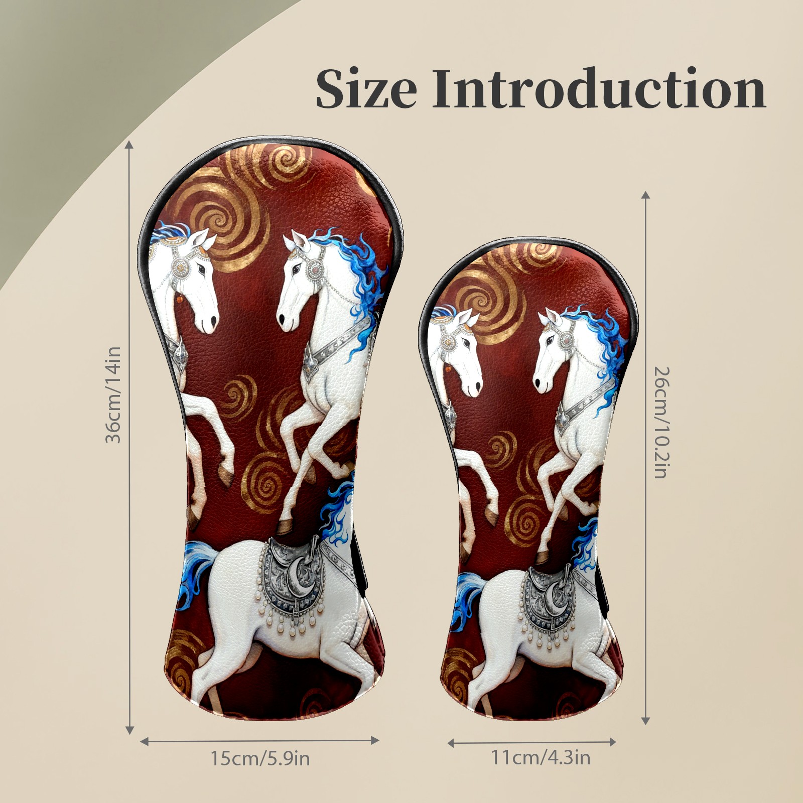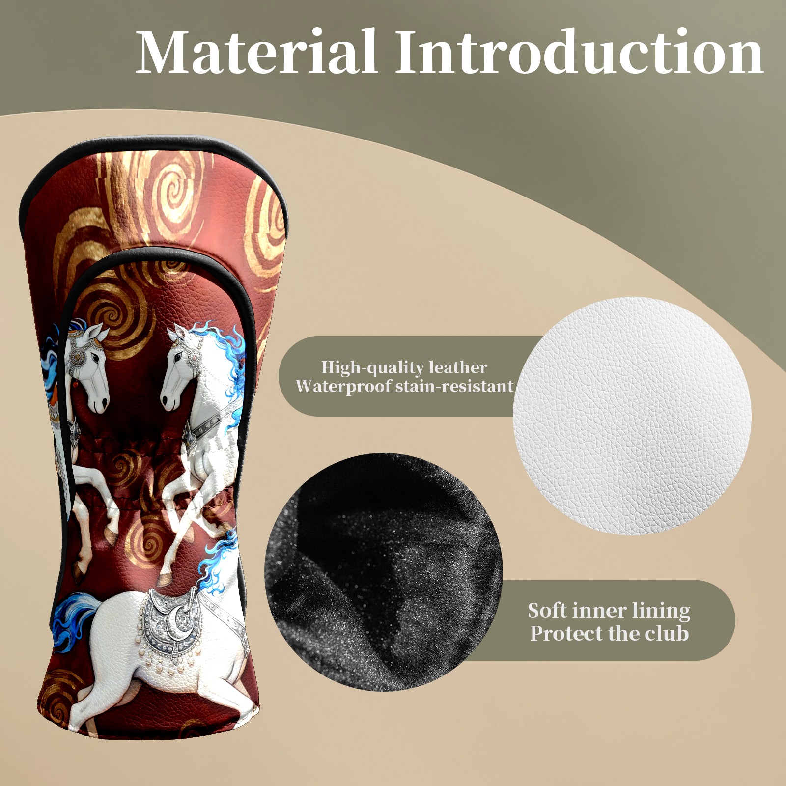 Premium Leather Golf Club Headcovers,Three Blue-adorned White Horses Fits Driver Hybrid Fairway 3/5 Wood,with Scratch-Resistant Lining, Gift for Men and Women