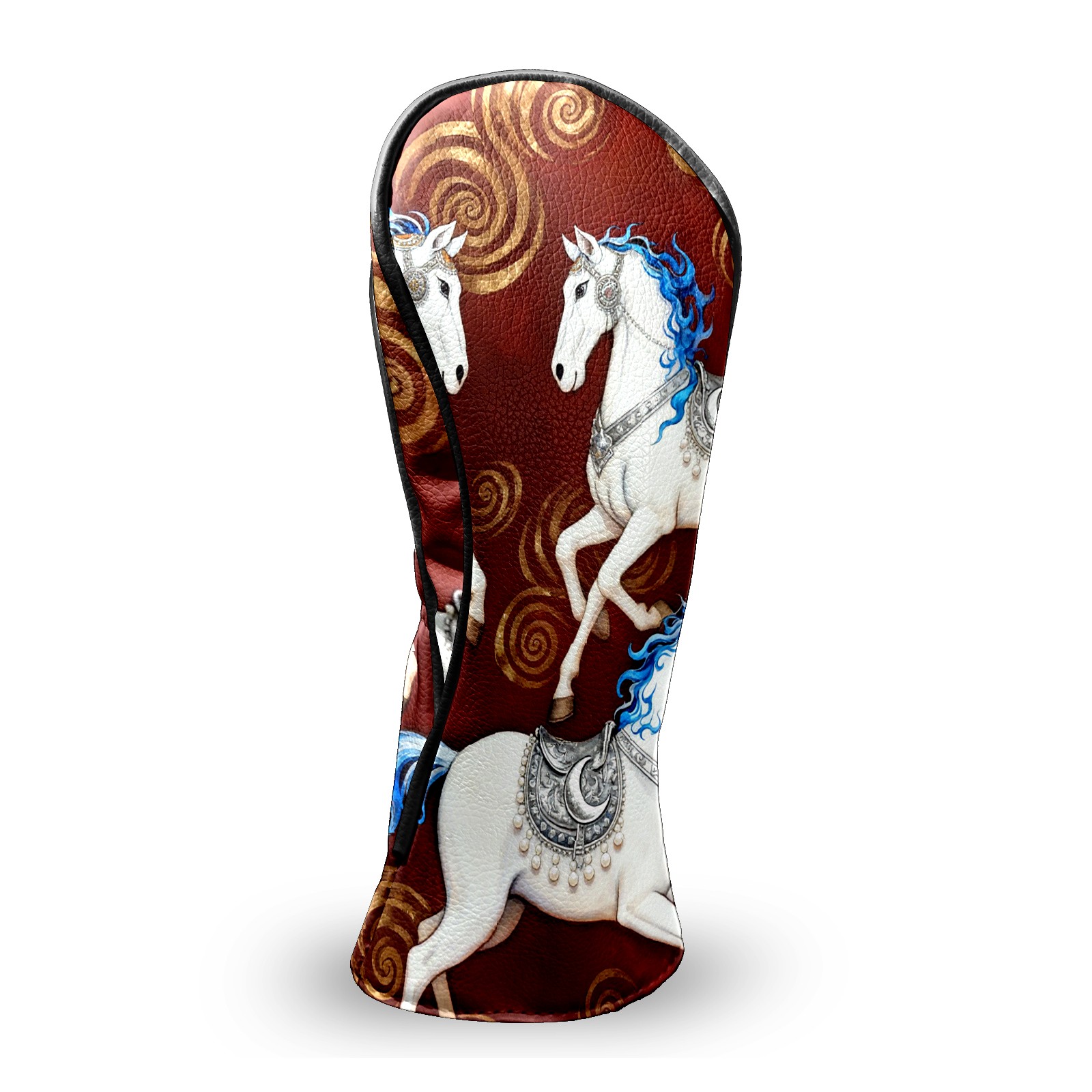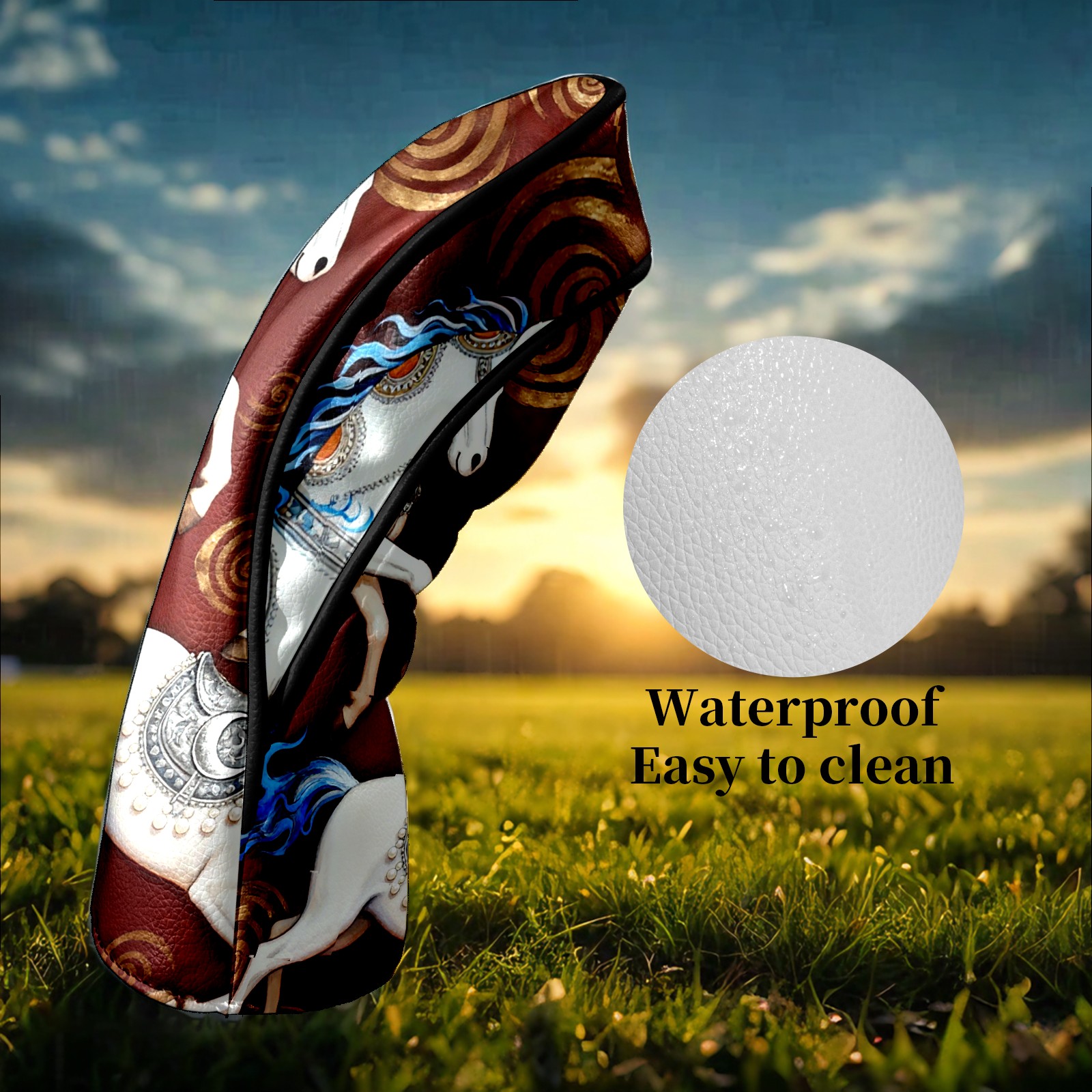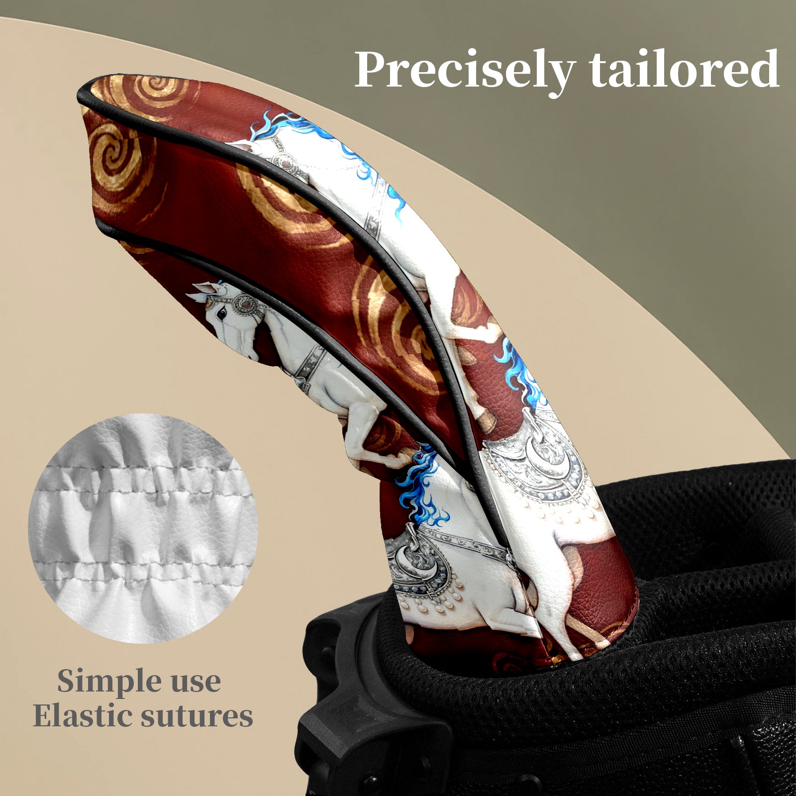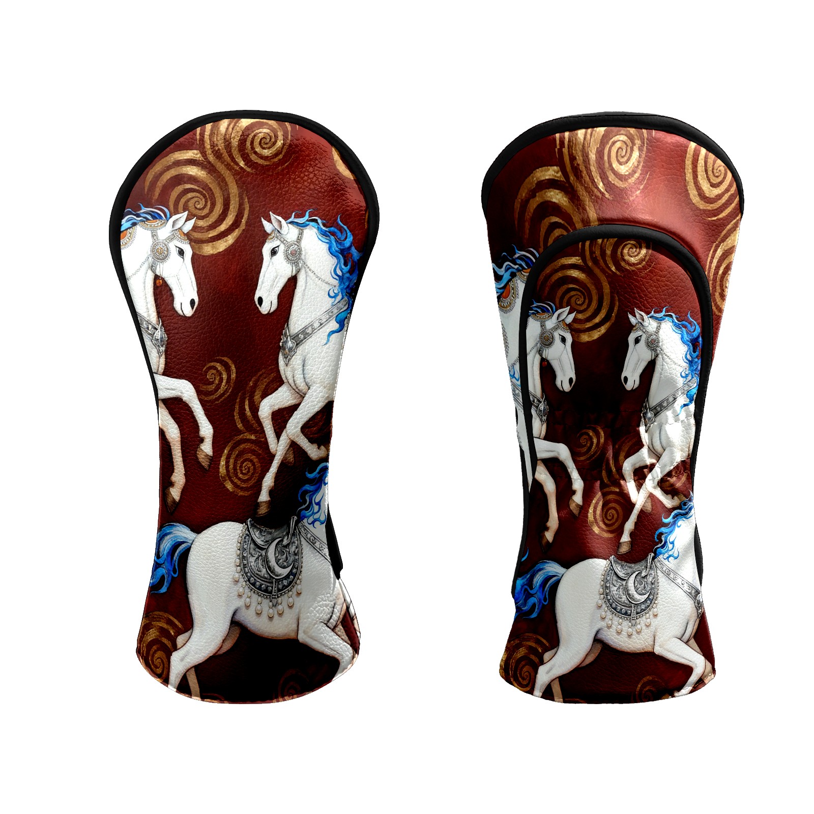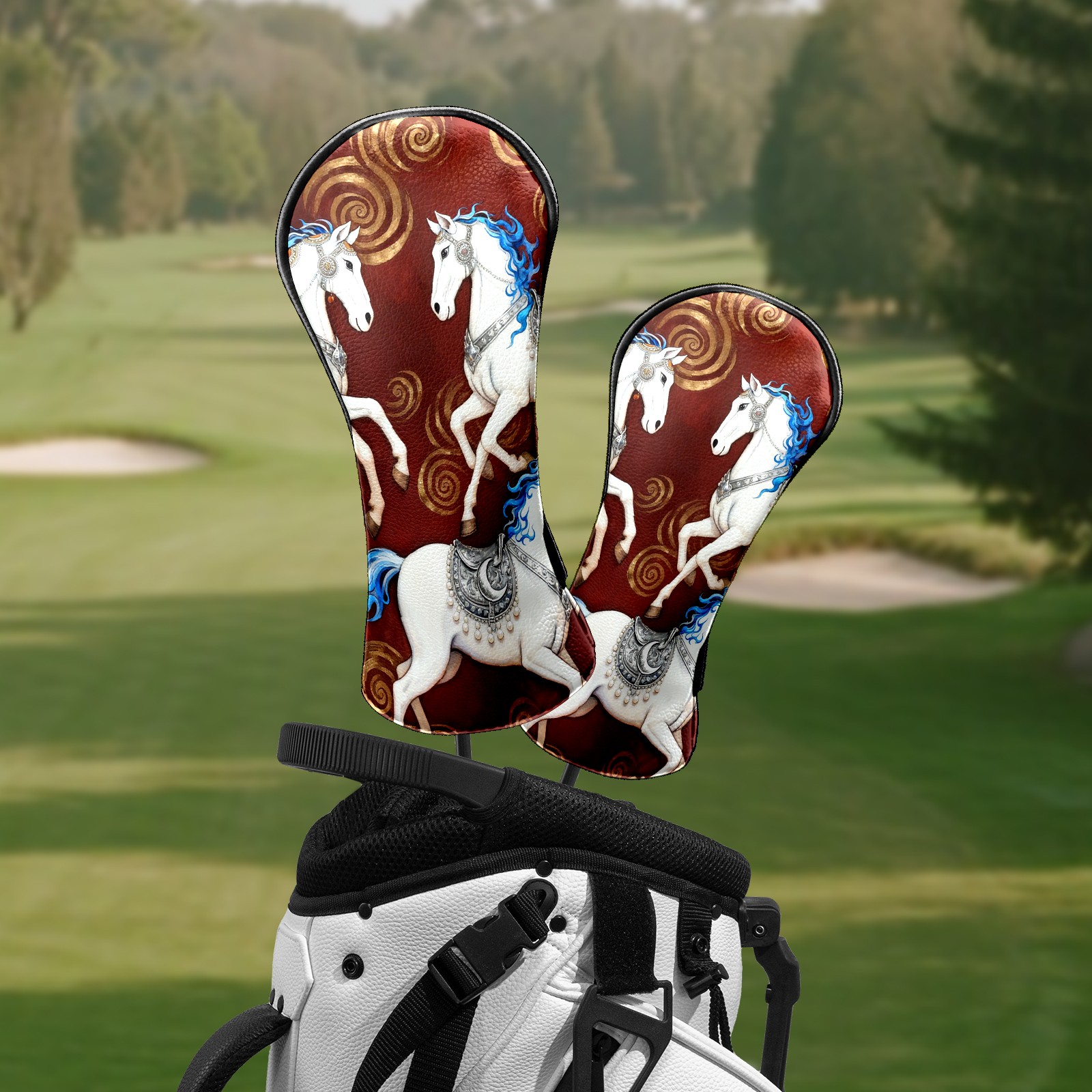 Premium Leather Golf Club Headcovers,Three Blue-adorned White Horses Fits Driver Hybrid Fairway 3/5 Wood,with Scratch-Resistant Lining, Gift for Men and Women