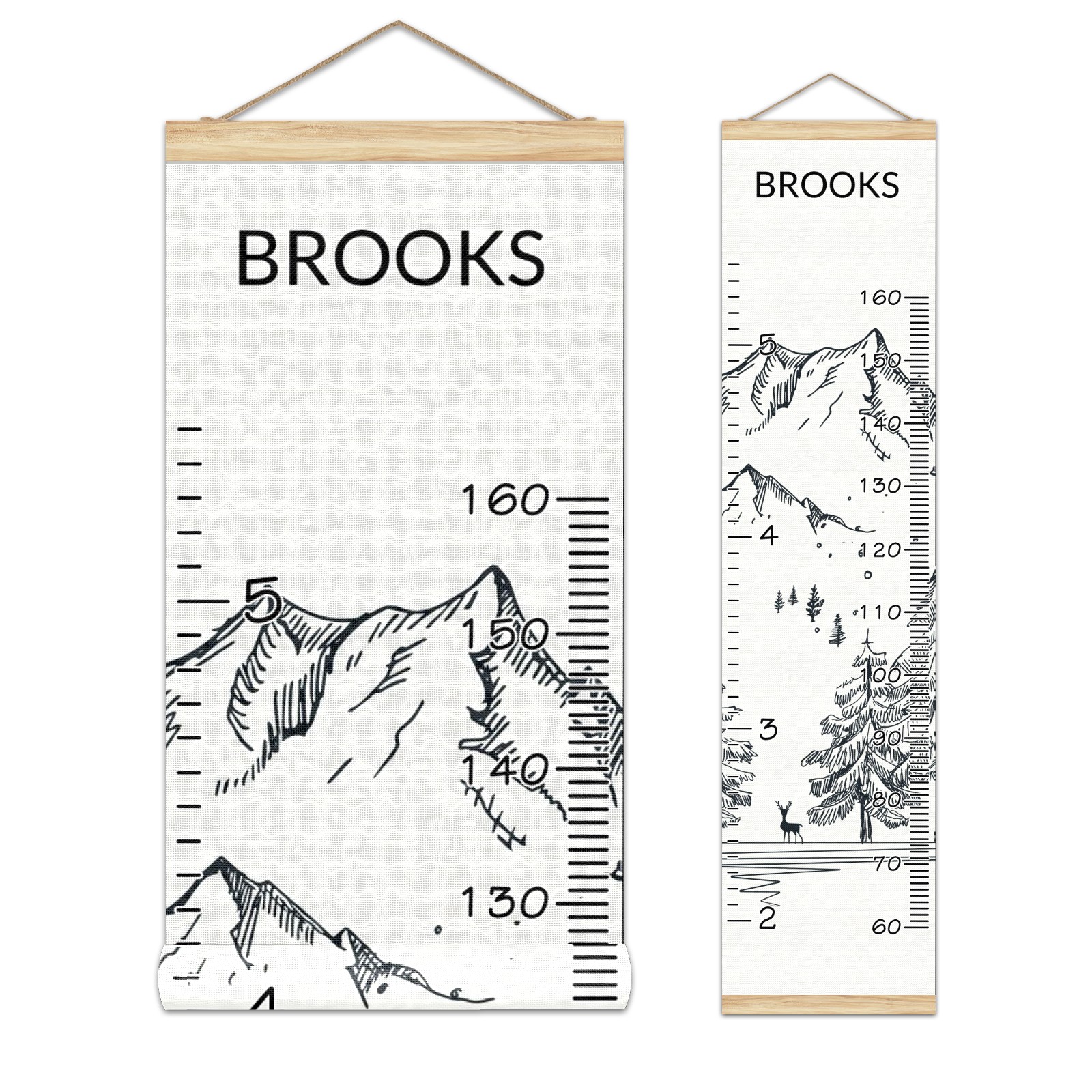 Personalized Kids Name Growth Chart Ruler for Wall Wood Frame Canvas Height Measure Chart 13.4x56 in Hanging Growth Chart Winter Mountain11.4 Boys Girls Room Decor