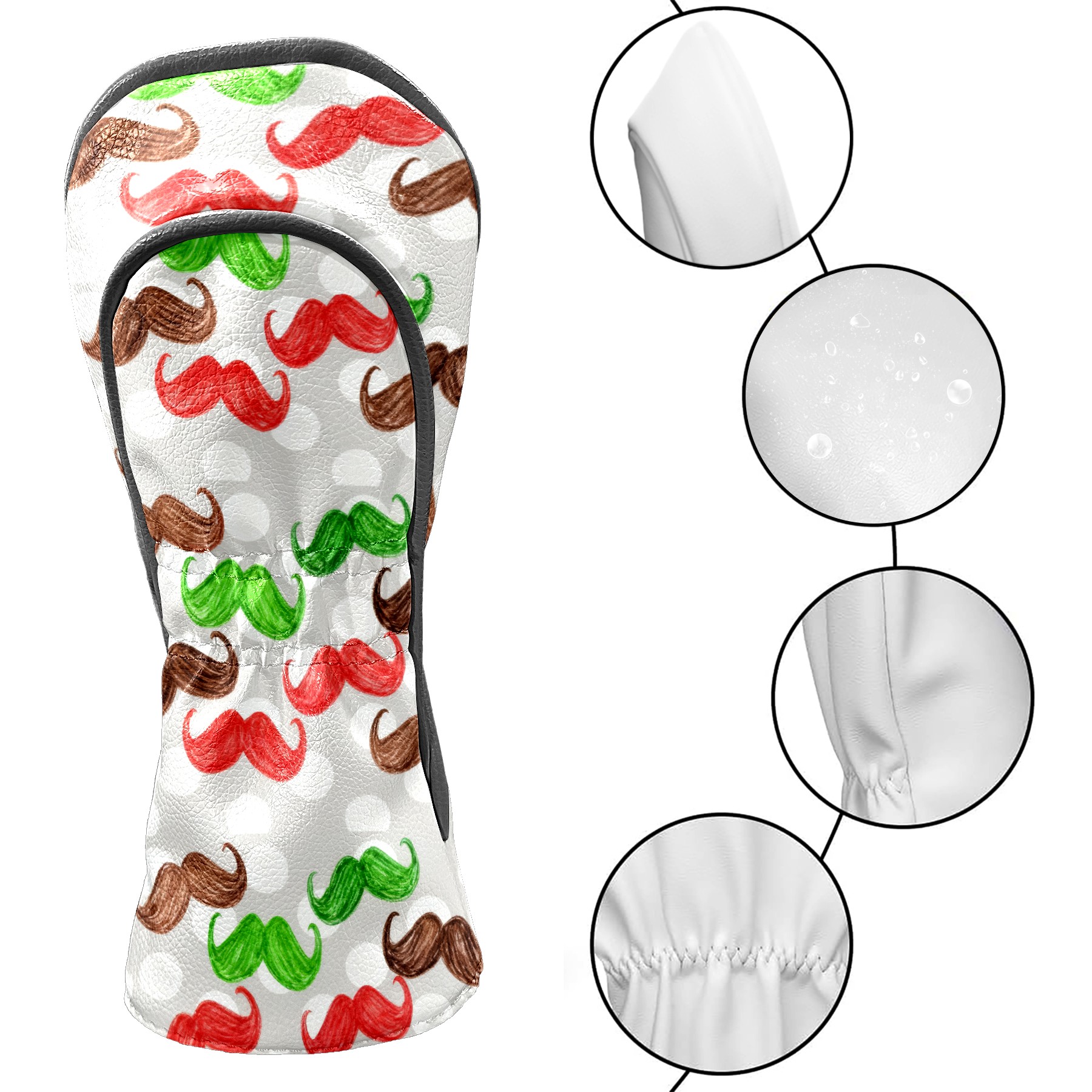 Golf Headcovers Fits Driver Hybrid Fairway 3/8 Wood, Waterproof PU Leather Golf Club Protector, Ideal Sports Accessories & Golfer Gift Colorful Beard