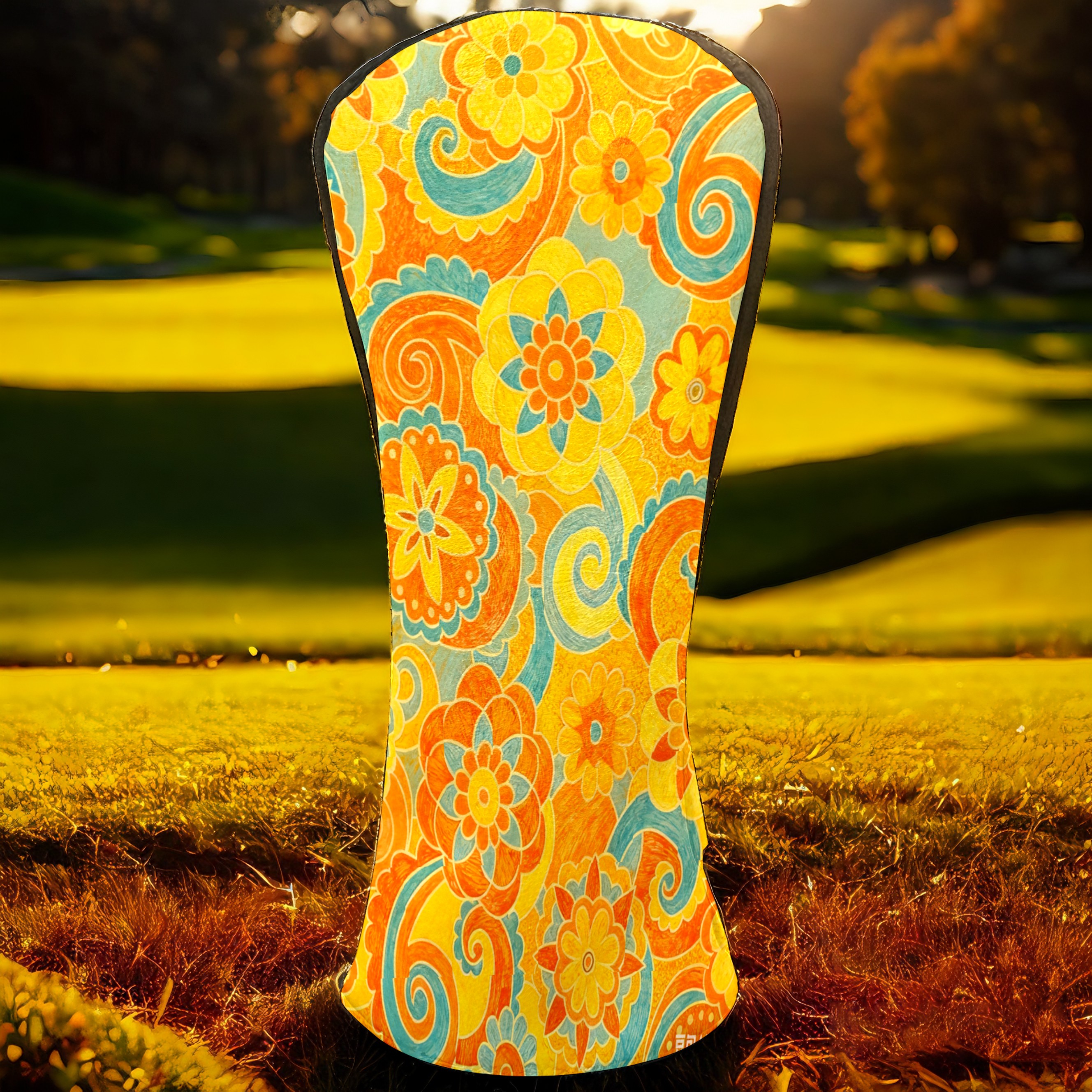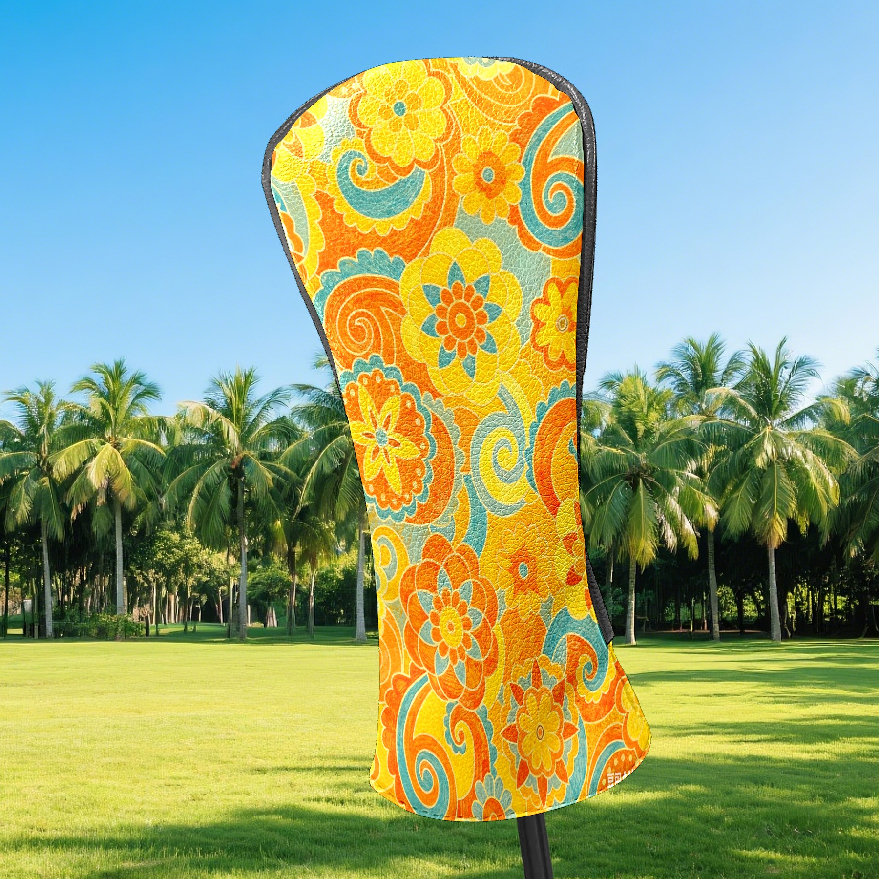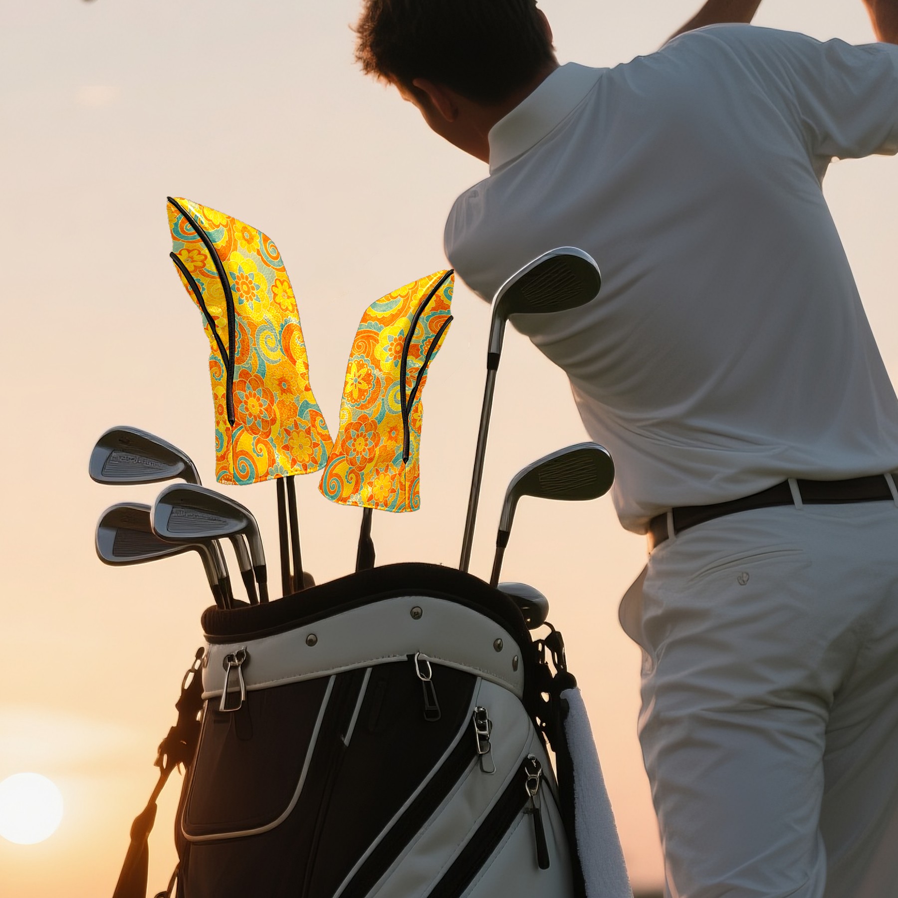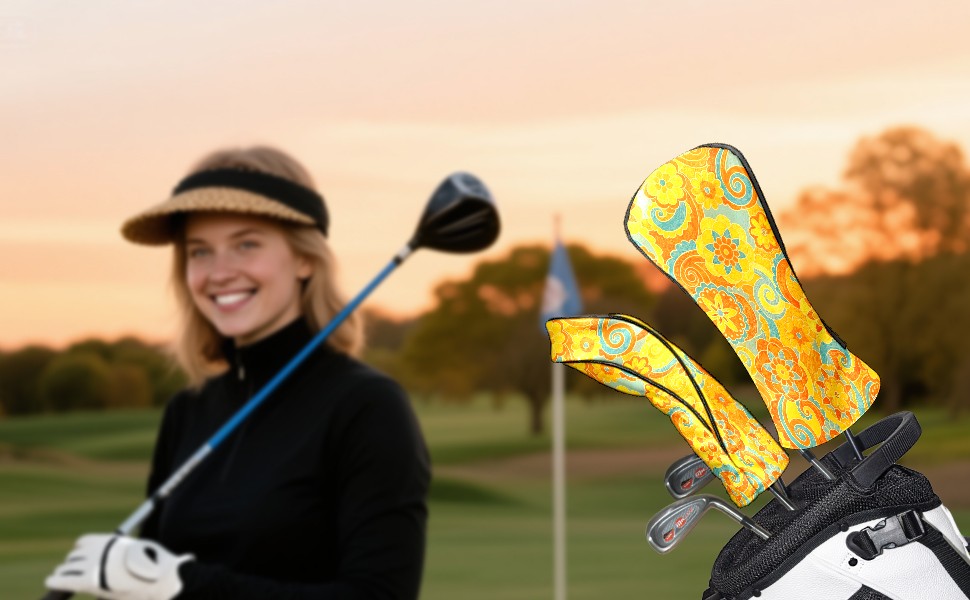 Golf Headcovers Fits Driver Hybrid Fairway 3/8 Wood, Waterproof PU Leather Golf Club Protector, Ideal Sports Accessories & Golfer Gift Orange Flower