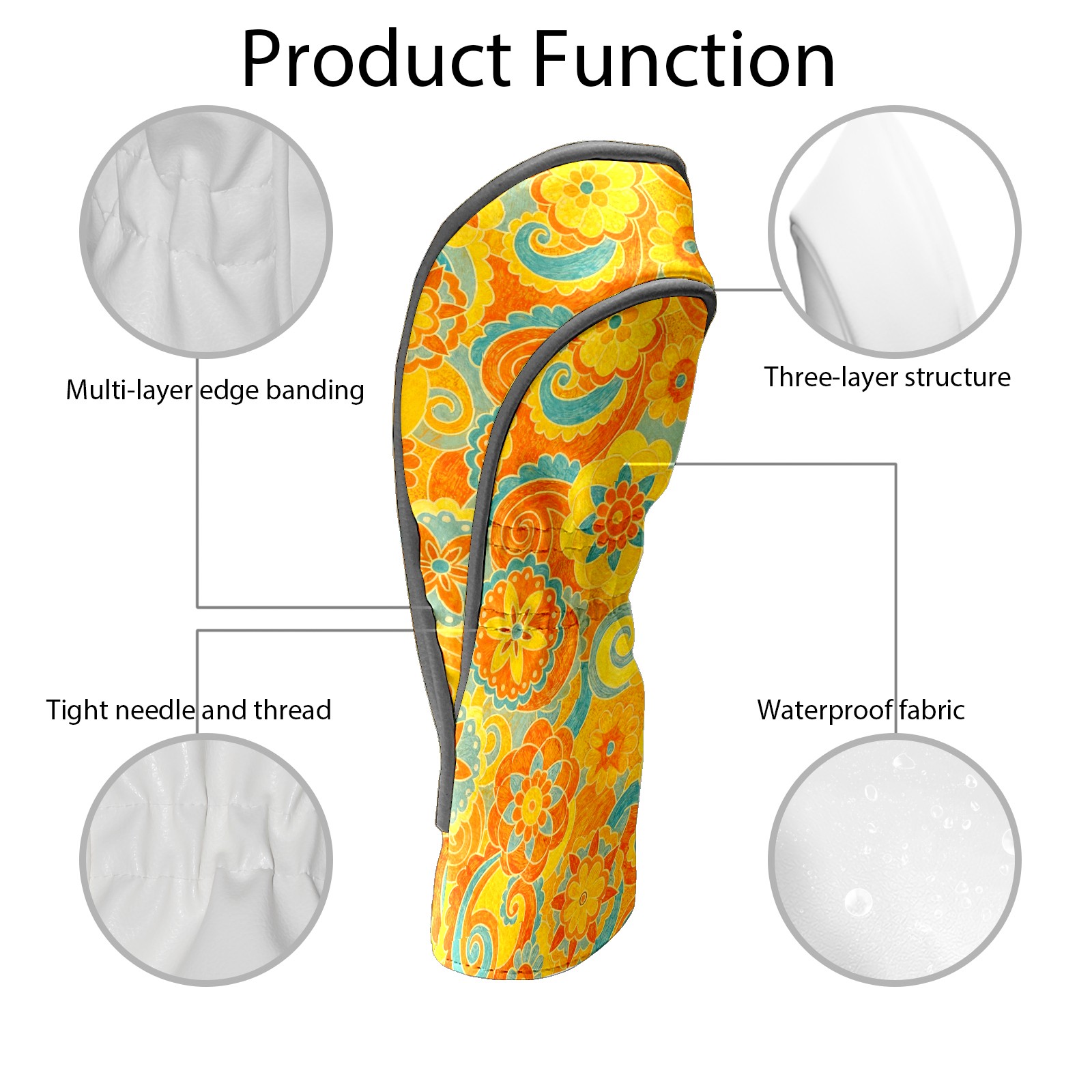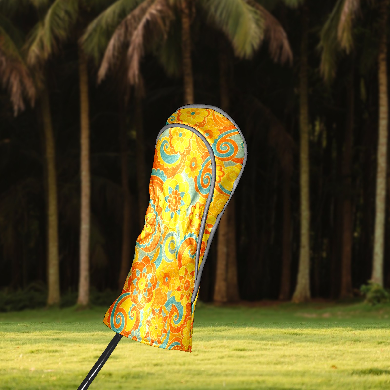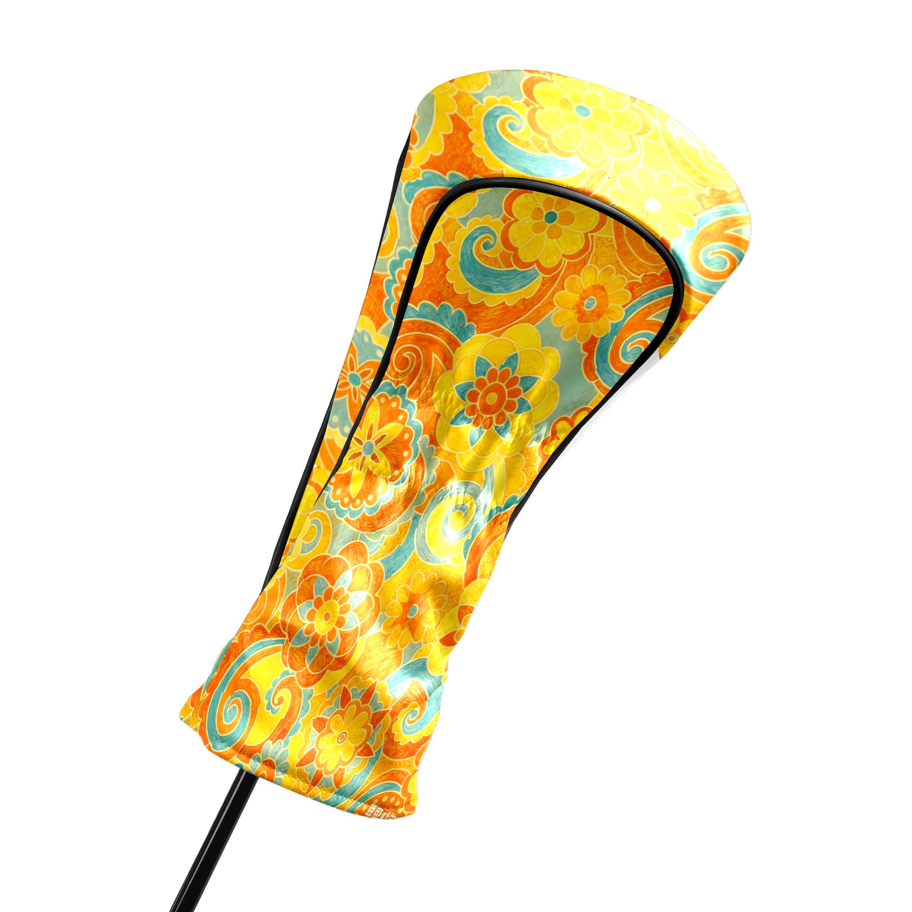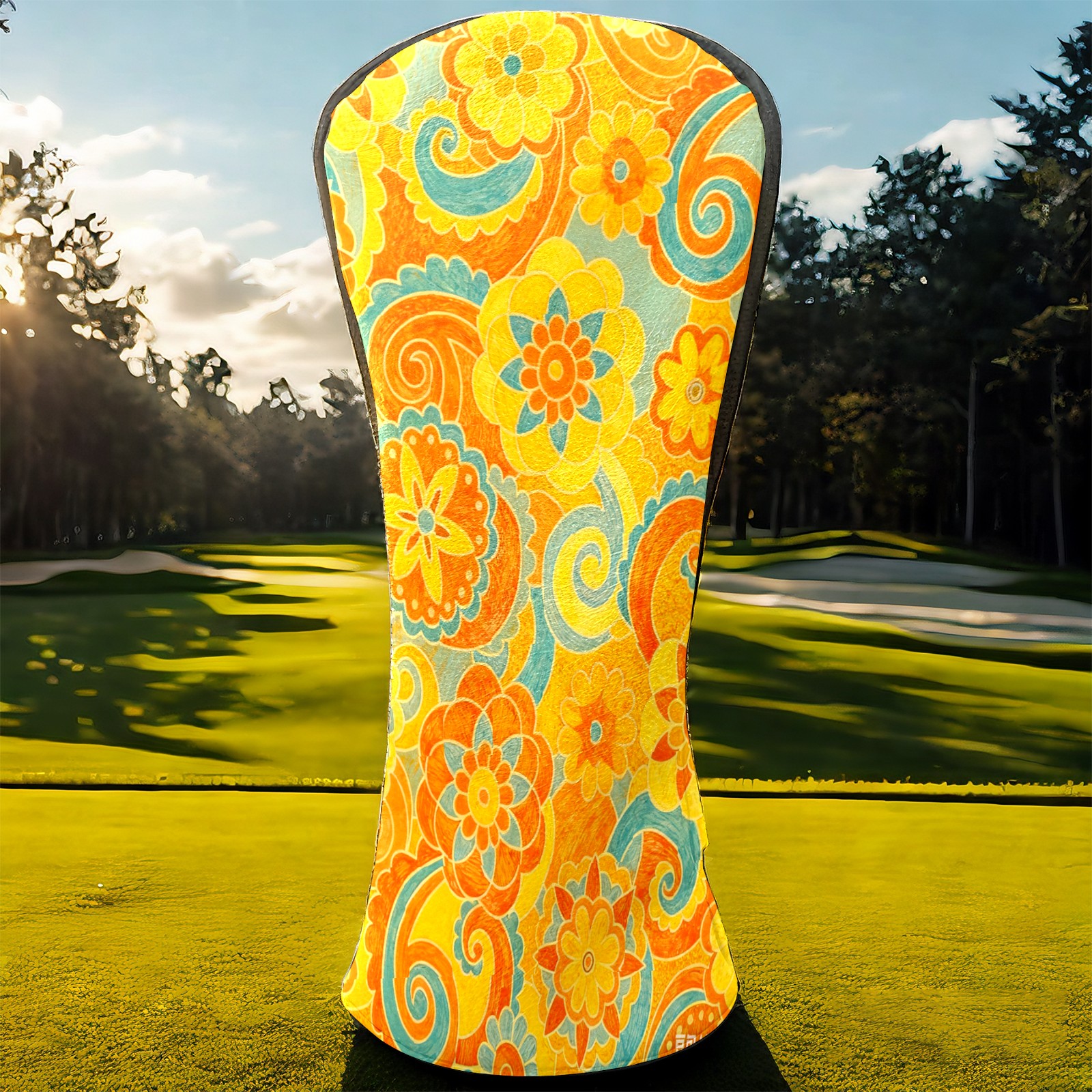 Golf Headcovers Fits Driver Hybrid Fairway 3/8 Wood, Waterproof PU Leather Golf Club Protector, Ideal Sports Accessories & Golfer Gift Orange Flower