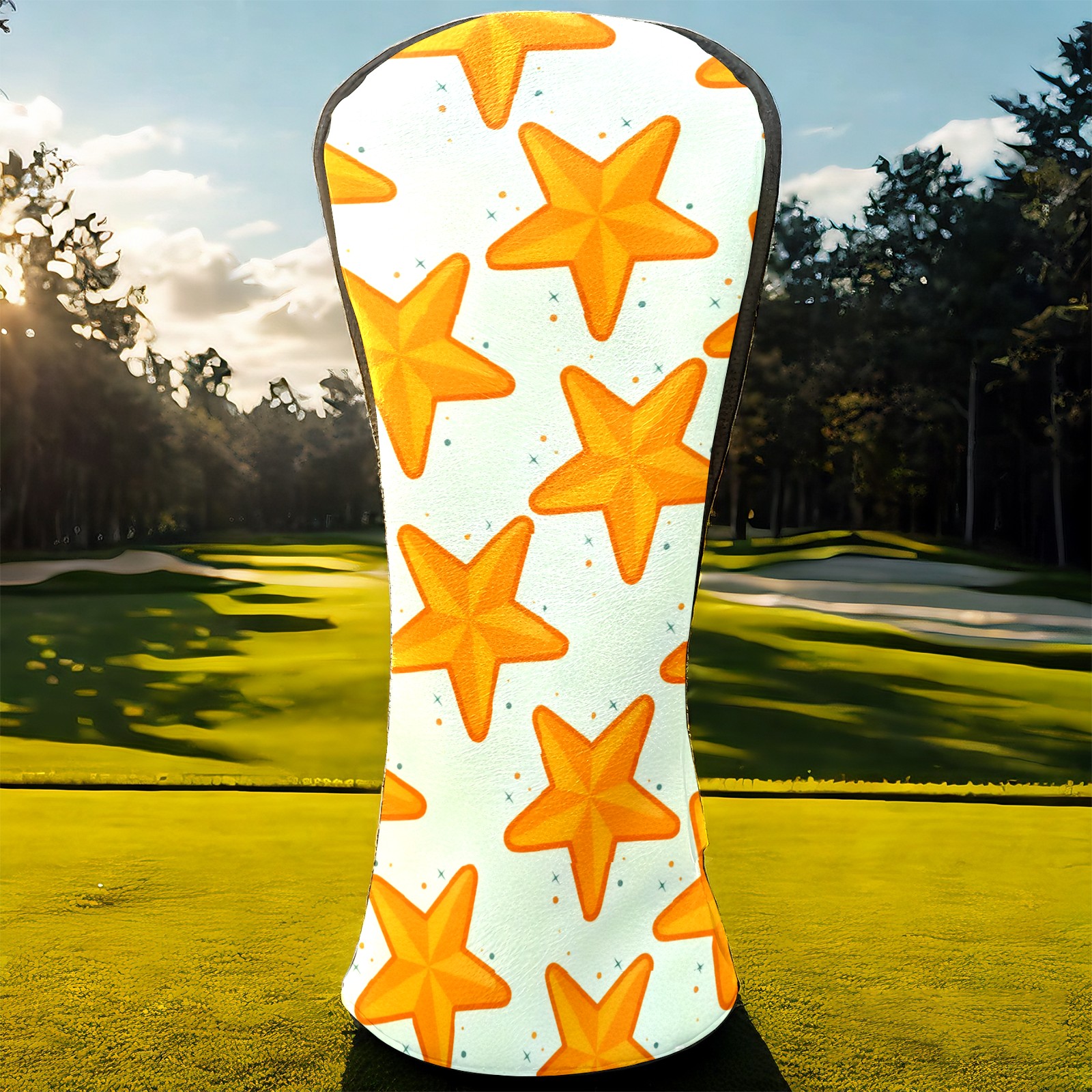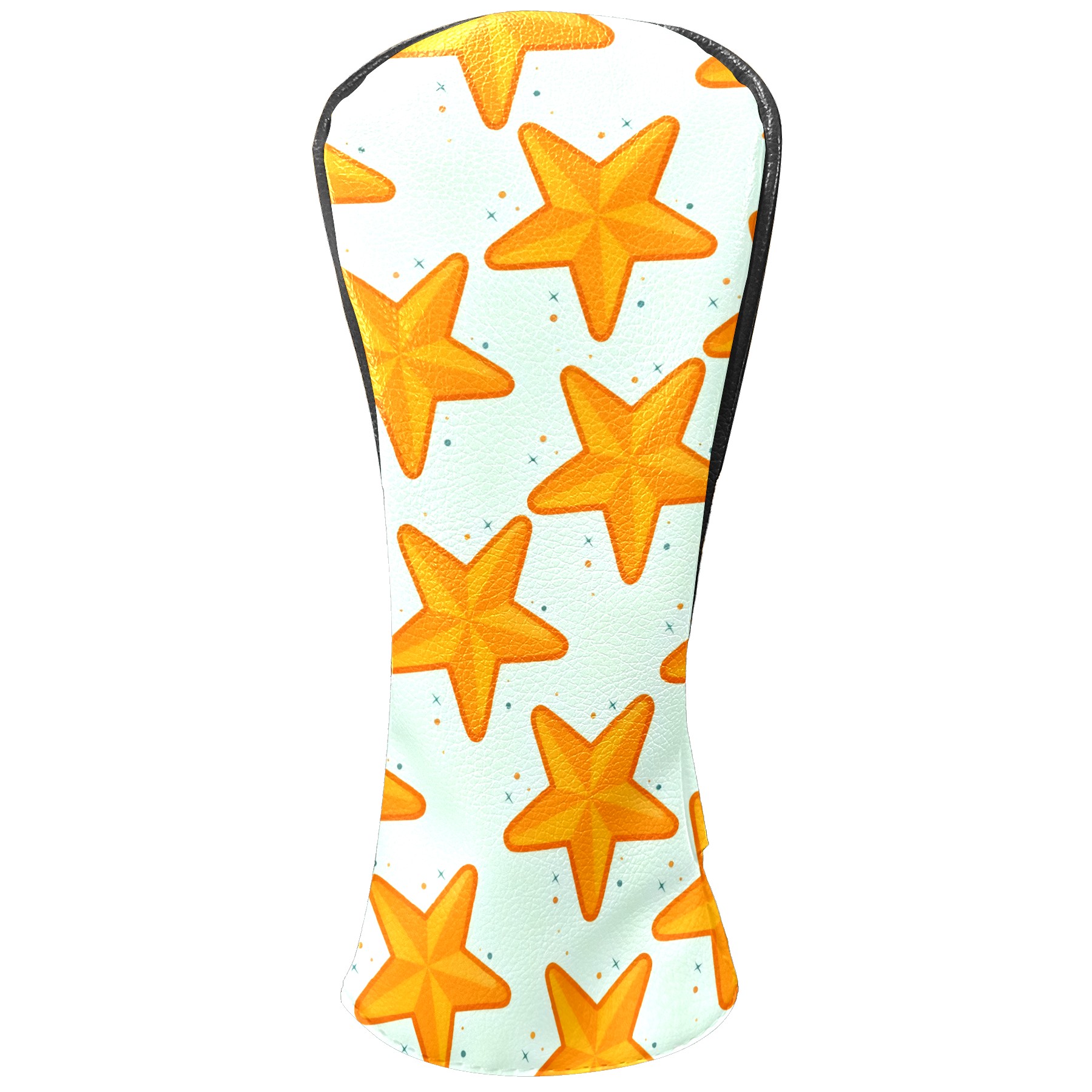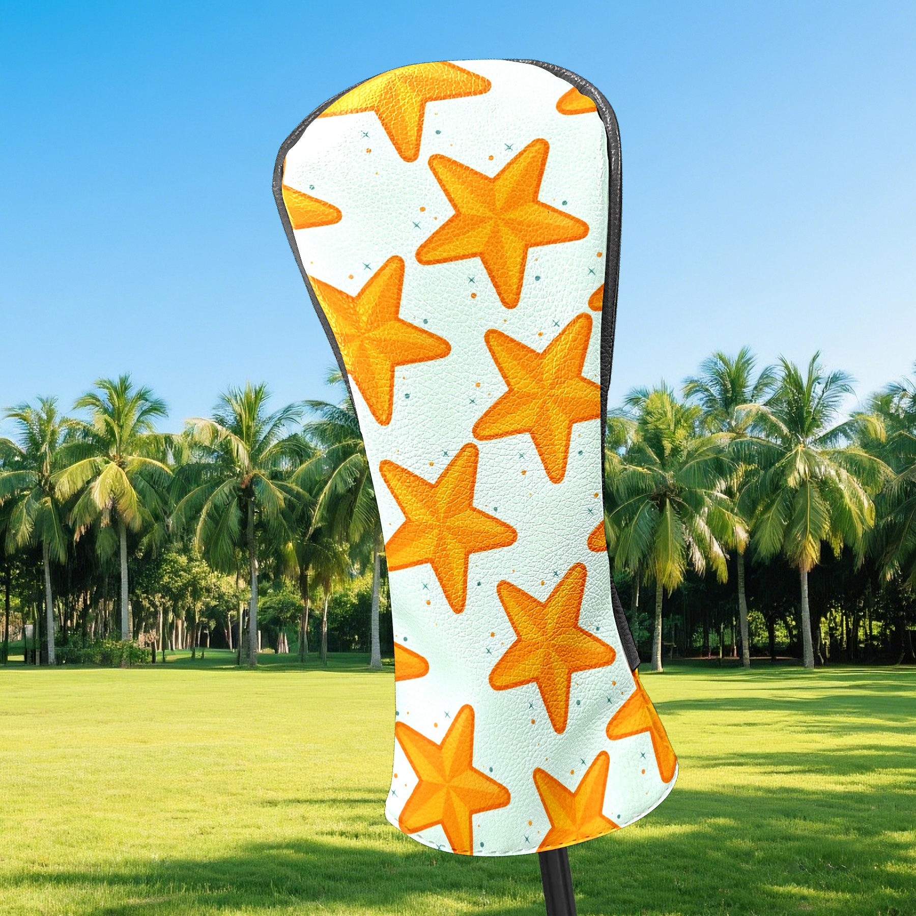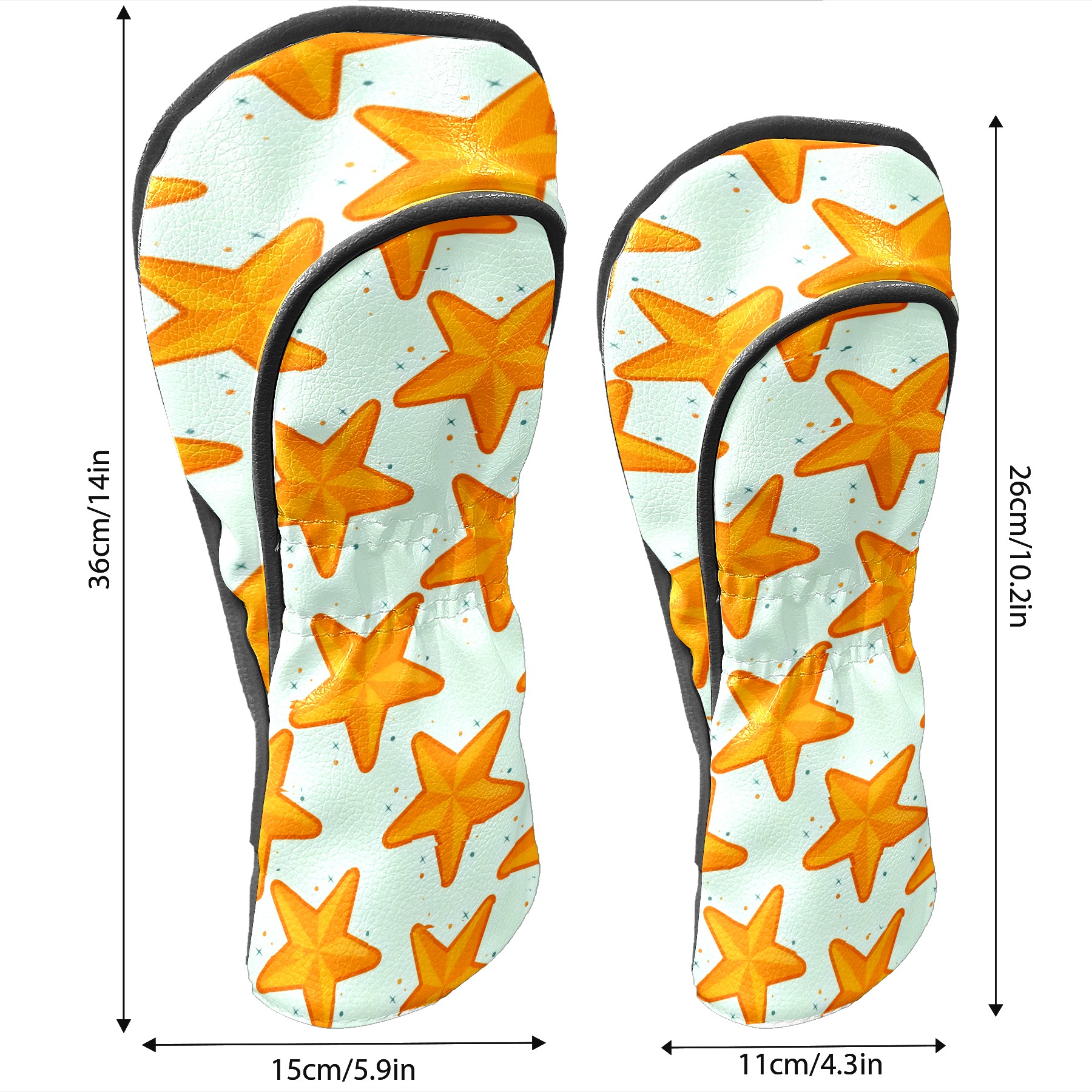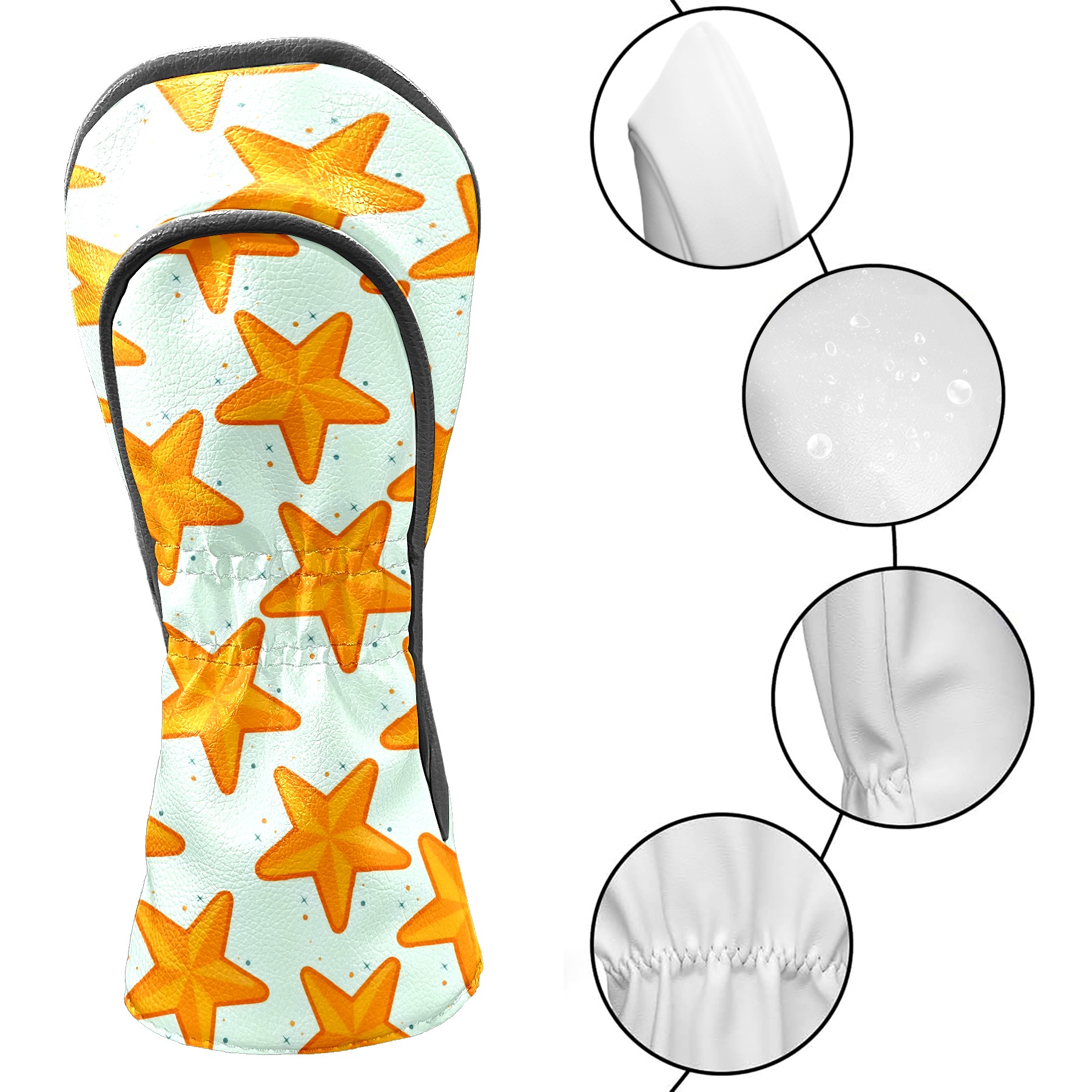 Golf Headcovers Fits Driver Hybrid Fairway 3/8 Wood, Waterproof PU Leather Golf Club Protector, Ideal Sports Accessories & Golfer Gift Orange Starfish