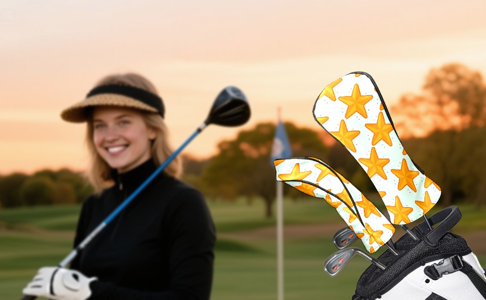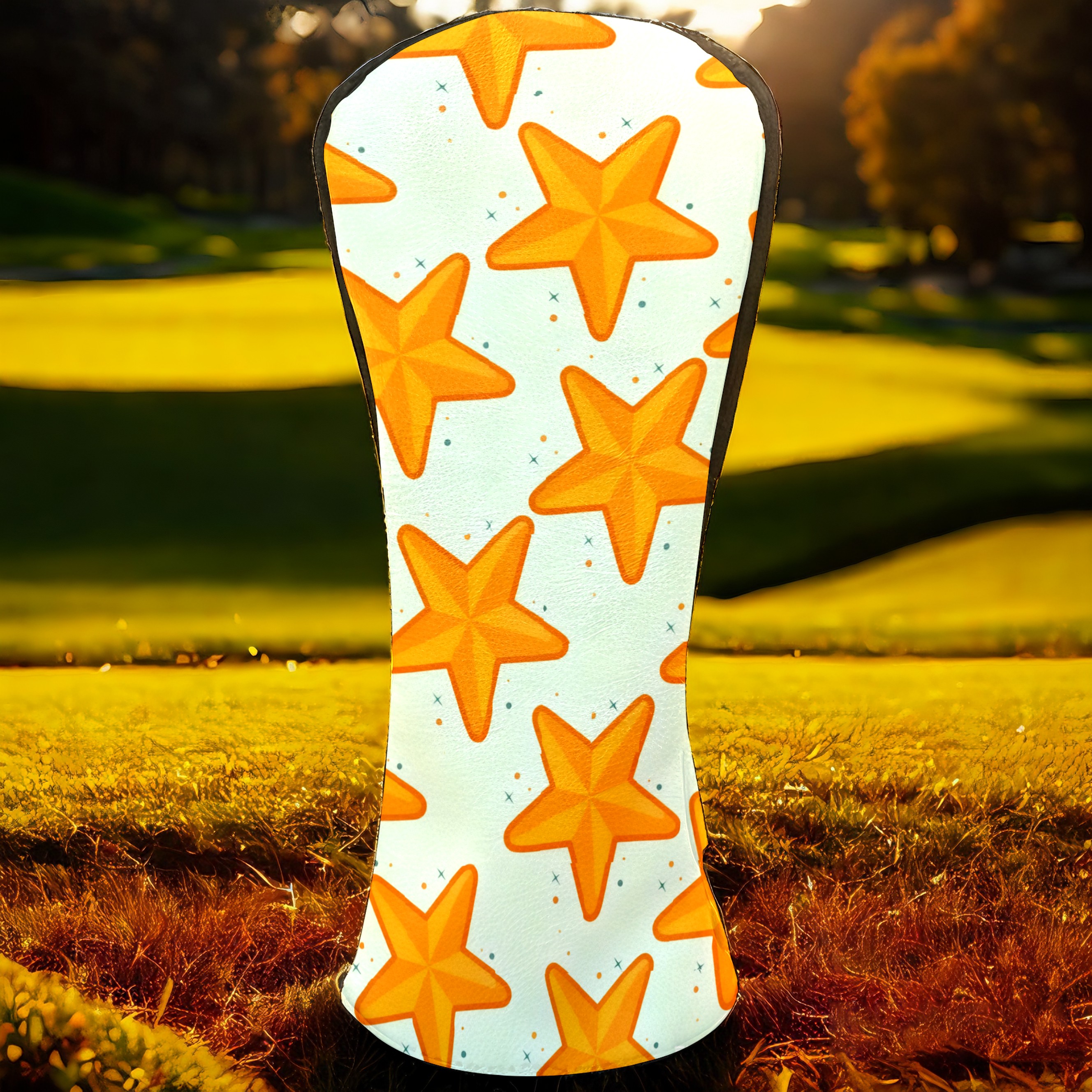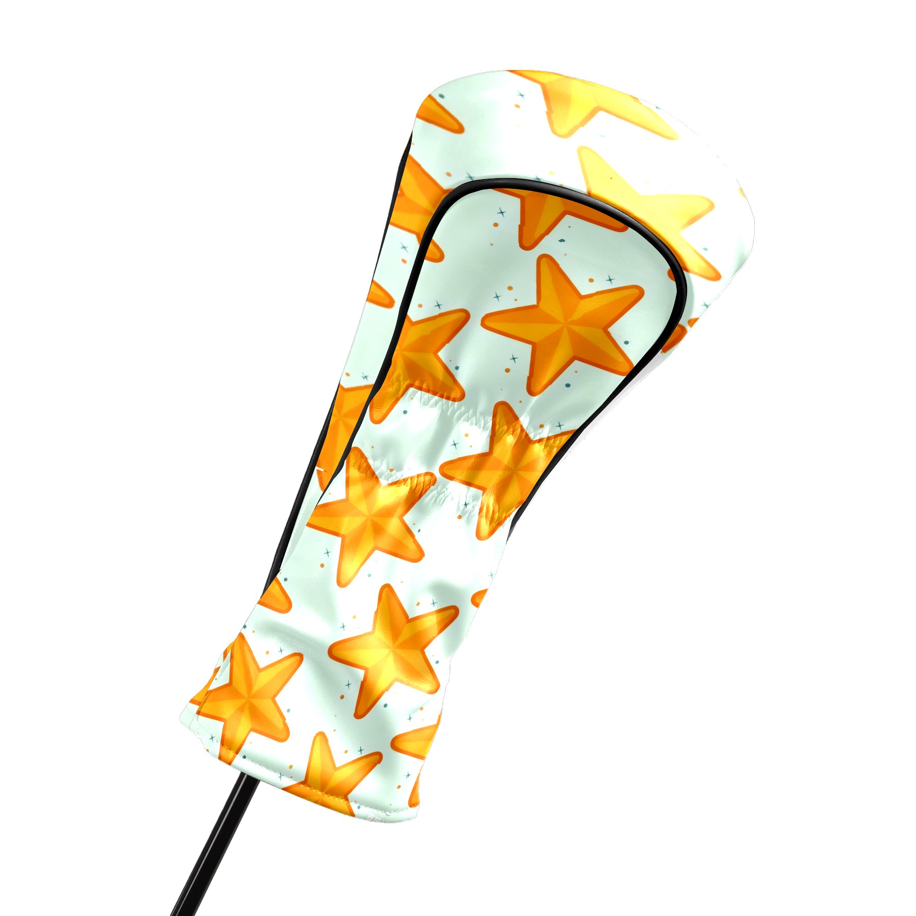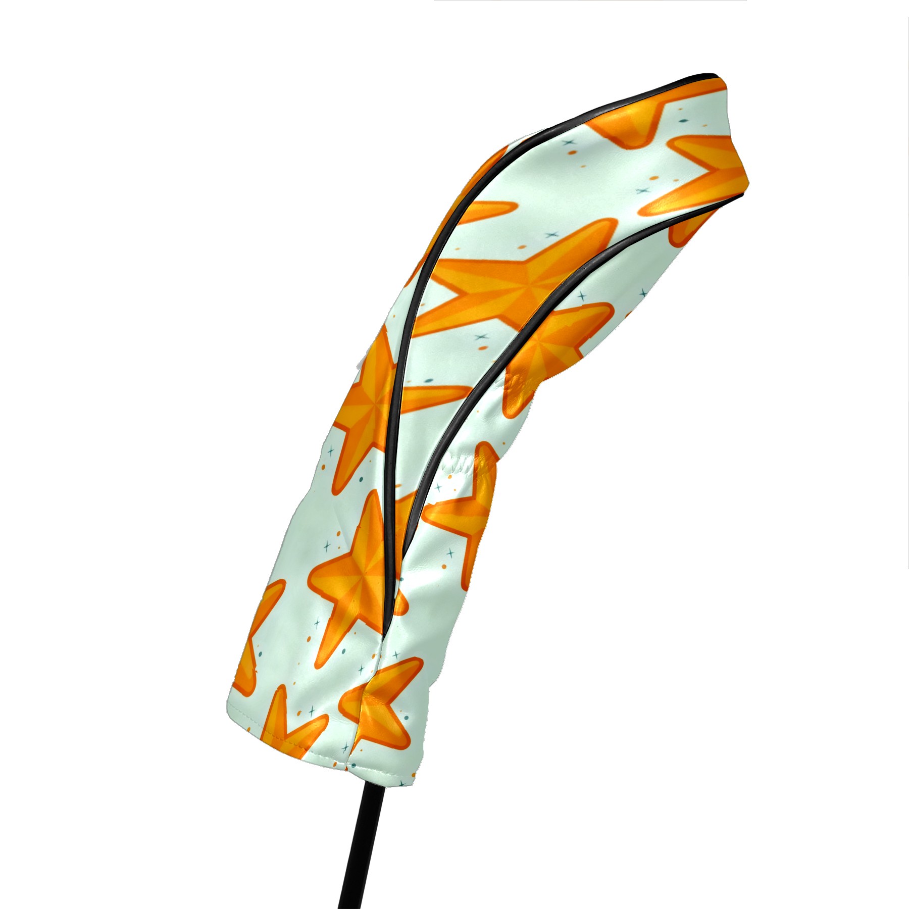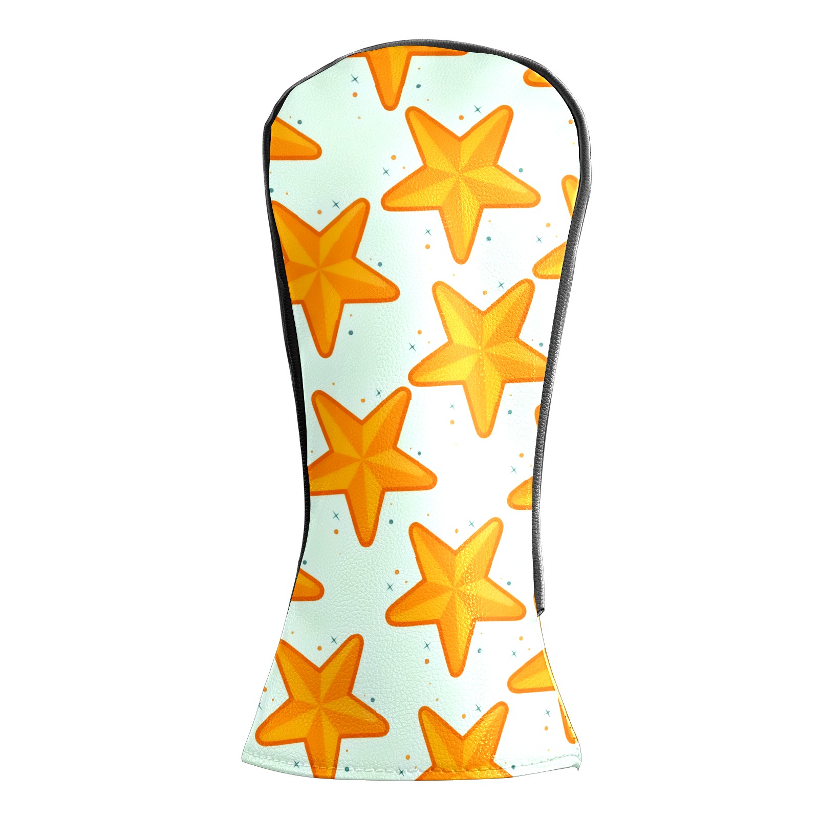 Golf Headcovers Fits Driver Hybrid Fairway 3/8 Wood, Waterproof PU Leather Golf Club Protector, Ideal Sports Accessories & Golfer Gift Orange Starfish