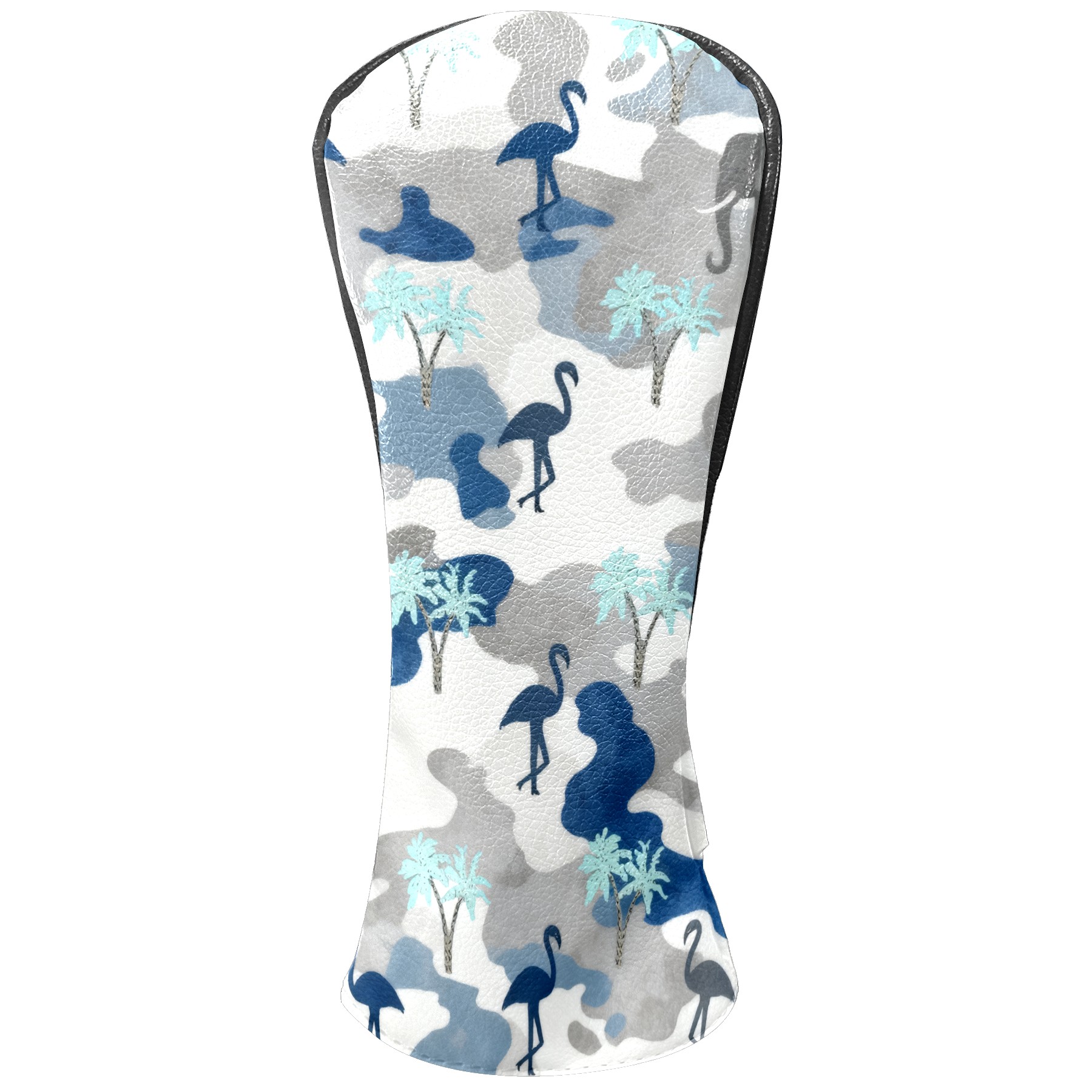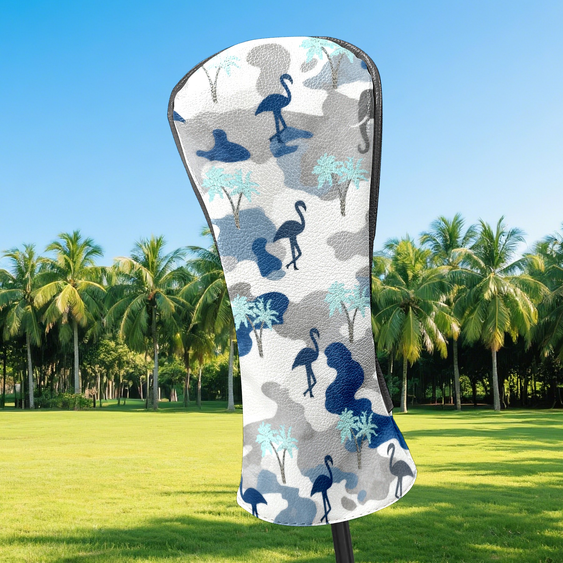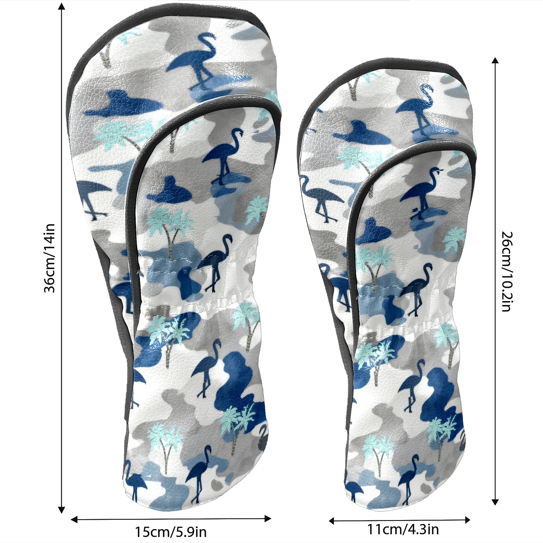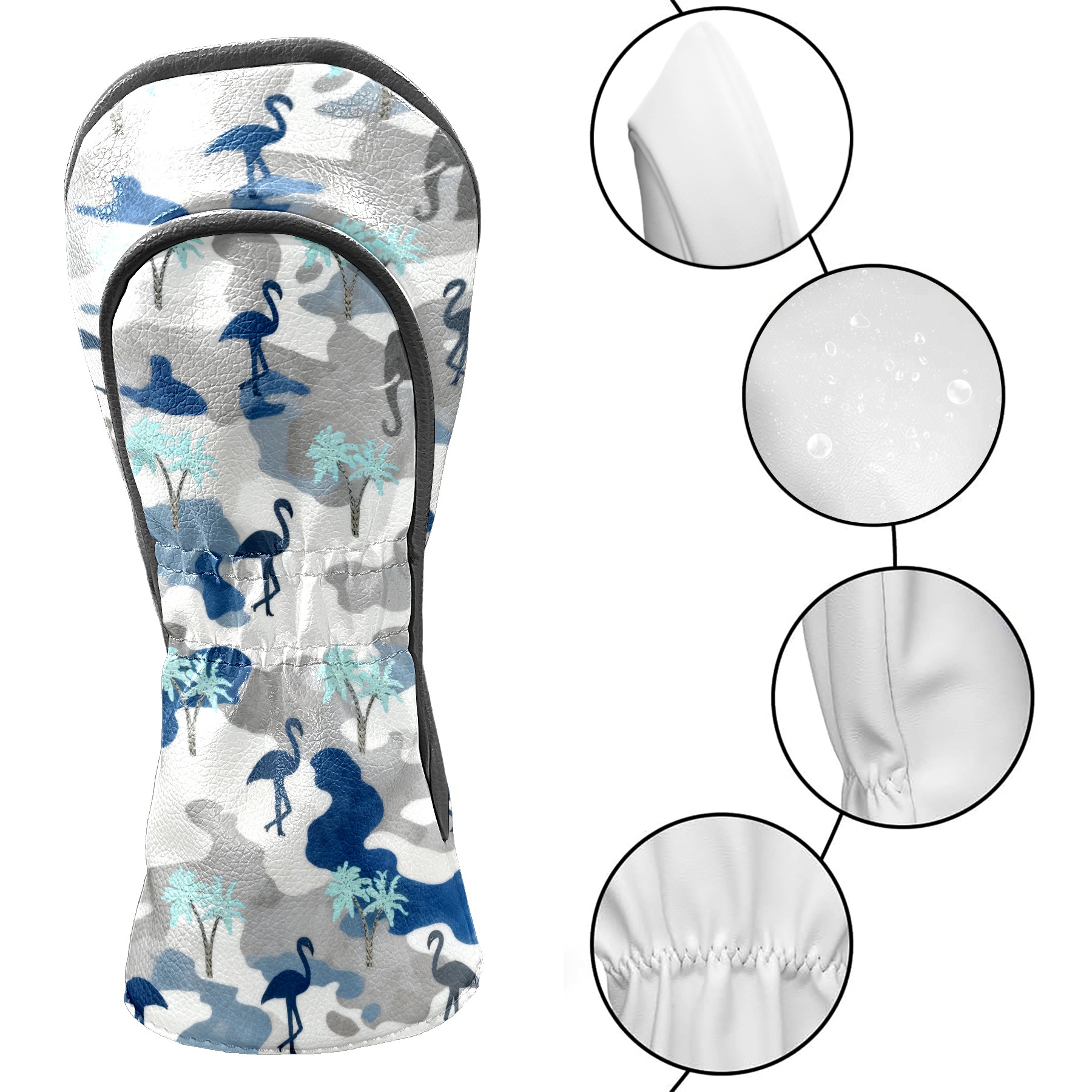 Golf Headcovers Fits Driver Hybrid Fairway 3/8 Wood, Waterproof PU Leather Golf Club Protector, Ideal Sports Accessories & Golfer Gift Blue Camouflage Flamingos