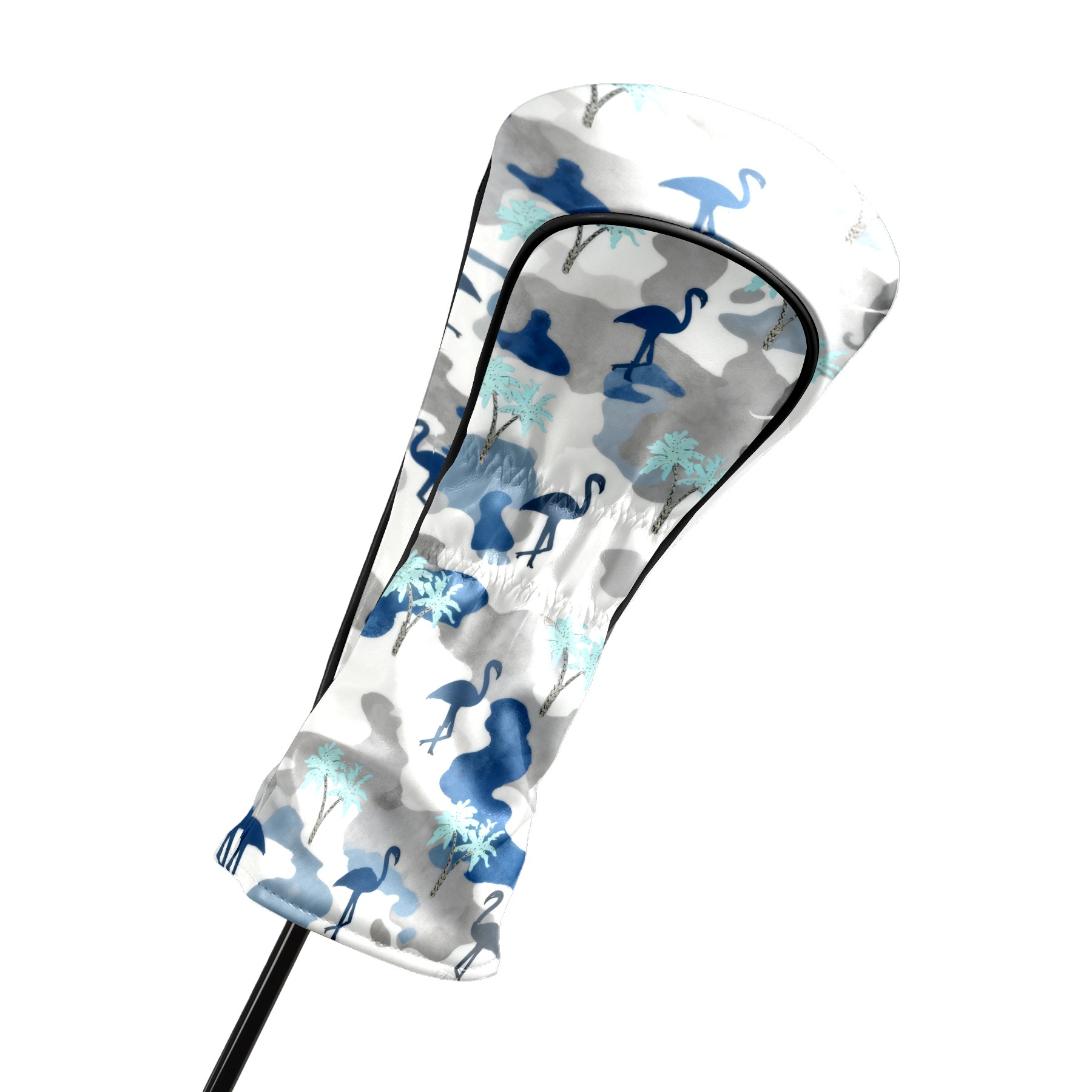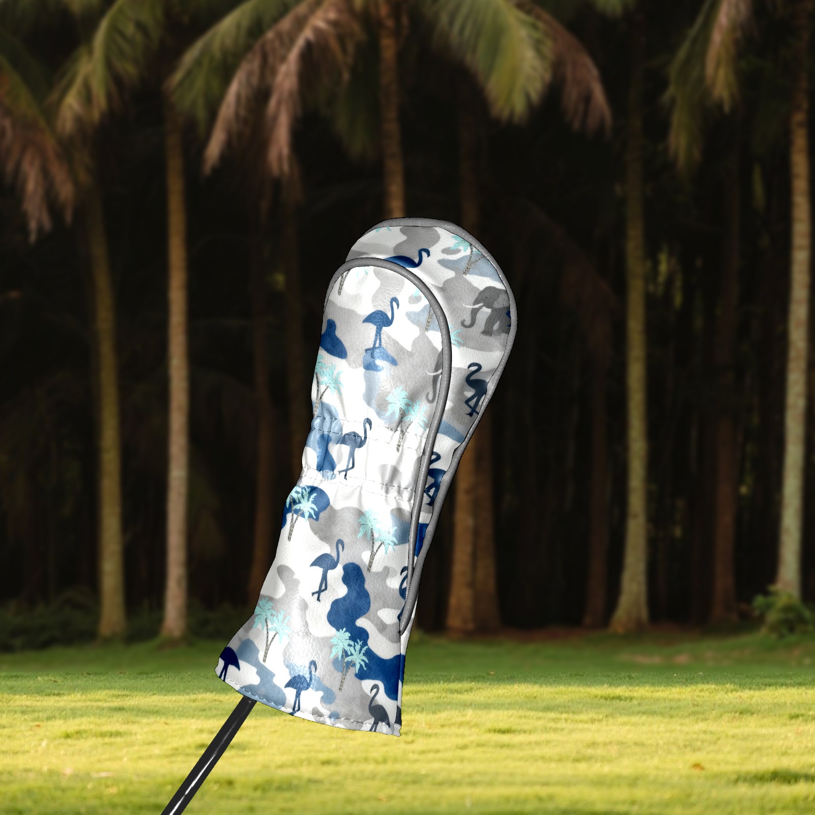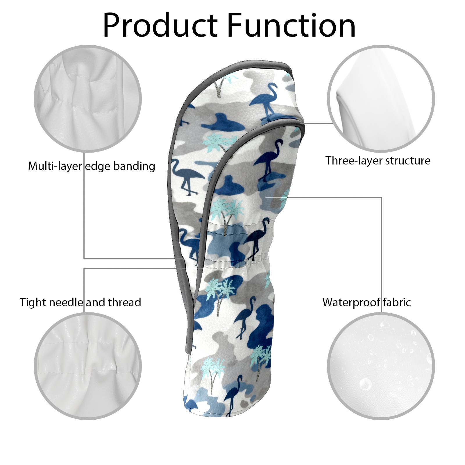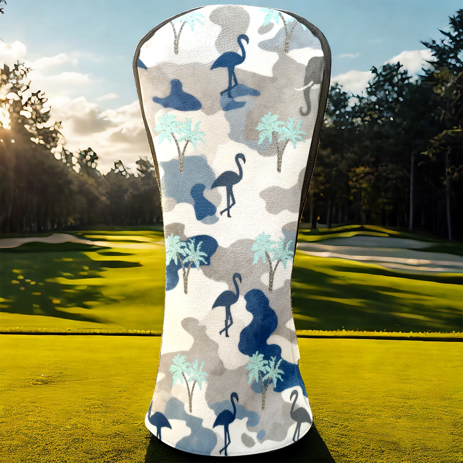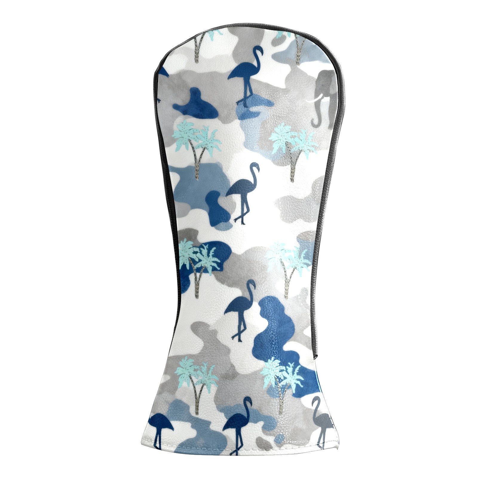 Golf Headcovers Fits Driver Hybrid Fairway 3/8 Wood, Waterproof PU Leather Golf Club Protector, Ideal Sports Accessories & Golfer Gift Blue Camouflage Flamingos