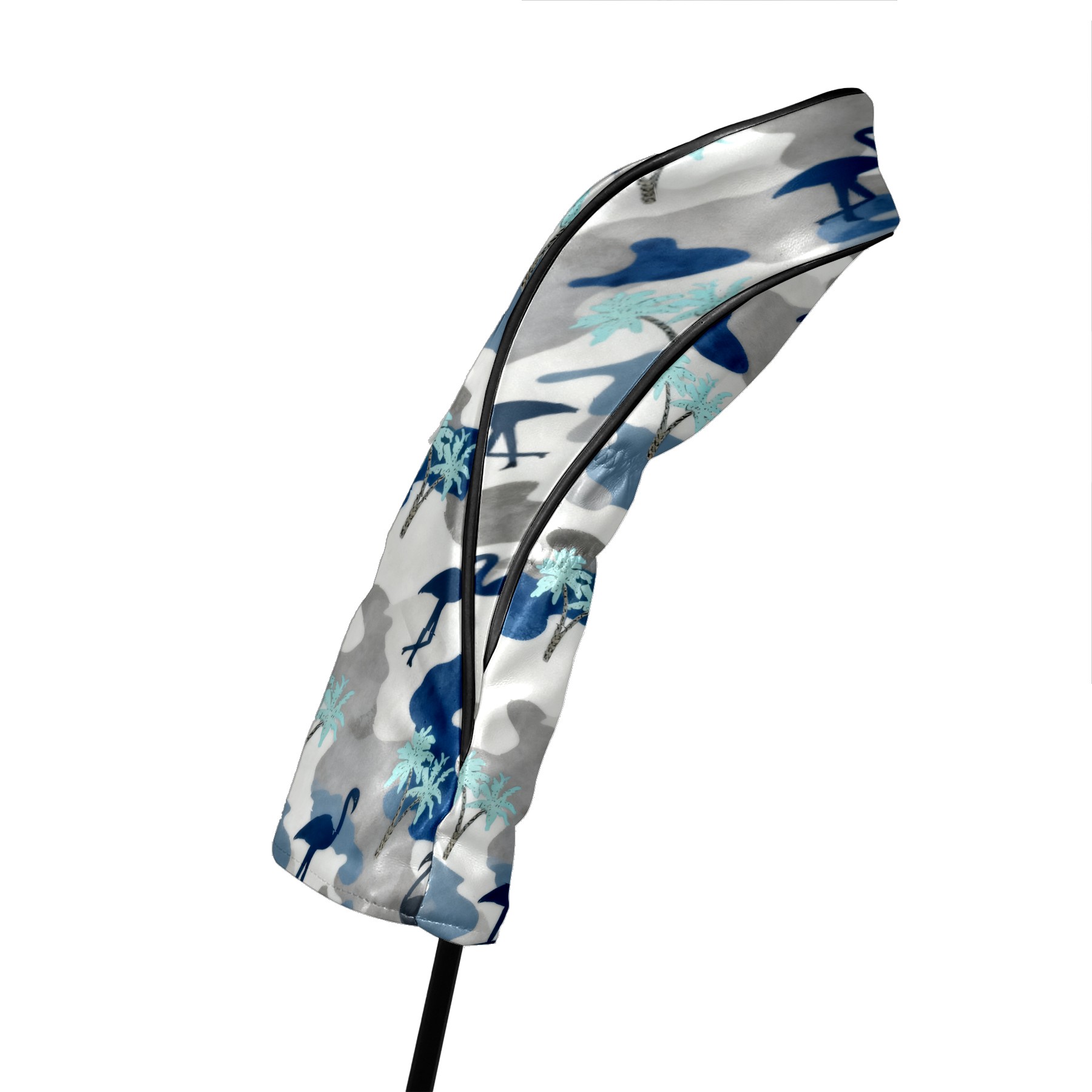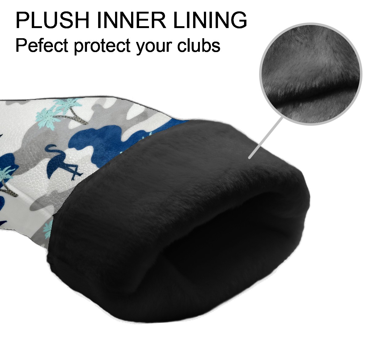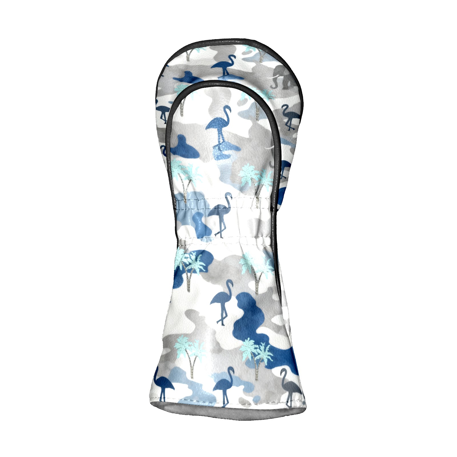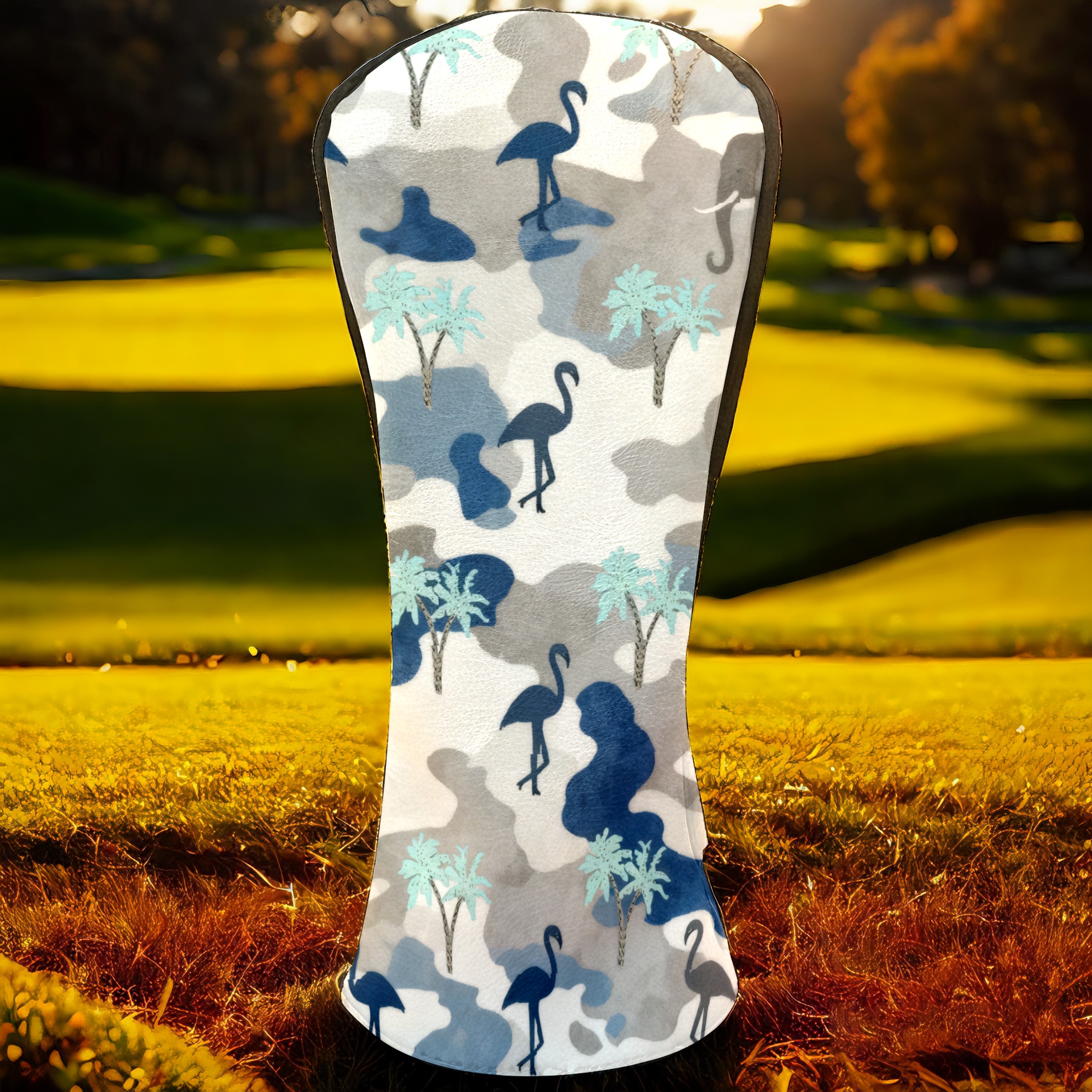 Golf Headcovers Fits Driver Hybrid Fairway 3/8 Wood, Waterproof PU Leather Golf Club Protector, Ideal Sports Accessories & Golfer Gift Blue Camouflage Flamingos