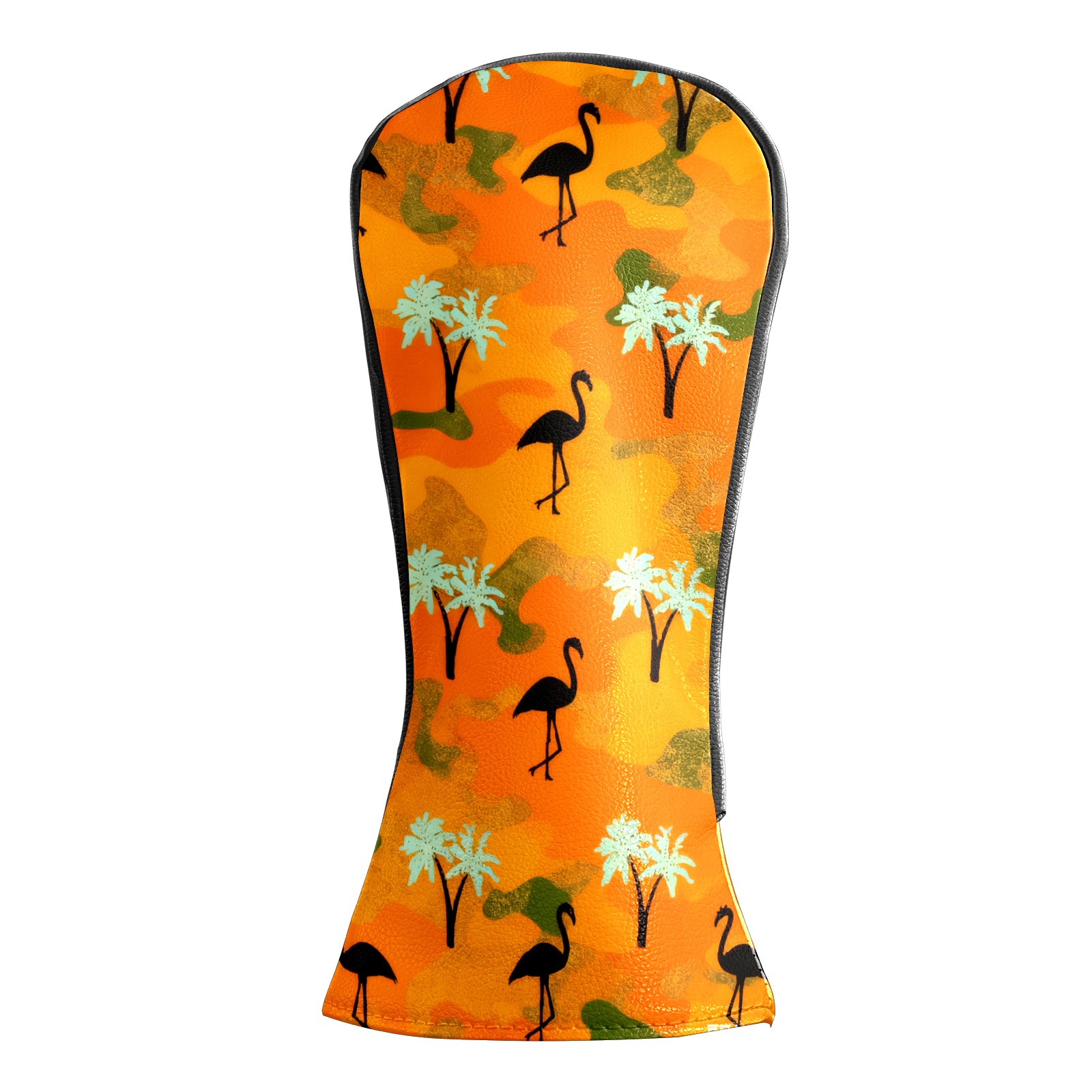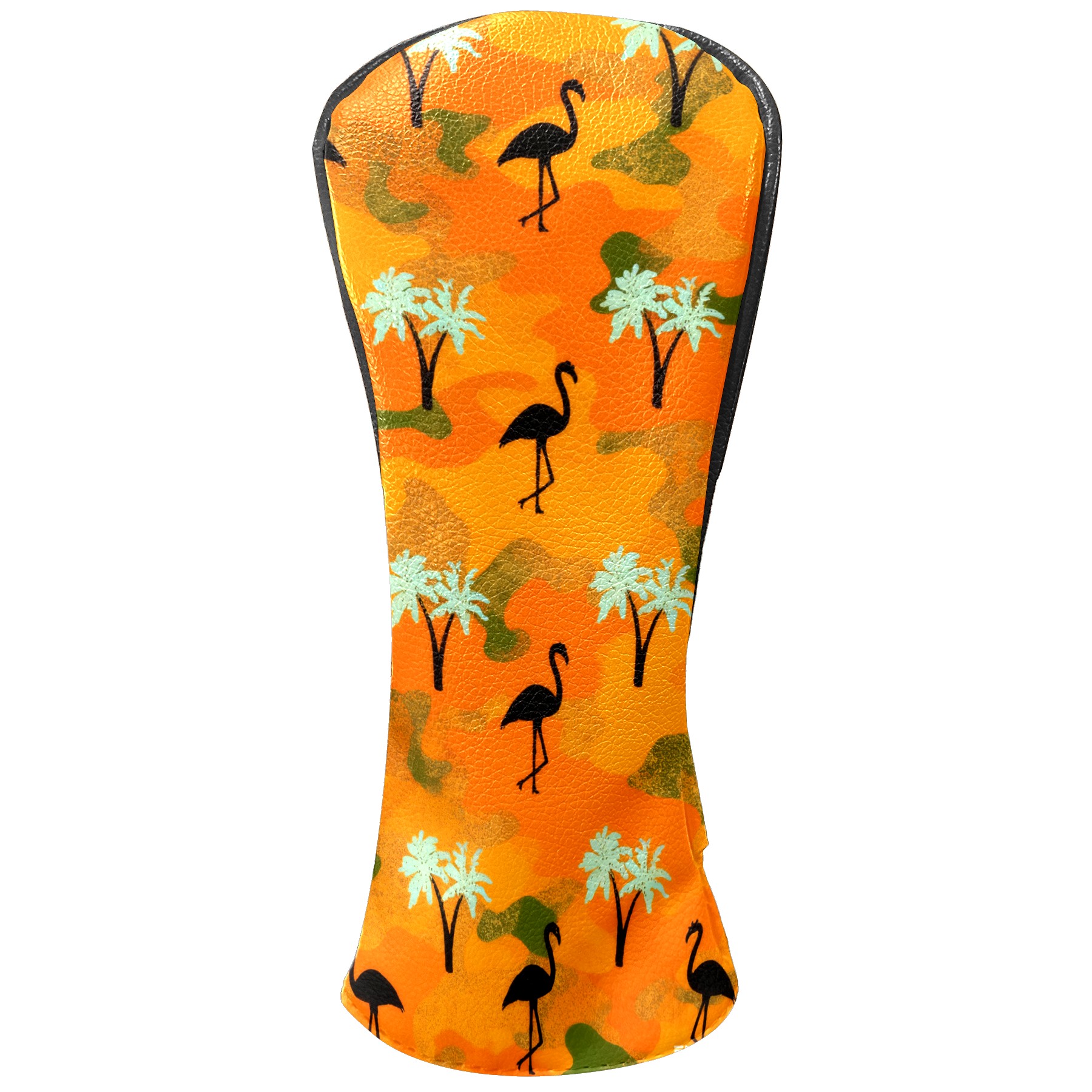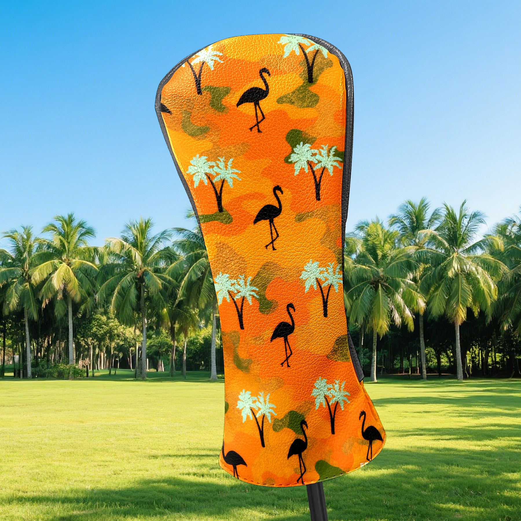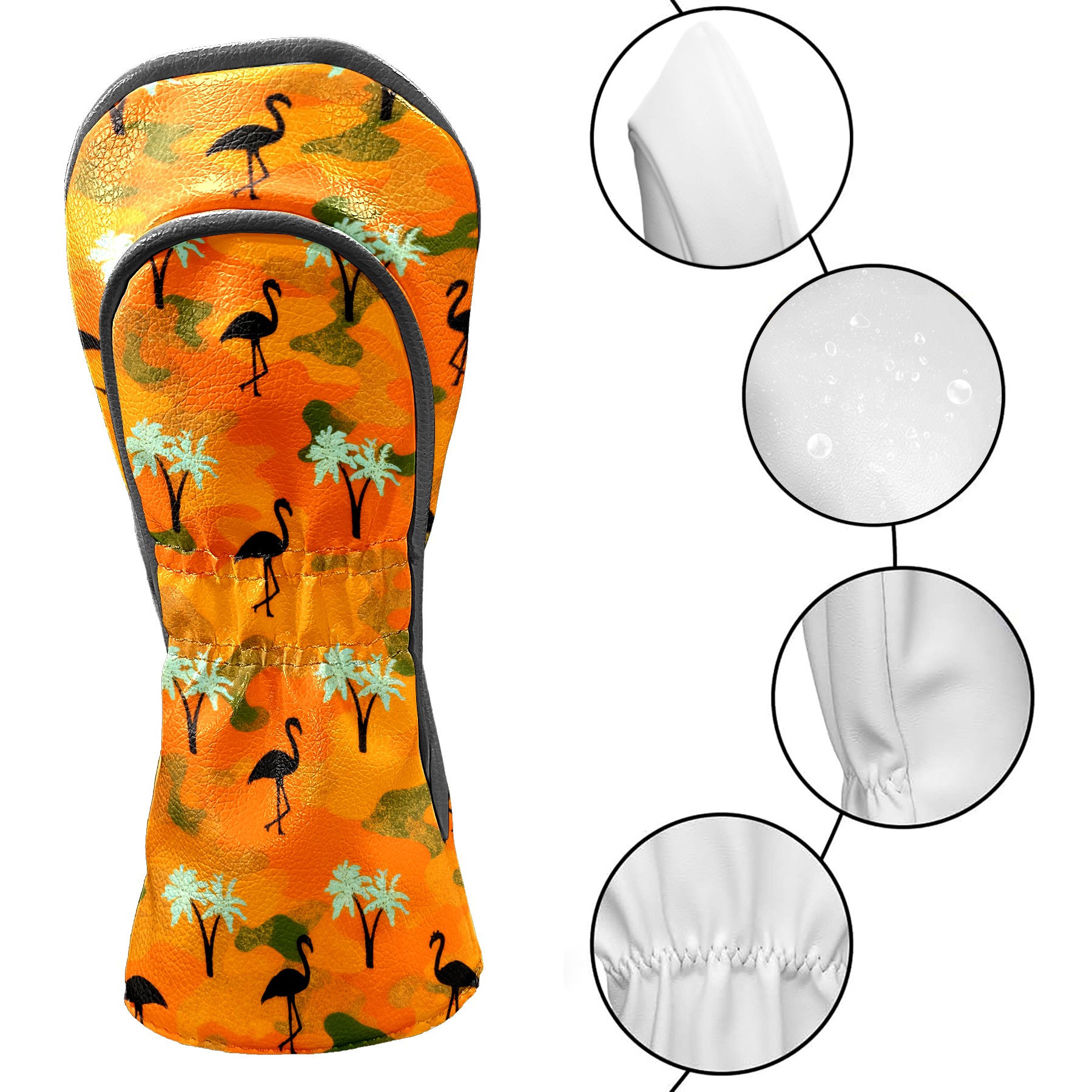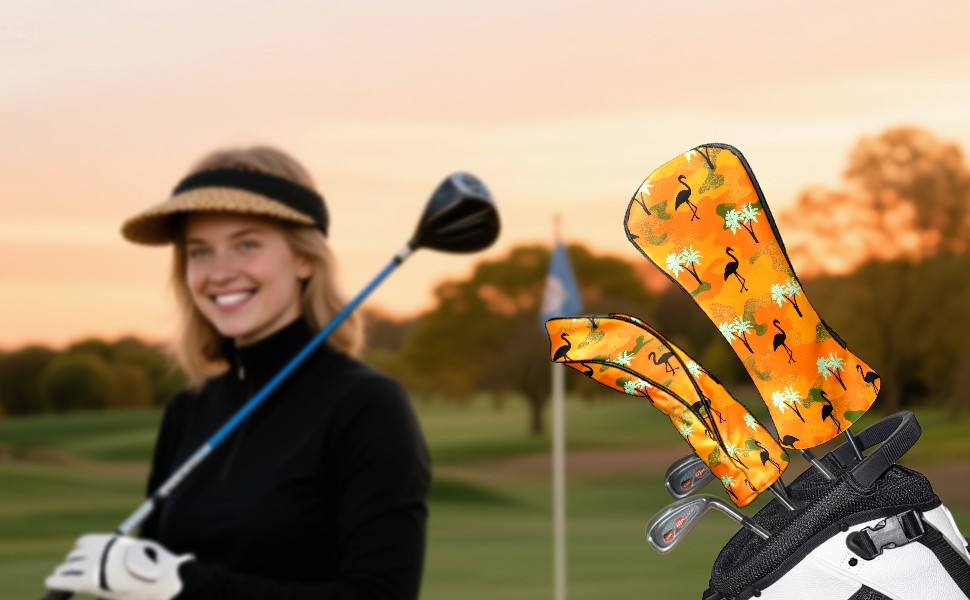 Golf Headcovers Fits Driver Hybrid Fairway 3/8 Wood, Waterproof PU Leather Golf Club Protector, Ideal Sports Accessories & Golfer Gift Orange Camouflage Flamingos