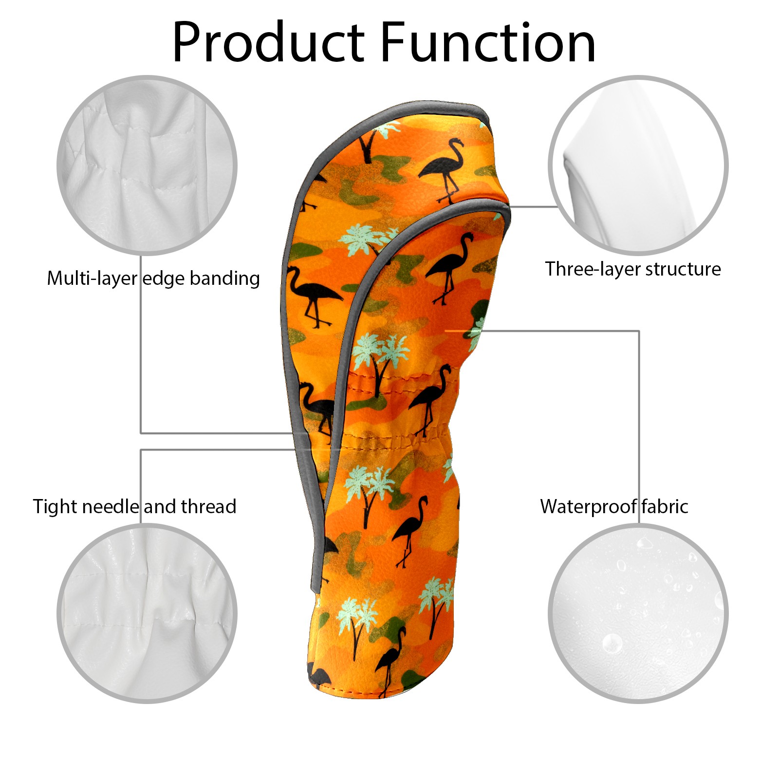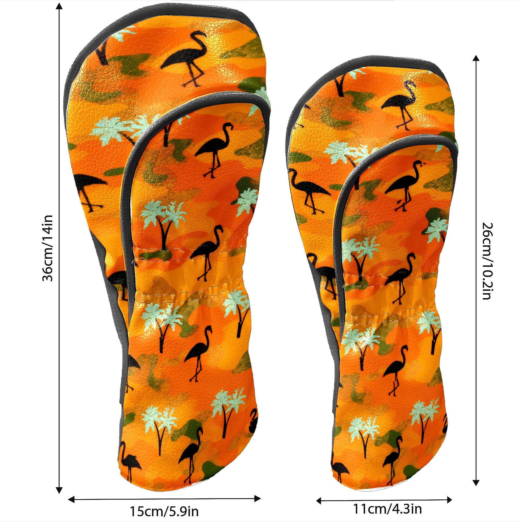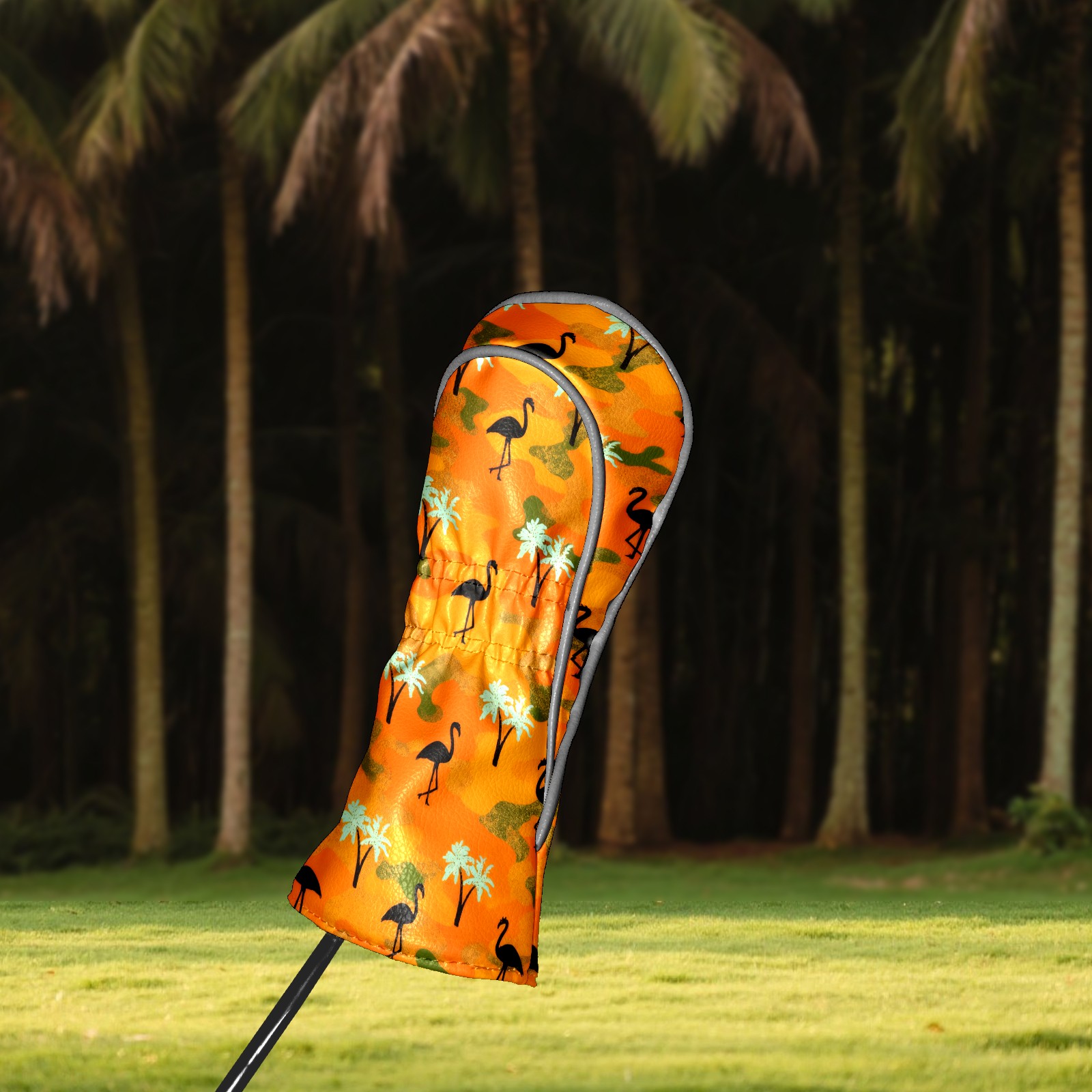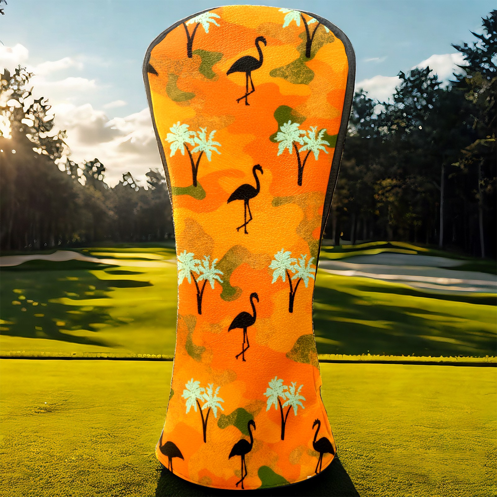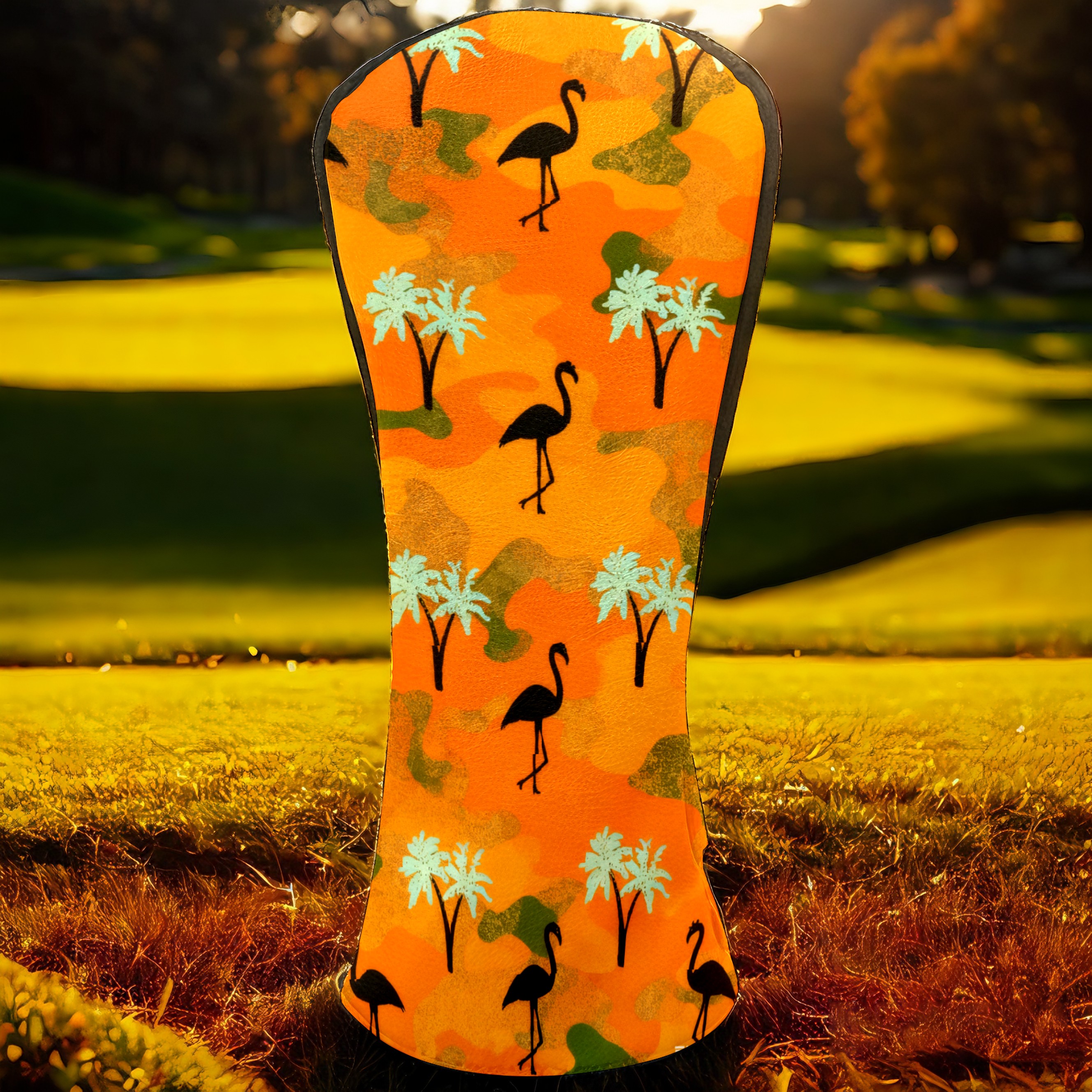 Golf Headcovers Fits Driver Hybrid Fairway 3/8 Wood, Waterproof PU Leather Golf Club Protector, Ideal Sports Accessories & Golfer Gift Orange Camouflage Flamingos