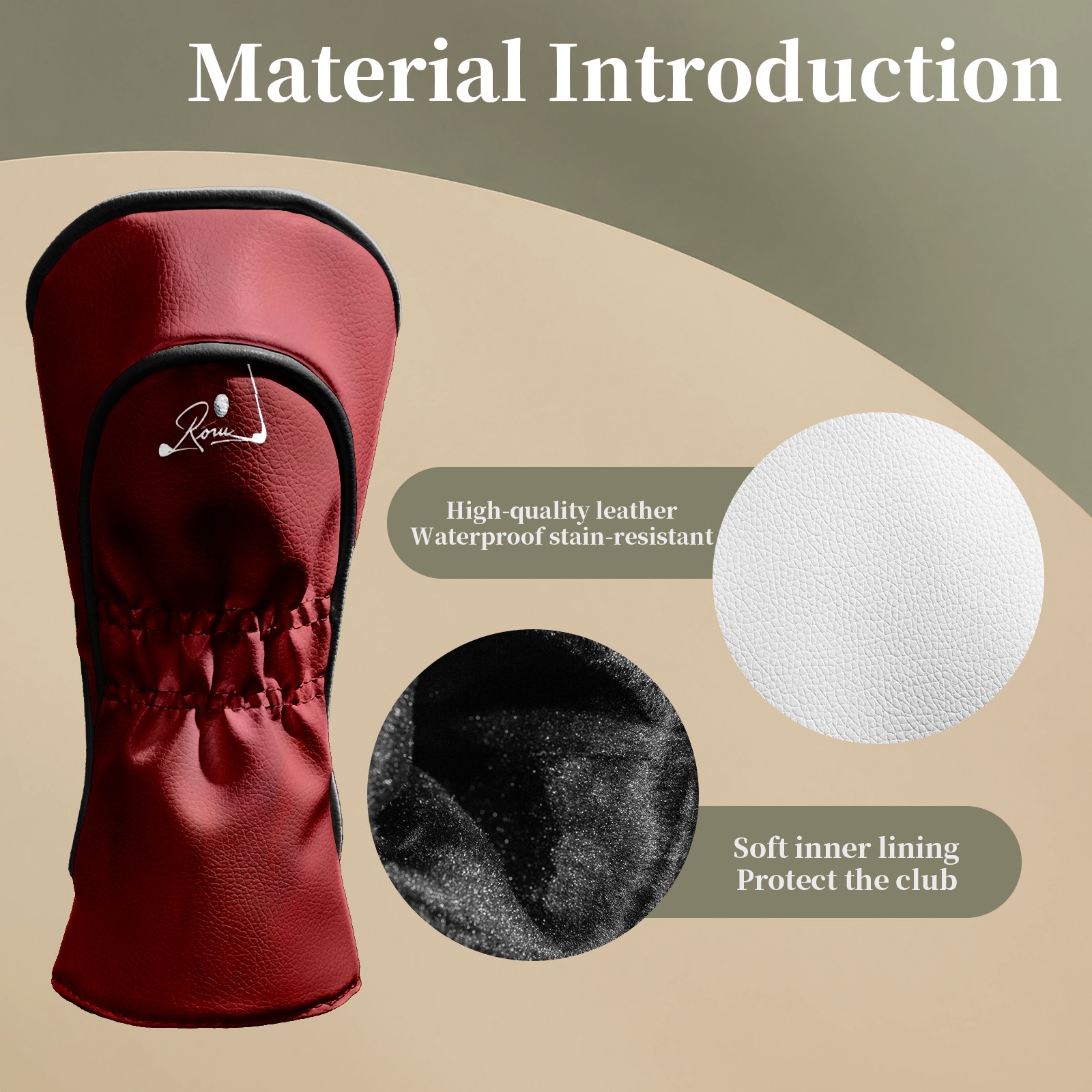 Golf Club Head Covers Roy Waterproof Leather Golf Head Covers for Men Women Driver Head Cover Fairway Headcover for Golf Lovers