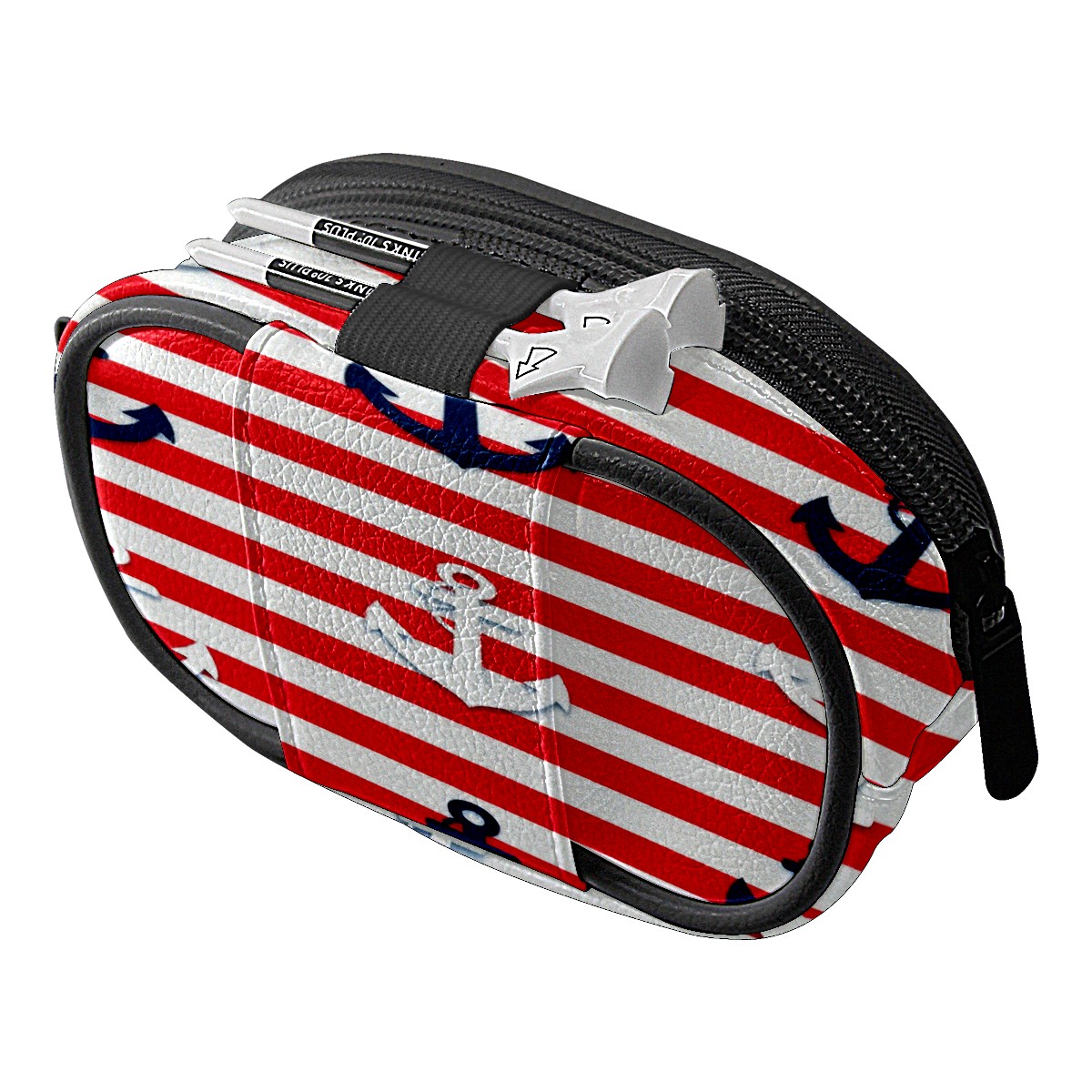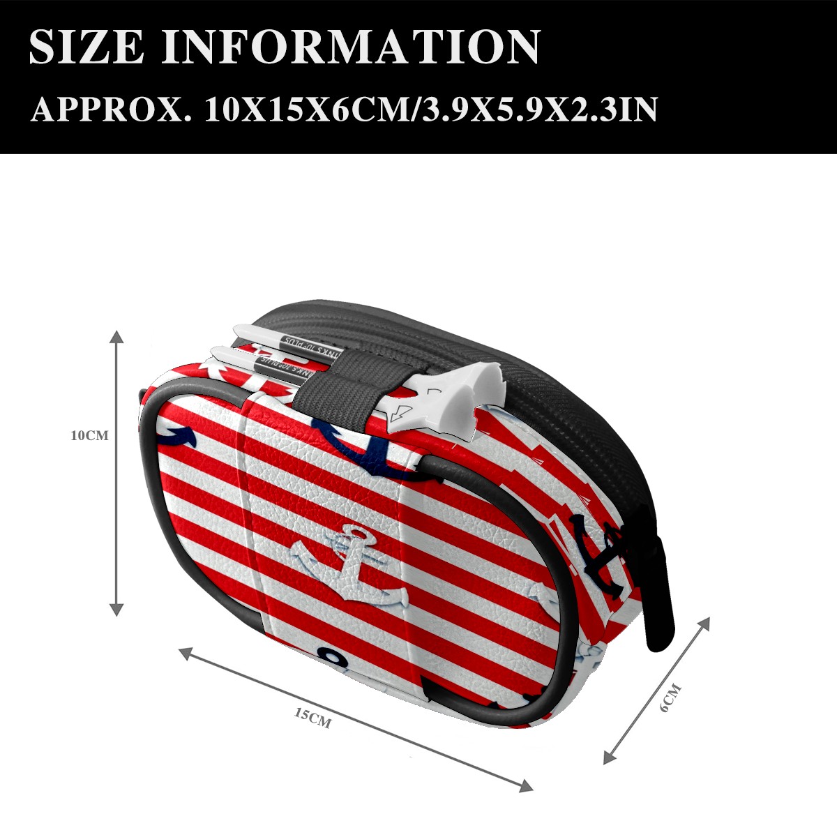 PU Leather Golf Waist Bag - Portable Zipper Pouch for Man Women, Mini Coin Purse Holds Credit Card/Bills/Key/Headset/Lipstick & Ideal Gift Red And White Striped Anchor Pattern