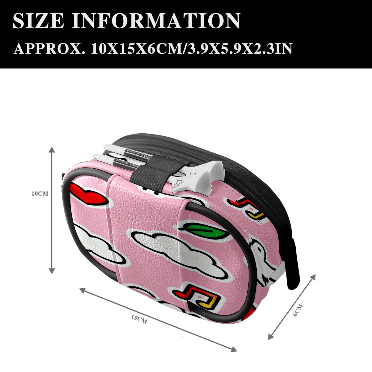 PU Leather Golf Waist Bag - Portable Zipper Pouch for Man Women, Mini Coin Purse Holds Credit Card/Bills/Key/Headset/Lipstick & Ideal Gift Pink Background Cartoon Pattern