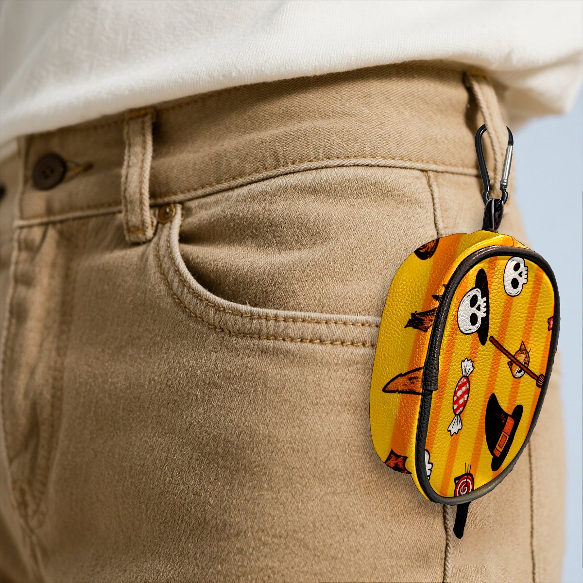 PU Leather Golf Waist Bag - Portable Zipper Pouch for Man Women, Mini Coin Purse Holds Credit Card/Bills/Key/Headset/Lipstick & Ideal Gift Skull In Hat