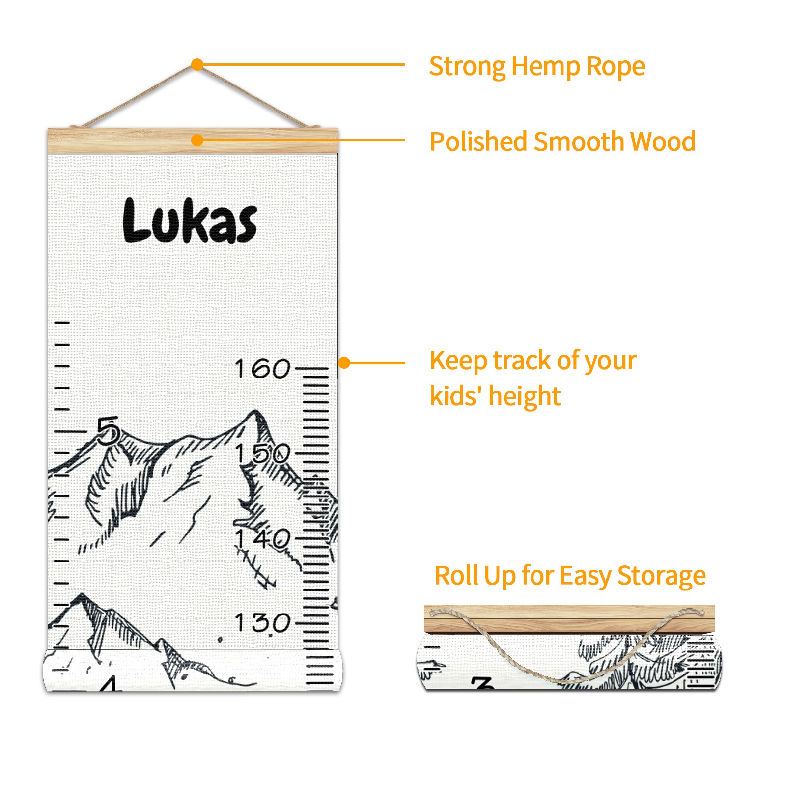 • <p><b>Features:</b></p> <p>Rope for Hanging</p> <p>Material: Linen + Wood</p> <p>Dimensions: 13.4x56 inches</p> <p>Package Included: 1 * Baby Growth Chart</p> <p><b>Baby height growth chart can be used anywhere</b></p> <p>Ideal for kids nursery decoration, kids bedroom, interior walls or windows, playroom, living room, homedecoration.Add name and make the growth chart special!</p> <p><b>Easy to fold and carry</b></p> <p>With rope at the top of the growth chart, it is easy to install and remove.You can fold it and unfold any time any where.</p> <p><b>Perfect Gift Idea for Kids</b></p> <p>Environmental and non-toxic for kids use, it must be a perfect gift for baby, kids, girls, and boys.This is a best choice for your friend who have kids or baby as a popular gift.</p> <p><b>Easy to read</b></p> <p>Measurement accrate with 2 scales, Centimeters and feet. The letters are big enough, very easy to read.</p> <p><b>60cm(23.6inch) Over Ground Design</b></p> <p>Not only can protect from dust and other damage, but also will not interfere in floor cleaning.</p>