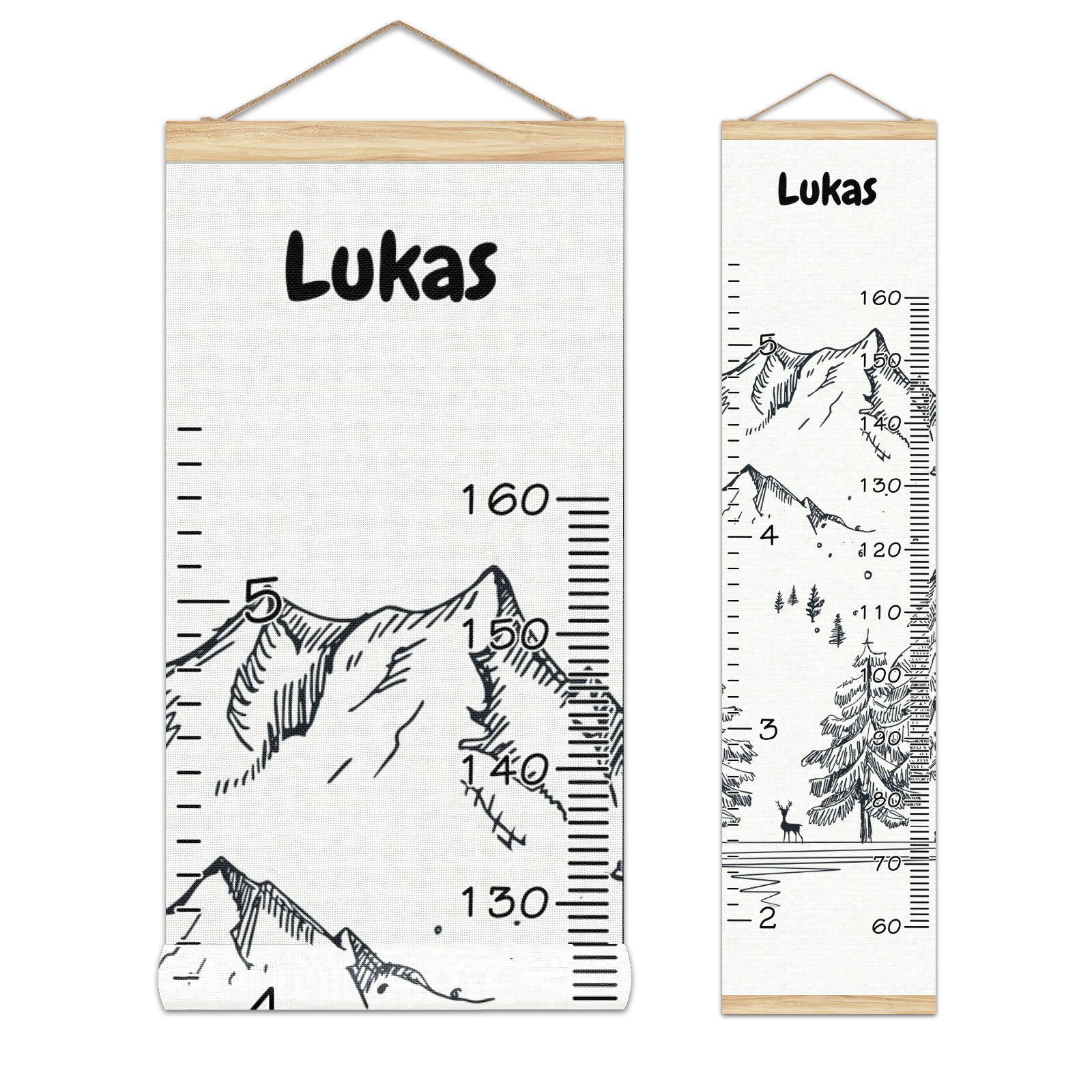 Personalized Kids Name Growth Chart Ruler for Wall Wood Frame Canvas Height Measure Chart 13.4x56 in Hanging Growth Chart Winter Mountain11.5 Boys Girls Room Decor