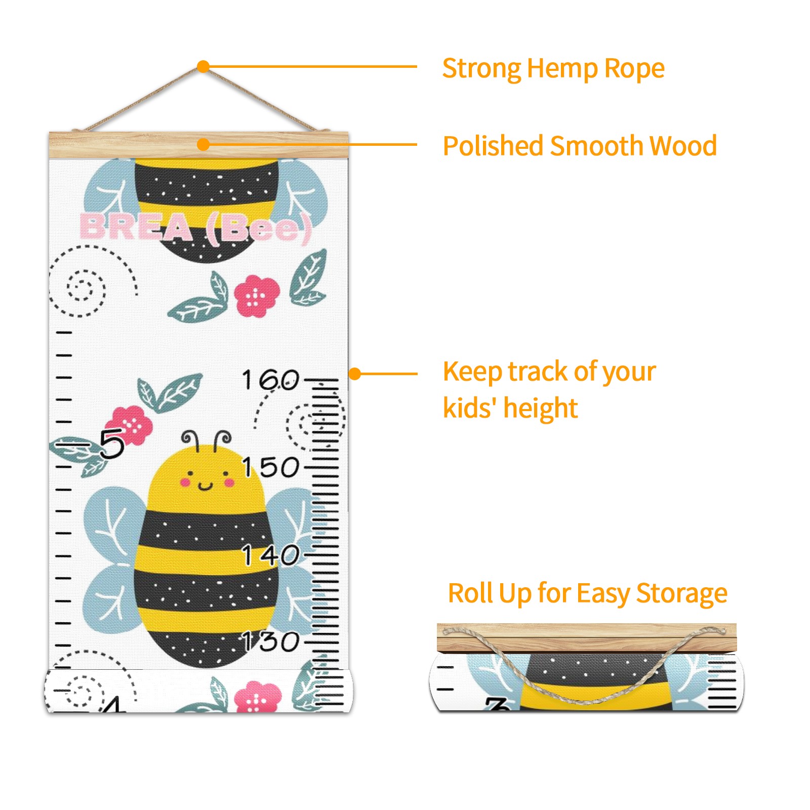 • <p><b>Features:</b></p> <p>Rope for Hanging</p> <p>Material: Linen + Wood</p> <p>Dimensions: 13.4x56 inches</p> <p>Package Included: 1 * Baby Growth Chart</p> <p><b>Baby height growth chart can be used anywhere</b></p> <p>Ideal for kids nursery decoration, kids bedroom, interior walls or windows, playroom, living room, homedecoration.Add name and make the growth chart special!</p> <p><b>Easy to fold and carry</b></p> <p>With rope at the top of the growth chart, it is easy to install and remove.You can fold it and unfold any time any where.</p> <p><b>Perfect Gift Idea for Kids</b></p> <p>Environmental and non-toxic for kids use, it must be a perfect gift for baby, kids, girls, and boys.This is a best choice for your friend who have kids or baby as a popular gift.</p> <p><b>Easy to read</b></p> <p>Measurement accrate with 2 scales, Centimeters and feet. The letters are big enough, very easy to read.</p> <p><b>60cm(23.6inch) Over Ground Design</b></p> <p>Not only can protect from dust and other damage, but also will not interfere in floor cleaning.</p>
