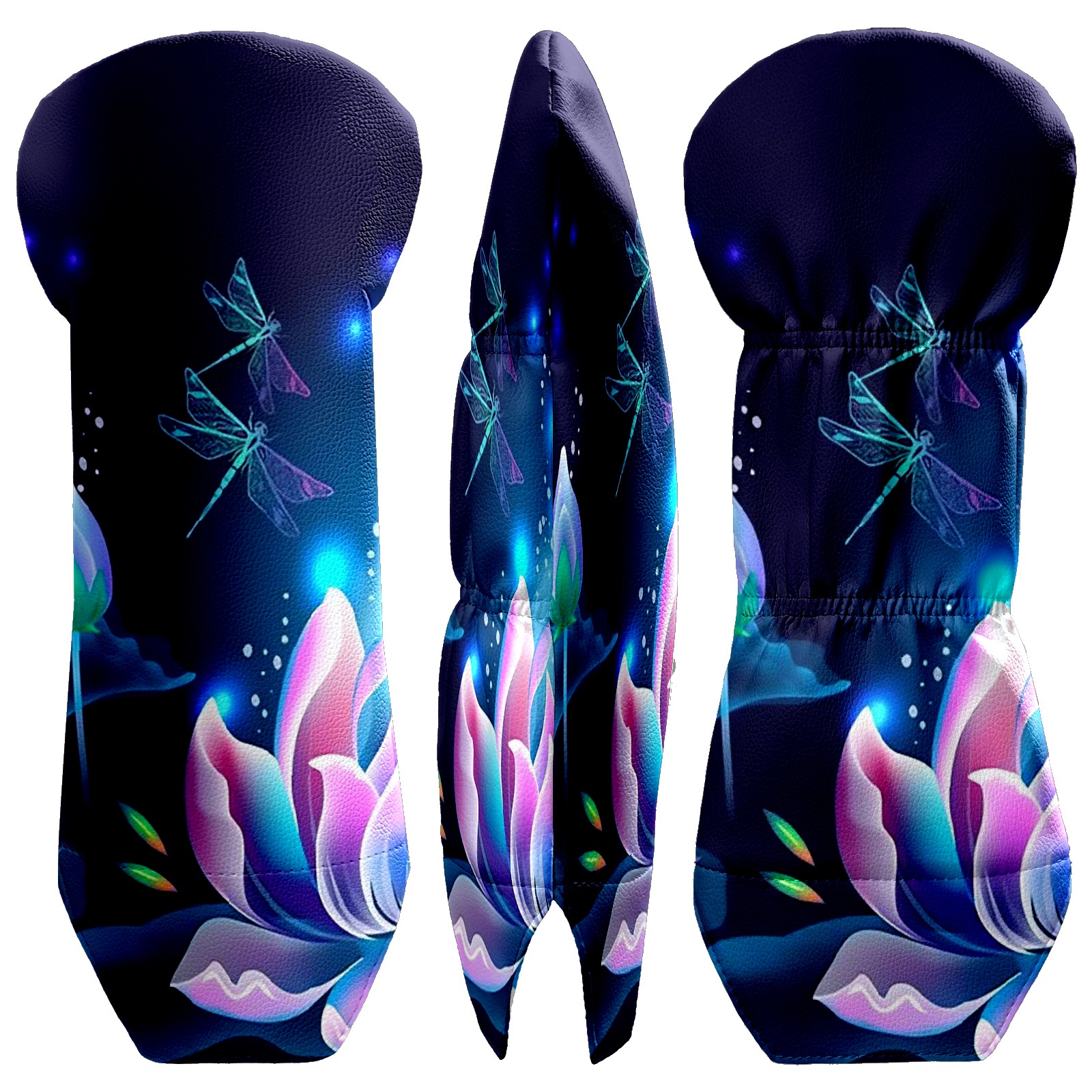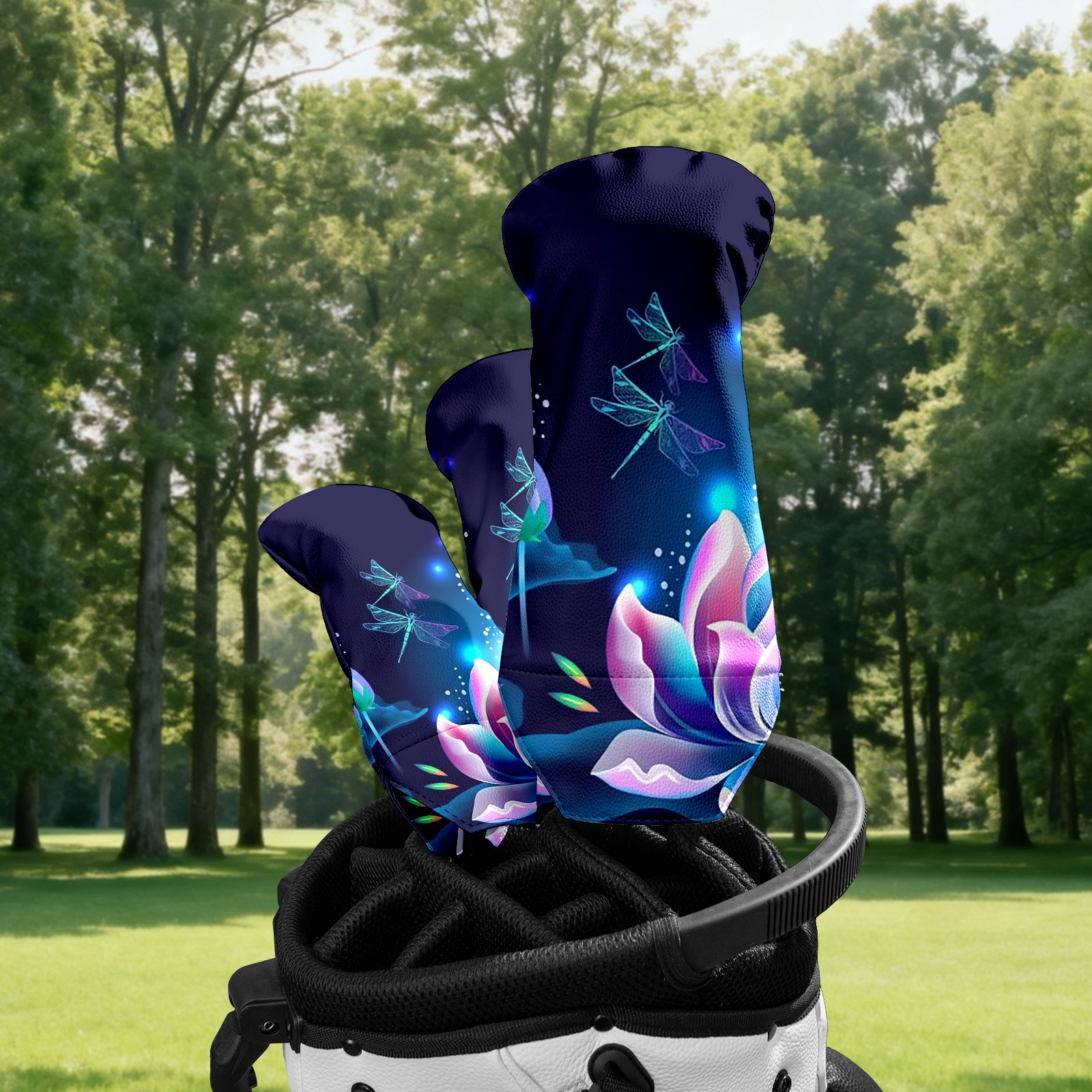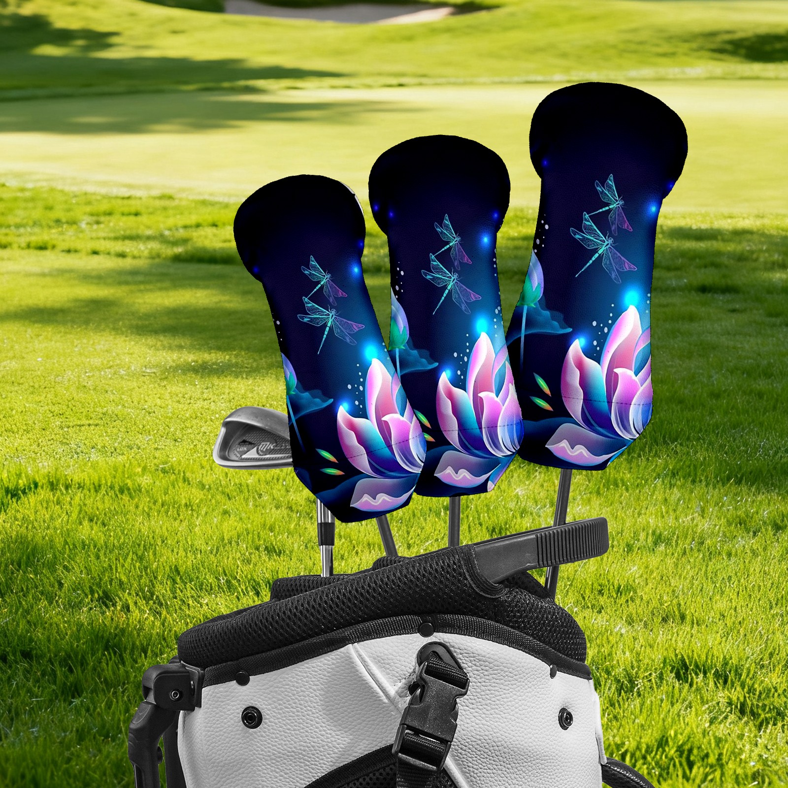 Golf Club Head Covers Driver Cover Fairway Hybrid Headcover Premium Leather Golf Head Covers for Woods and Driver Hybrid, Golf Headcovers for Women Men (Lotus Floral And Dragonflies)