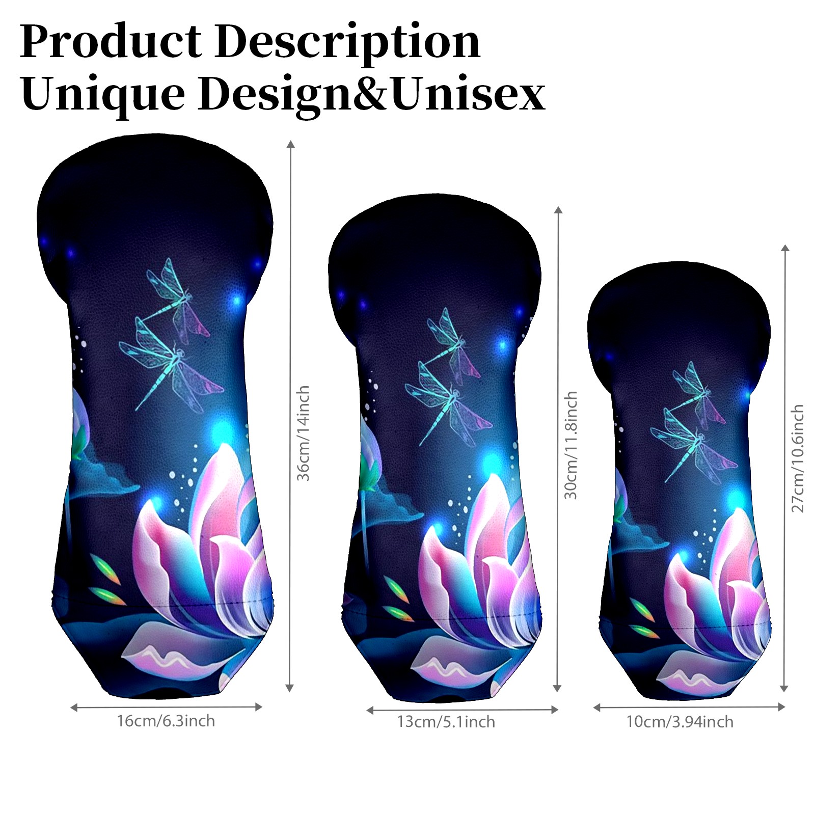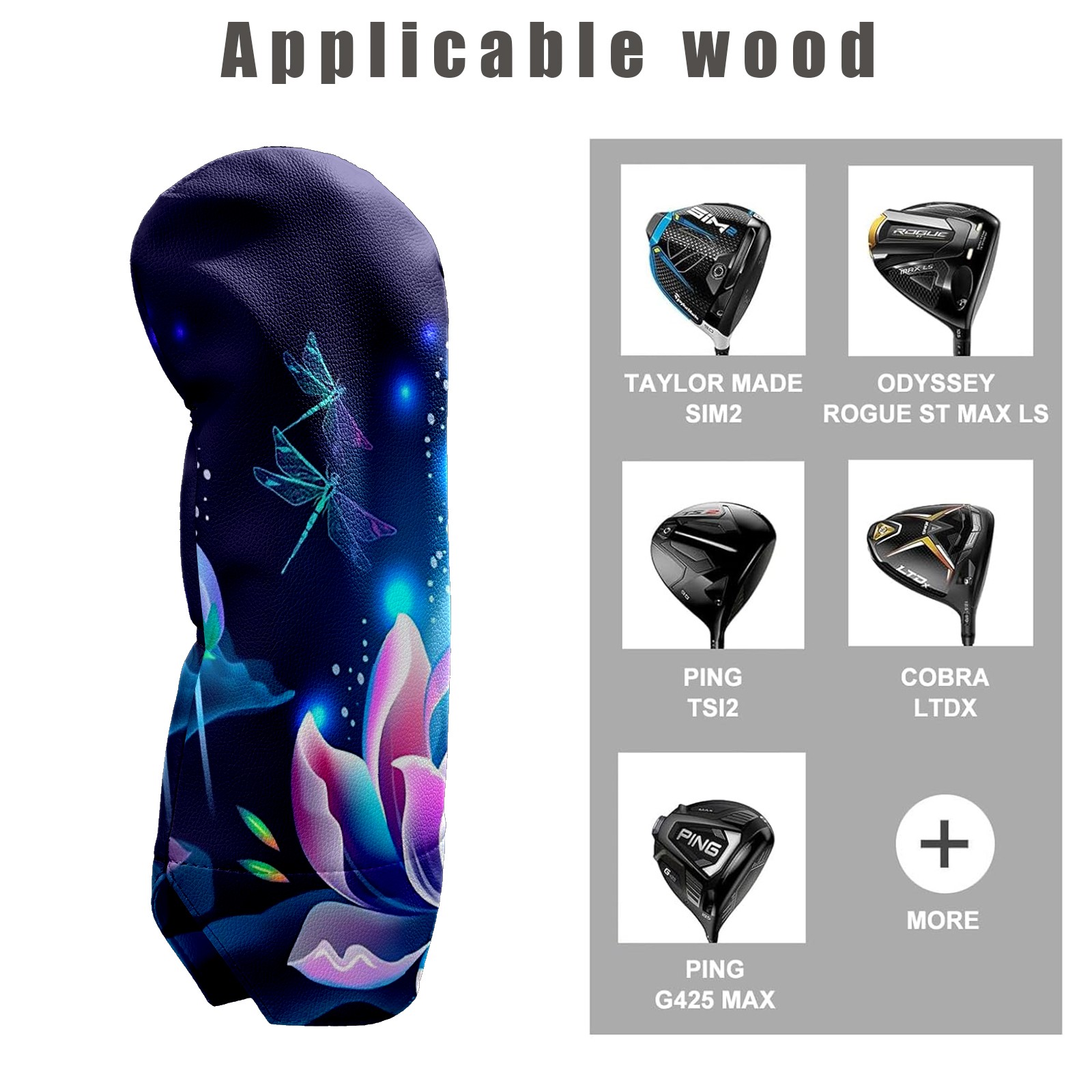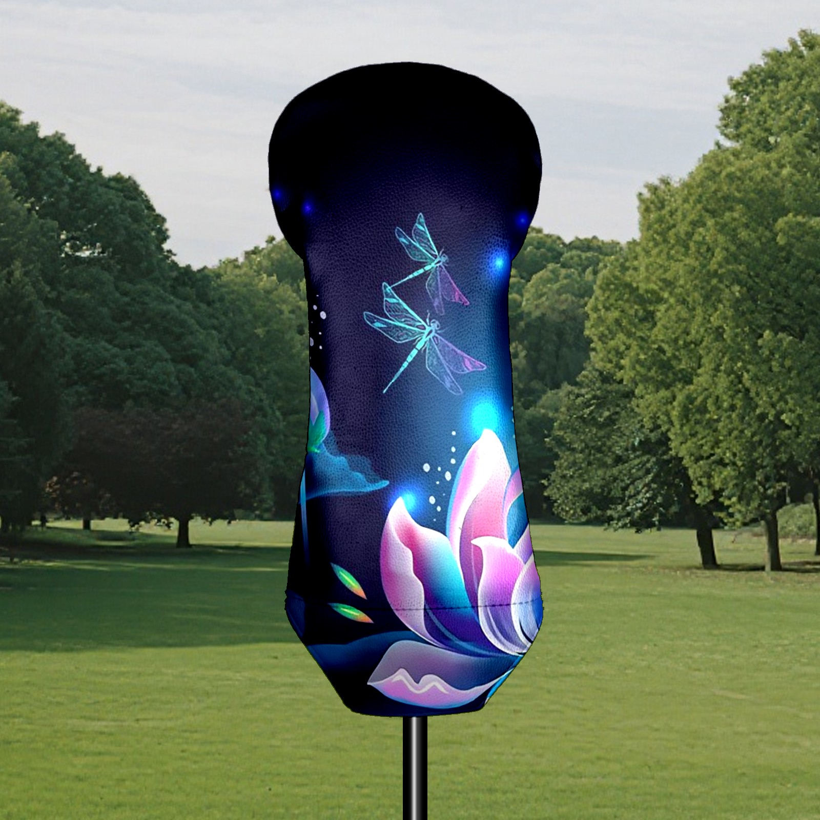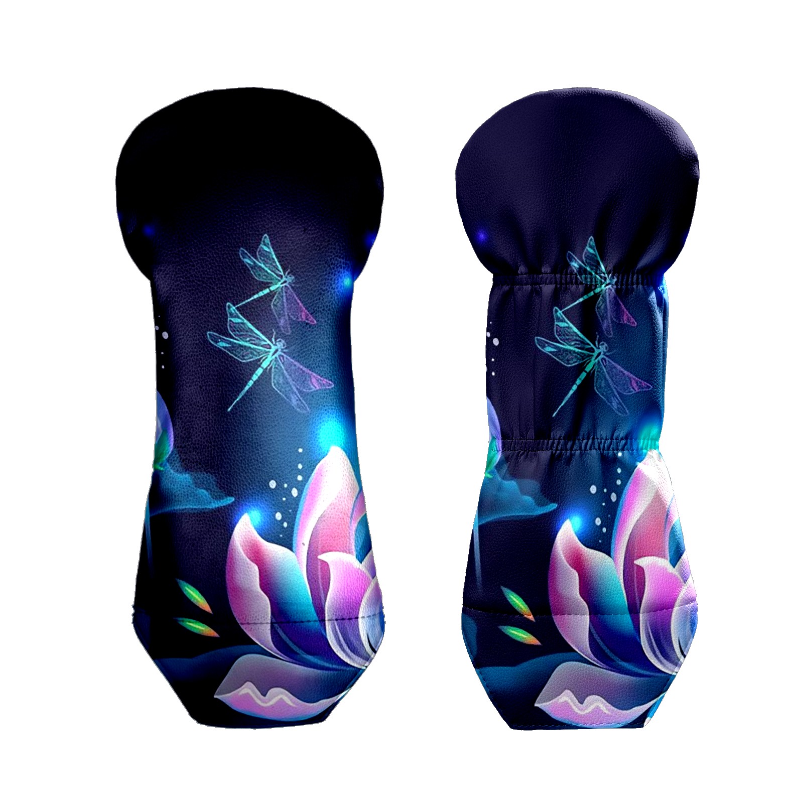 Golf Club Head Covers Driver Cover Fairway Hybrid Headcover Premium Leather Golf Head Covers for Woods and Driver Hybrid, Golf Headcovers for Women Men (Lotus Floral And Dragonflies)