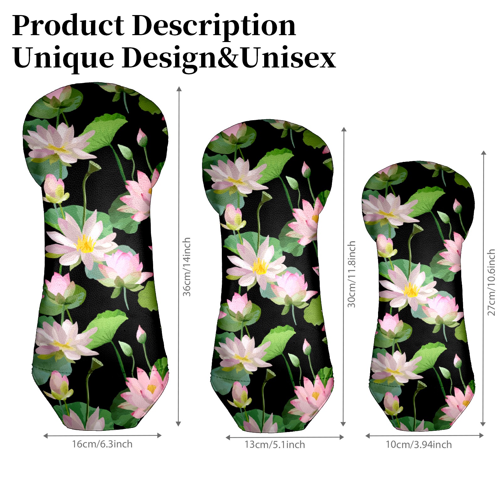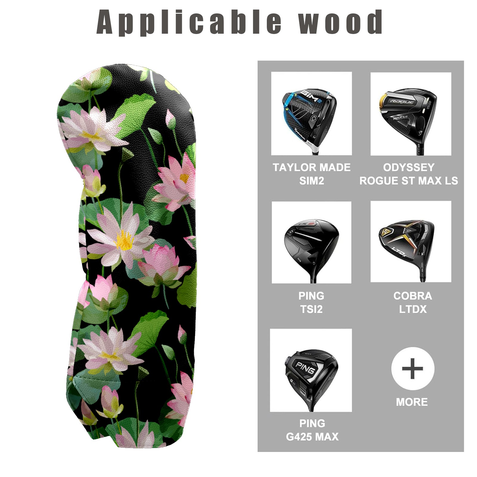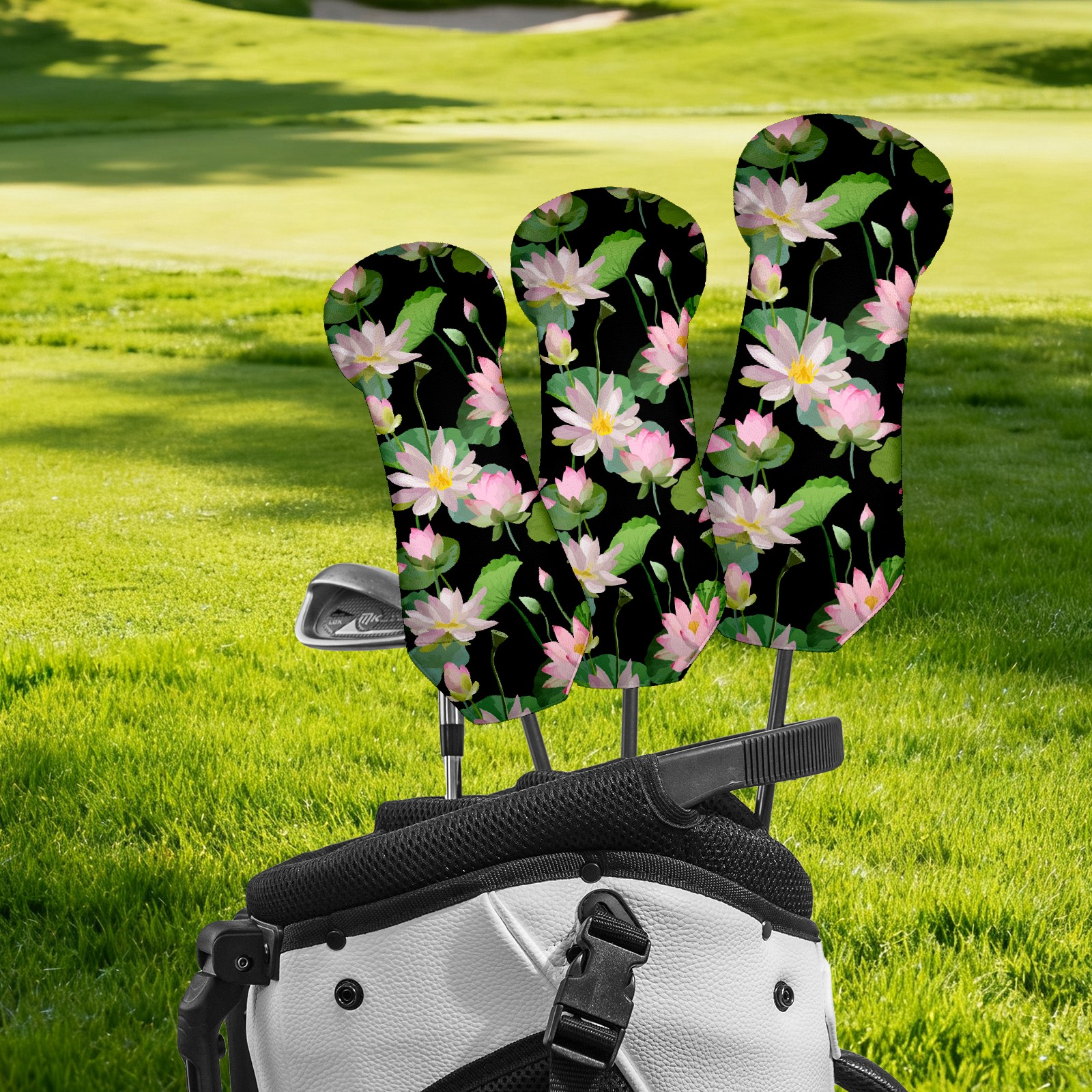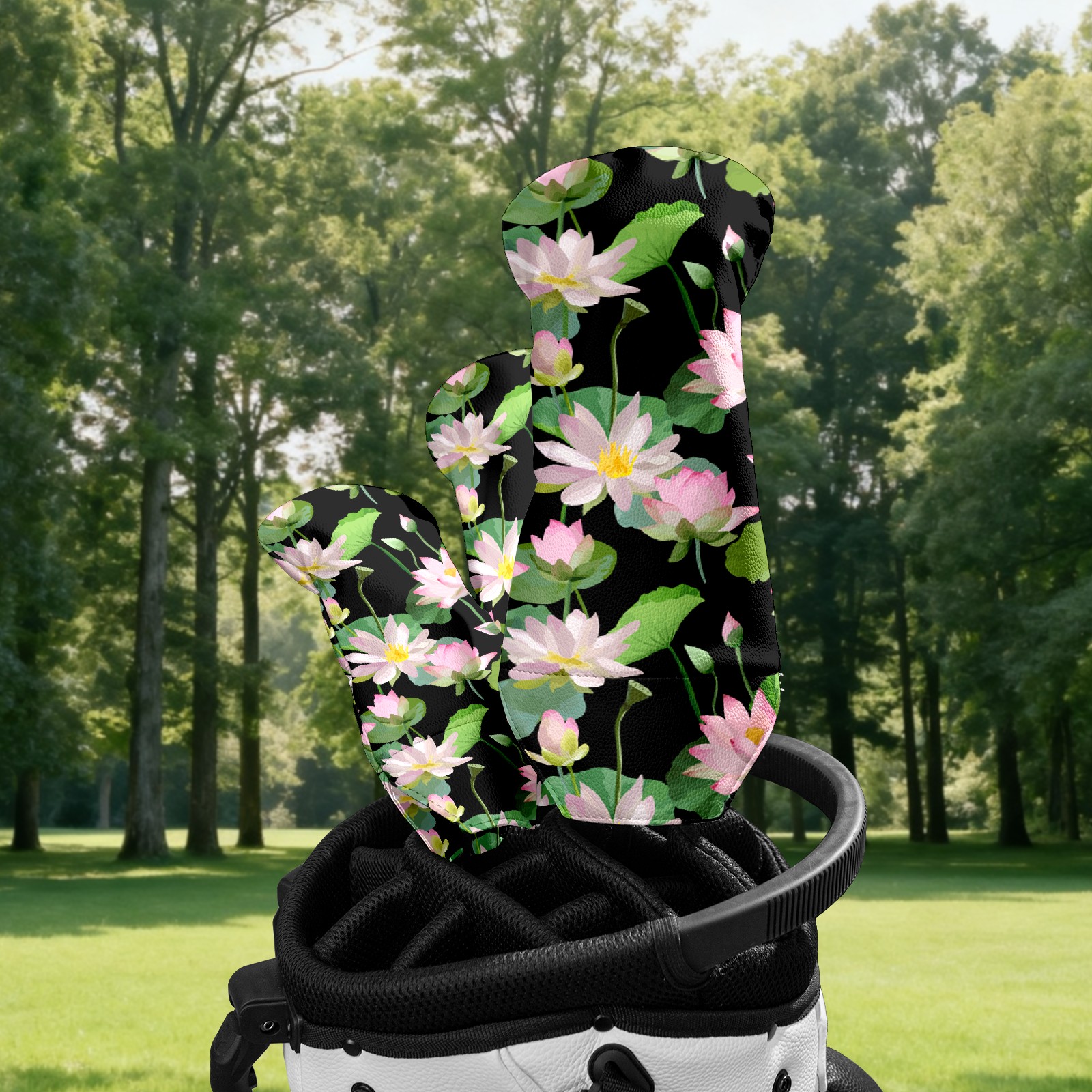 Golf Club Head Covers Driver Cover Fairway Hybrid Headcover Premium Leather Golf Head Covers for Woods and Driver Hybrid, Golf Headcovers for Women Men (Pink Lotus)
