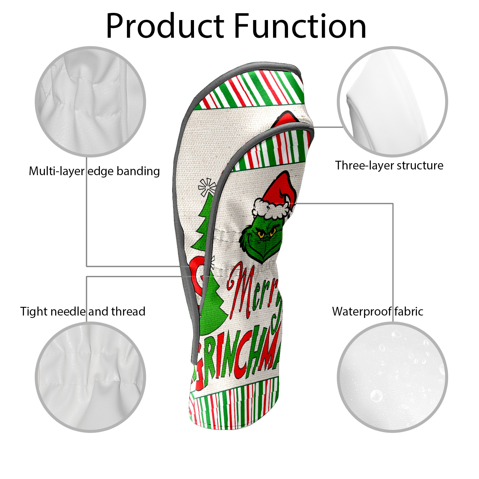 Golf Club Head Cover Waterproof Leather for Driver & Fairway Wood, Driver Headcovers, Golf Accessories for Men Women, Anti-Scratch, Golf Gift for Golfers, 1/3/5 Wood Cover Christmas Christmas Grinchmas (1)