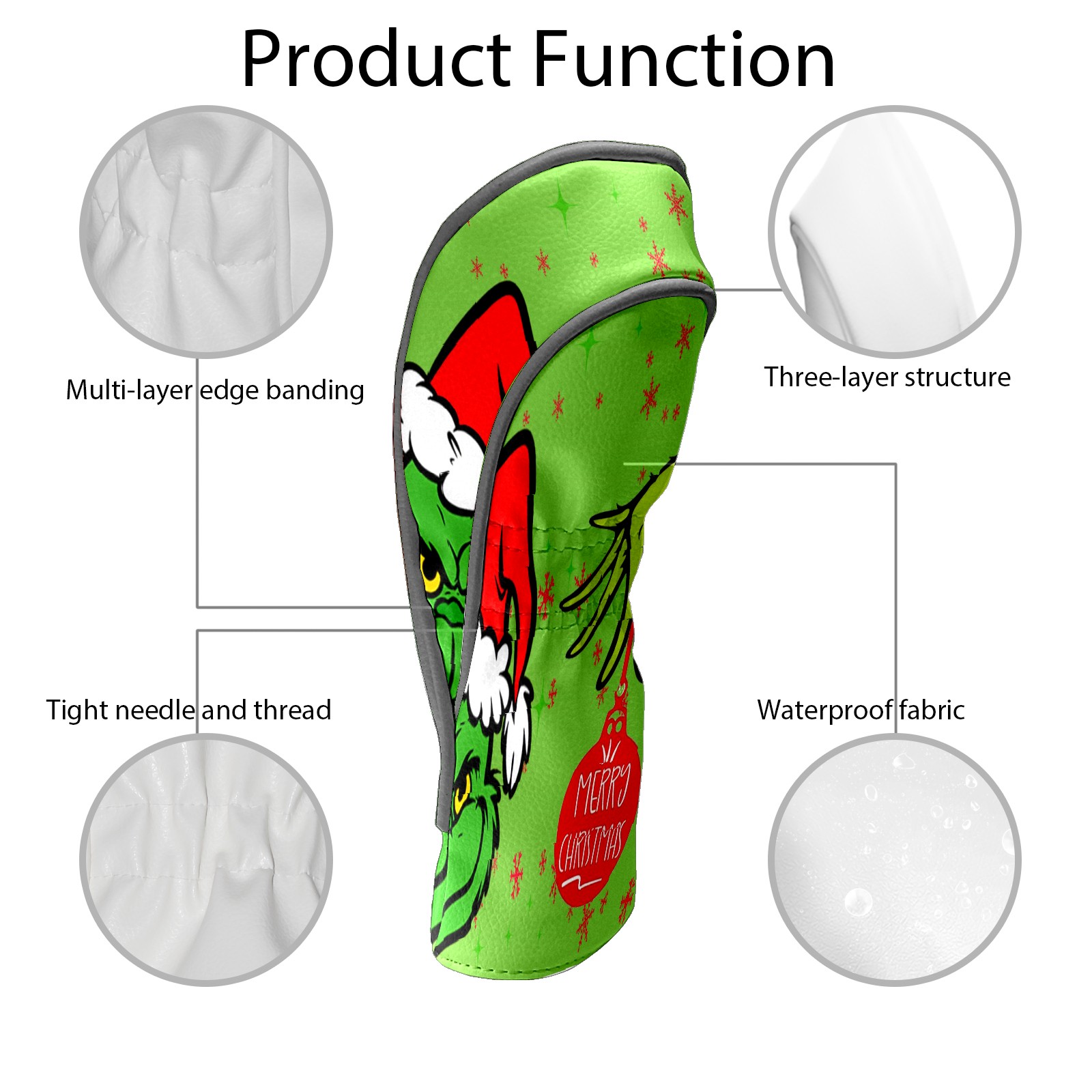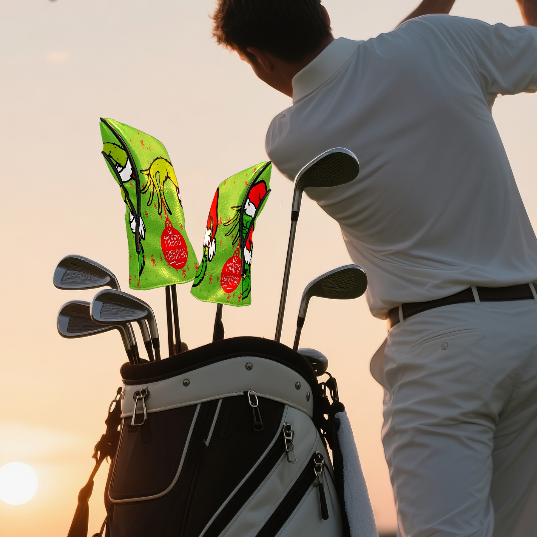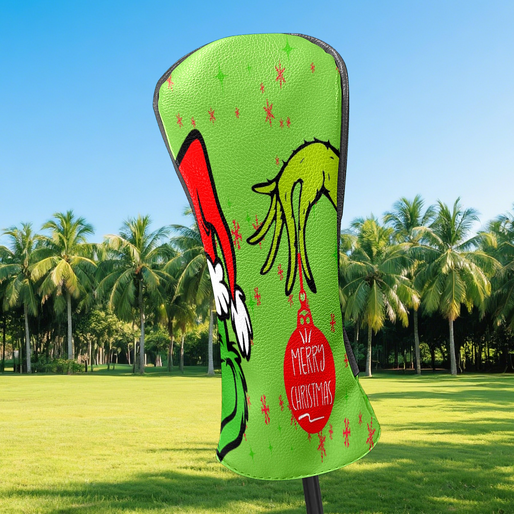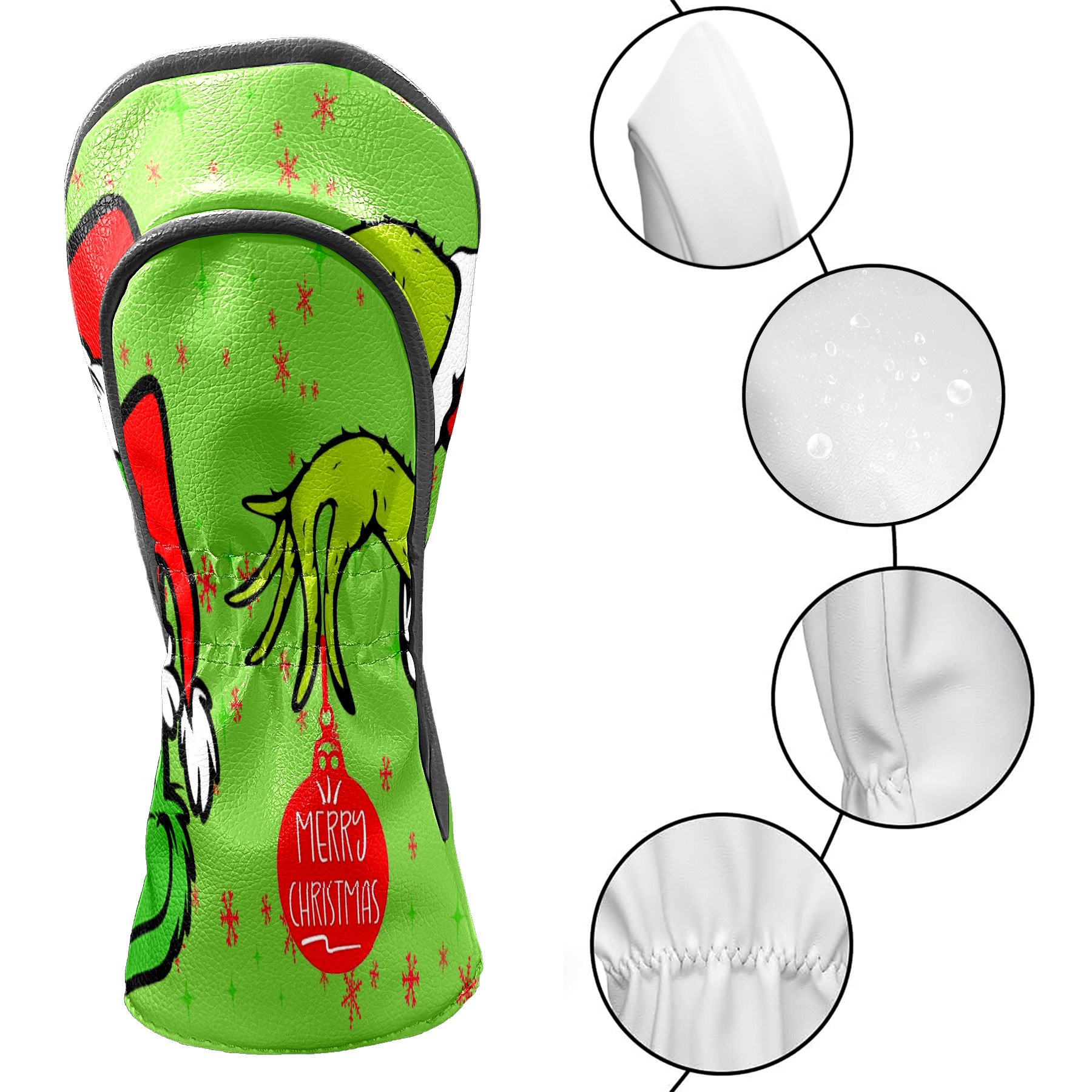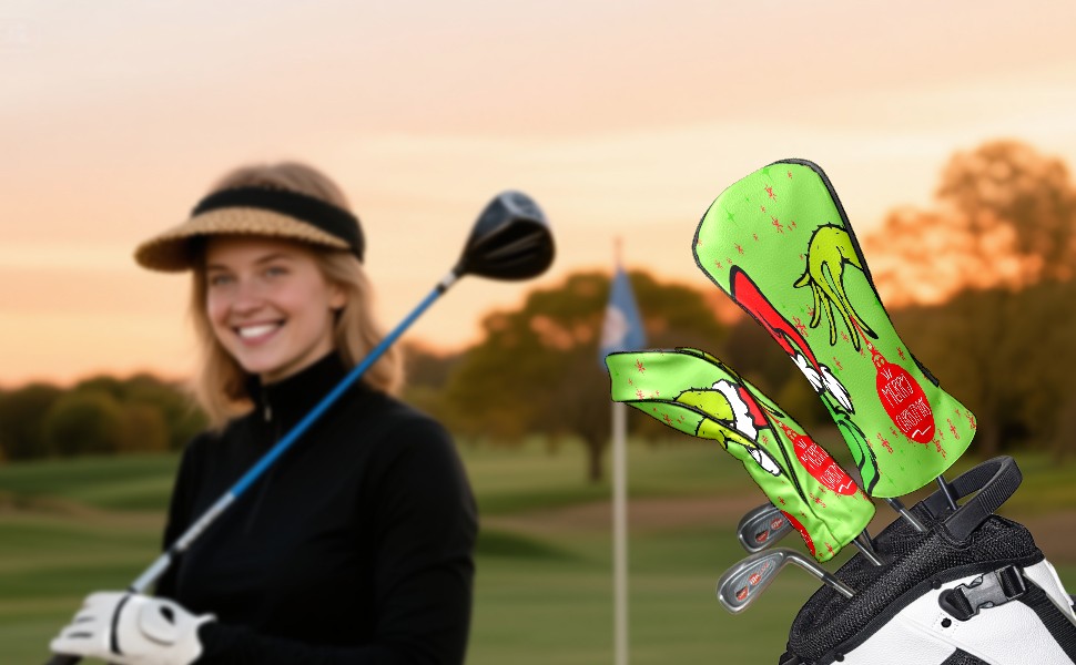 Golf Club Head Cover Waterproof Leather for Driver & Fairway Wood, Driver Headcovers, Golf Accessories for Men Women, Anti-Scratch, Golf Gift for Golfers, 1/3/5 Wood Cover Merry Holiday Grinchmas