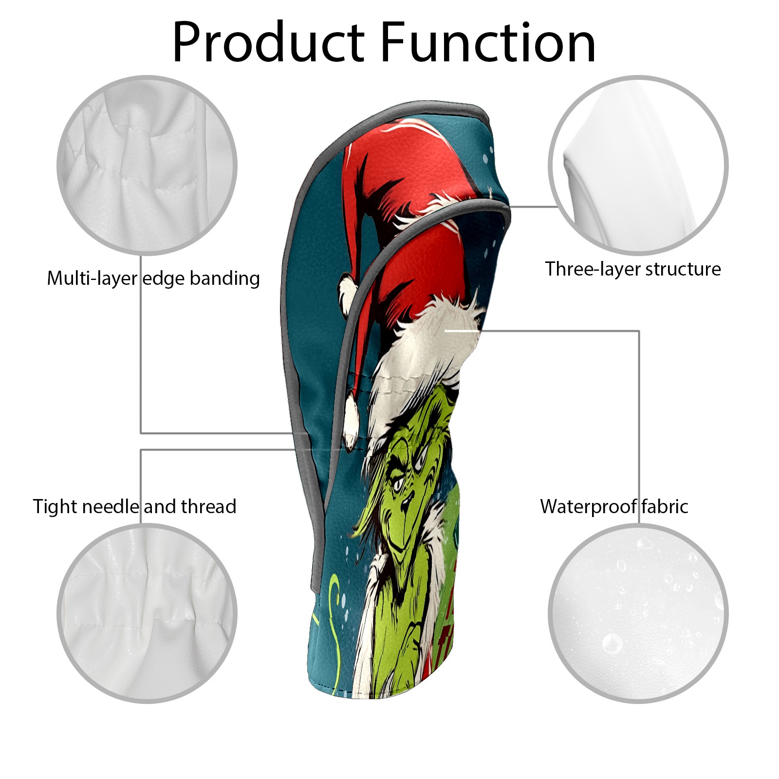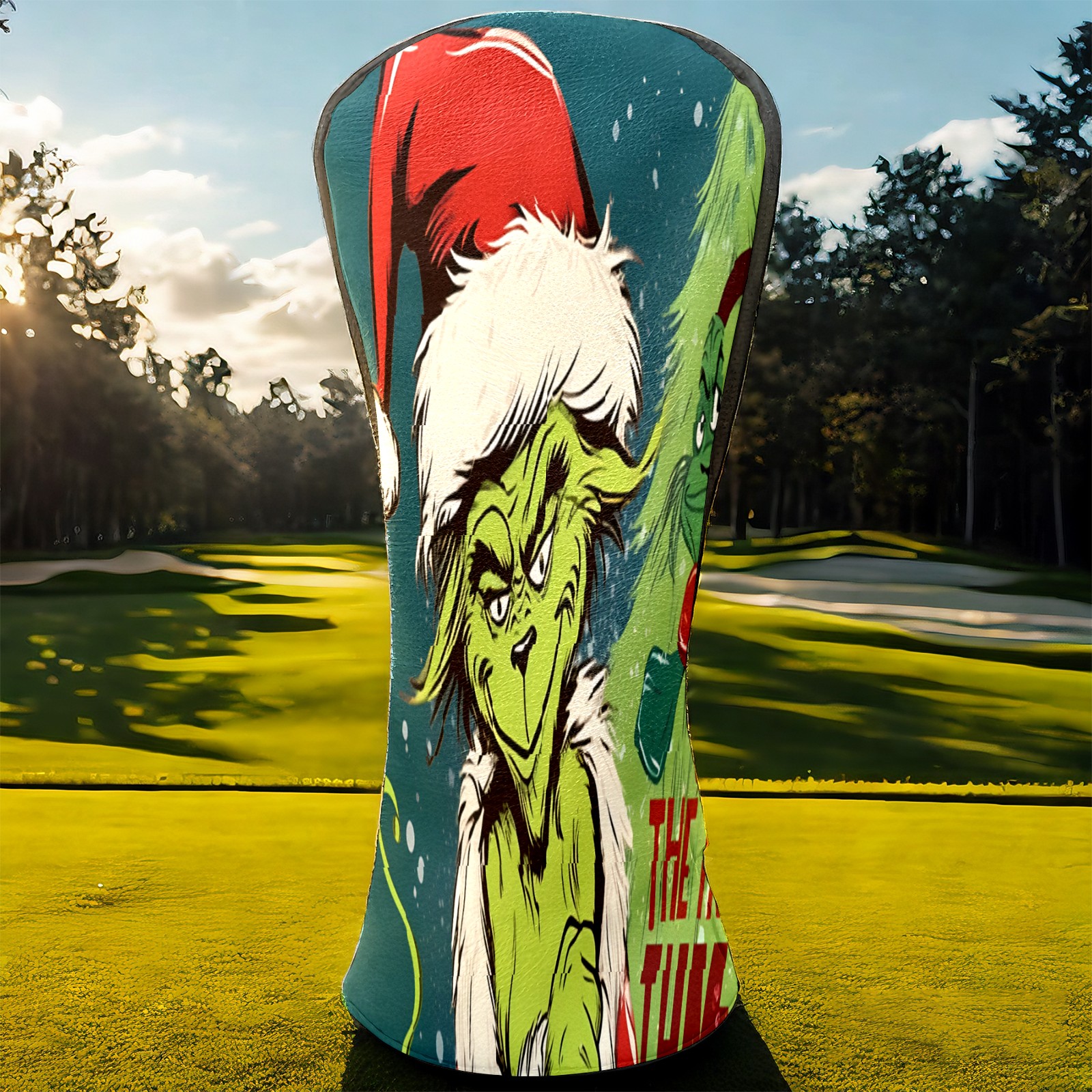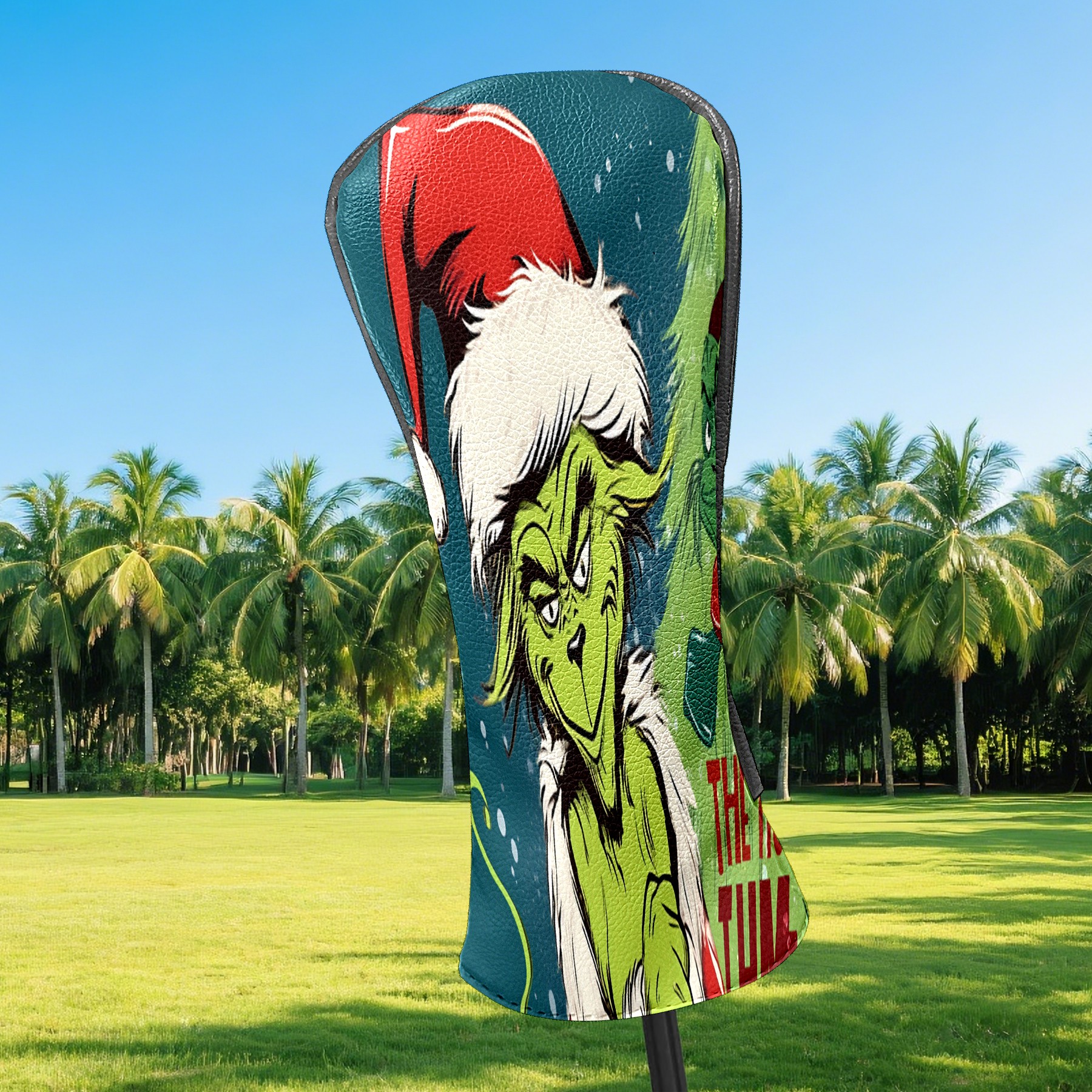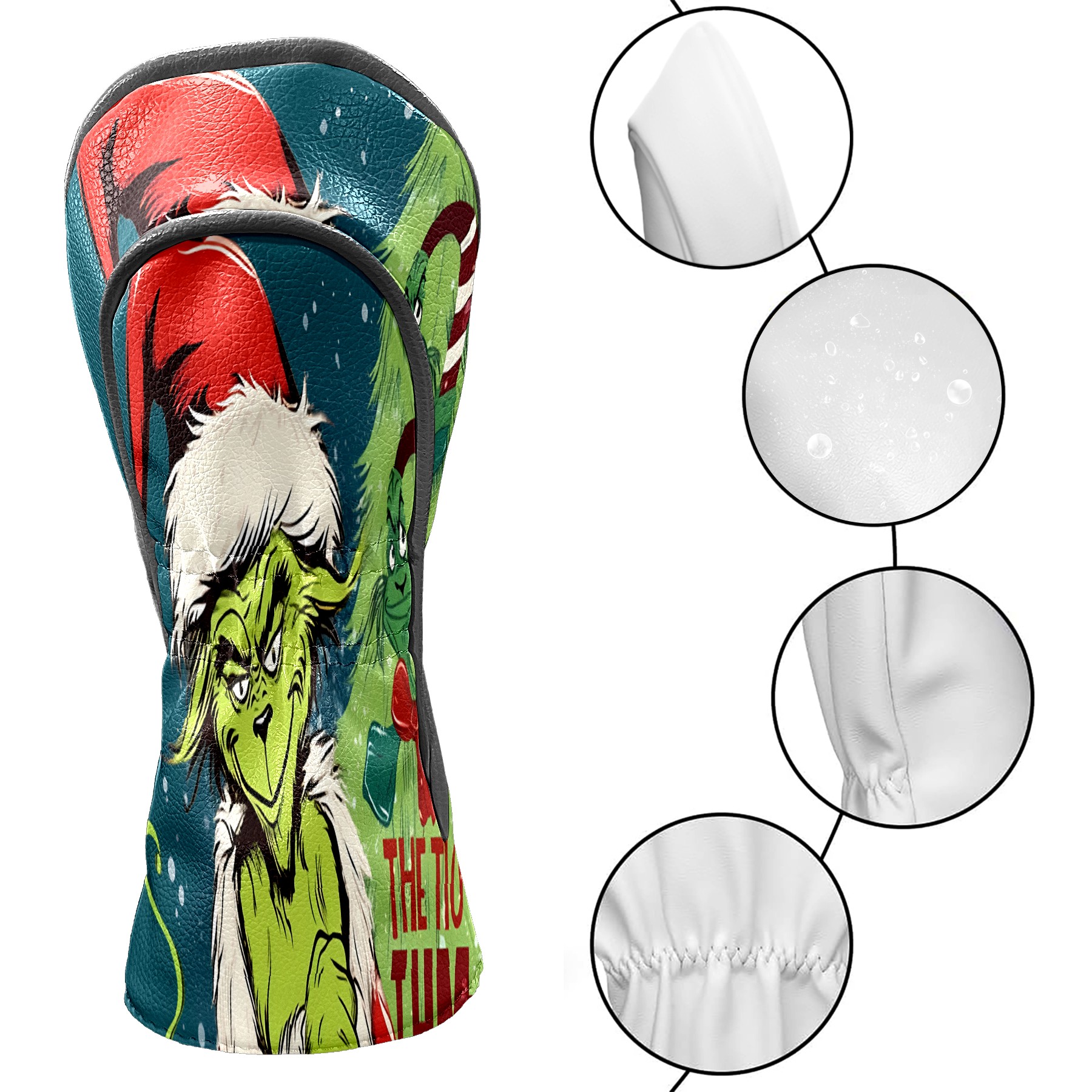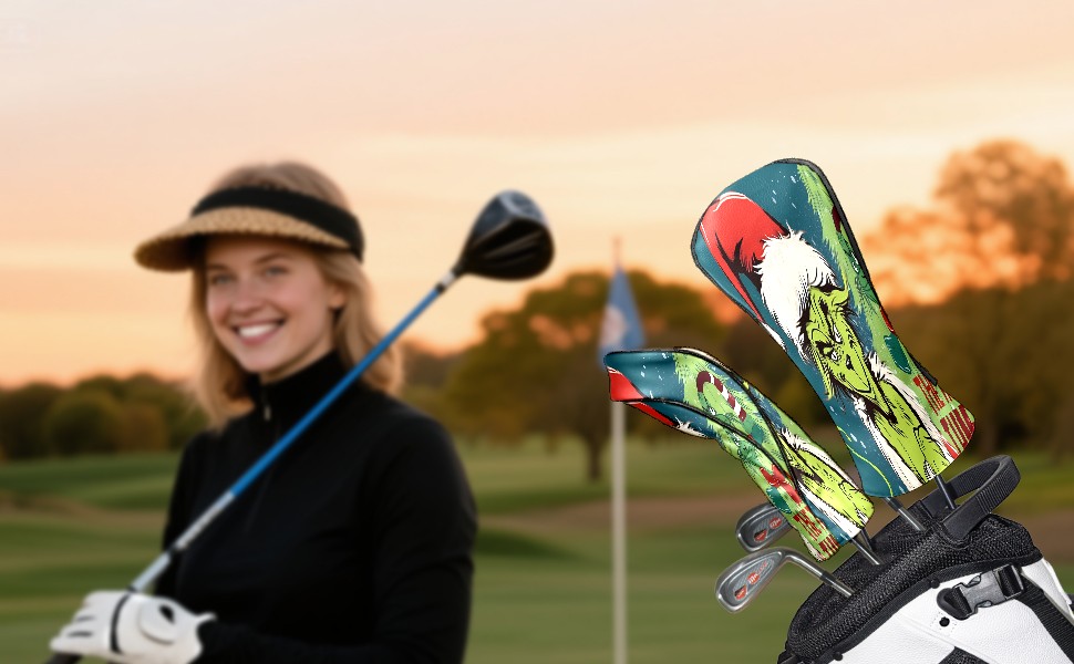 Golf Club Head Cover Waterproof Leather for Driver & Fairway Wood, Driver Headcovers, Golf Accessories for Men Women, Anti-Scratch, Golf Gift for Golfers, 1/3/5 Wood Cover Christmas Grinch Decor 18 (1)