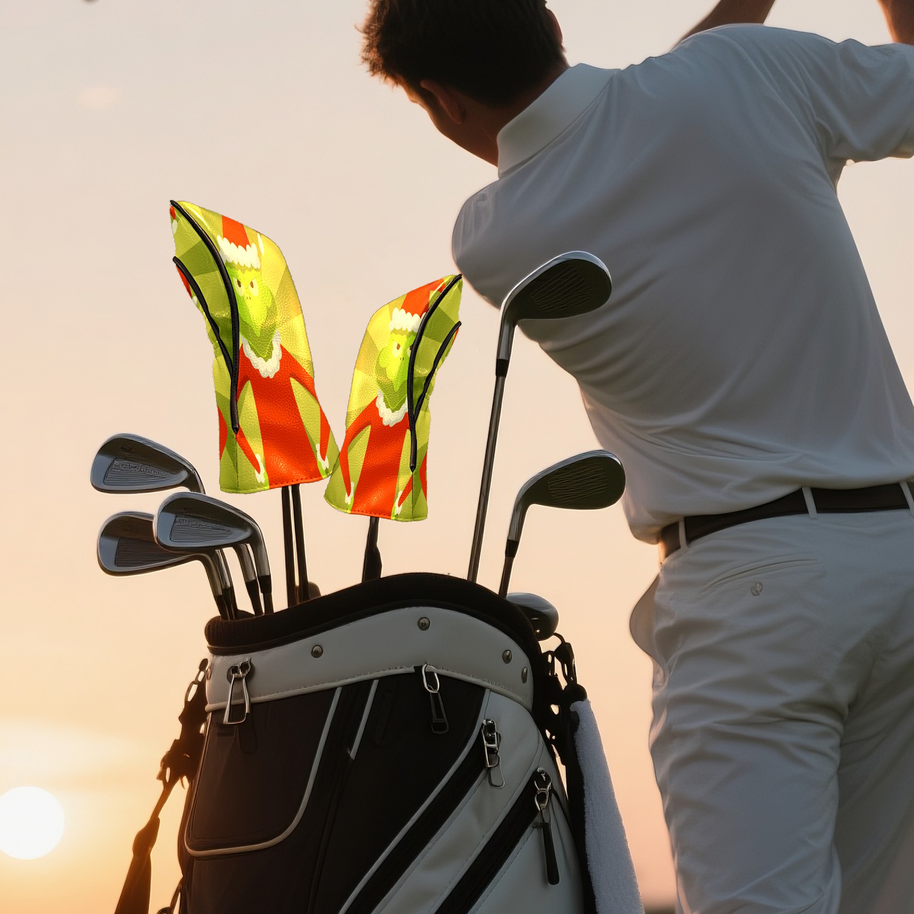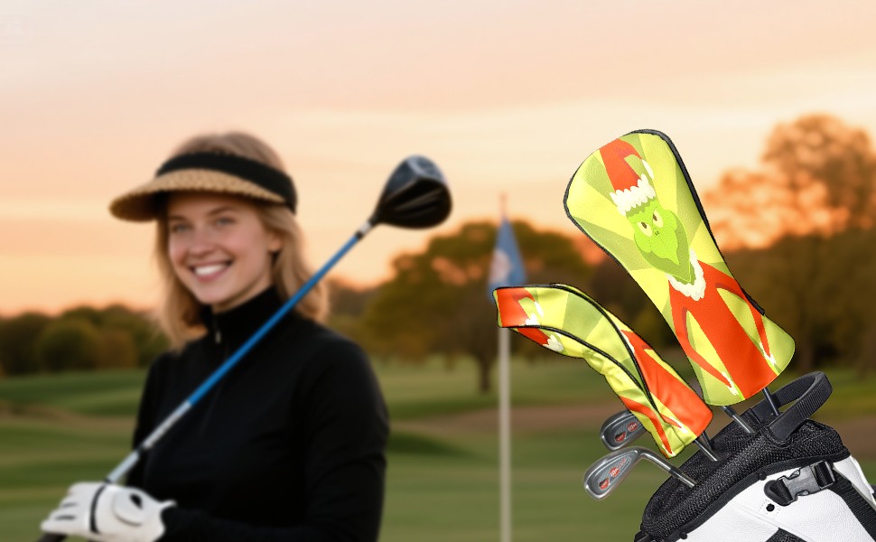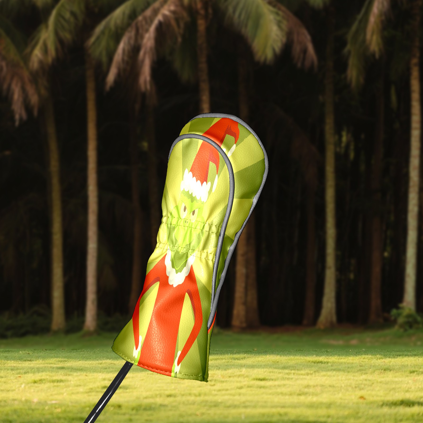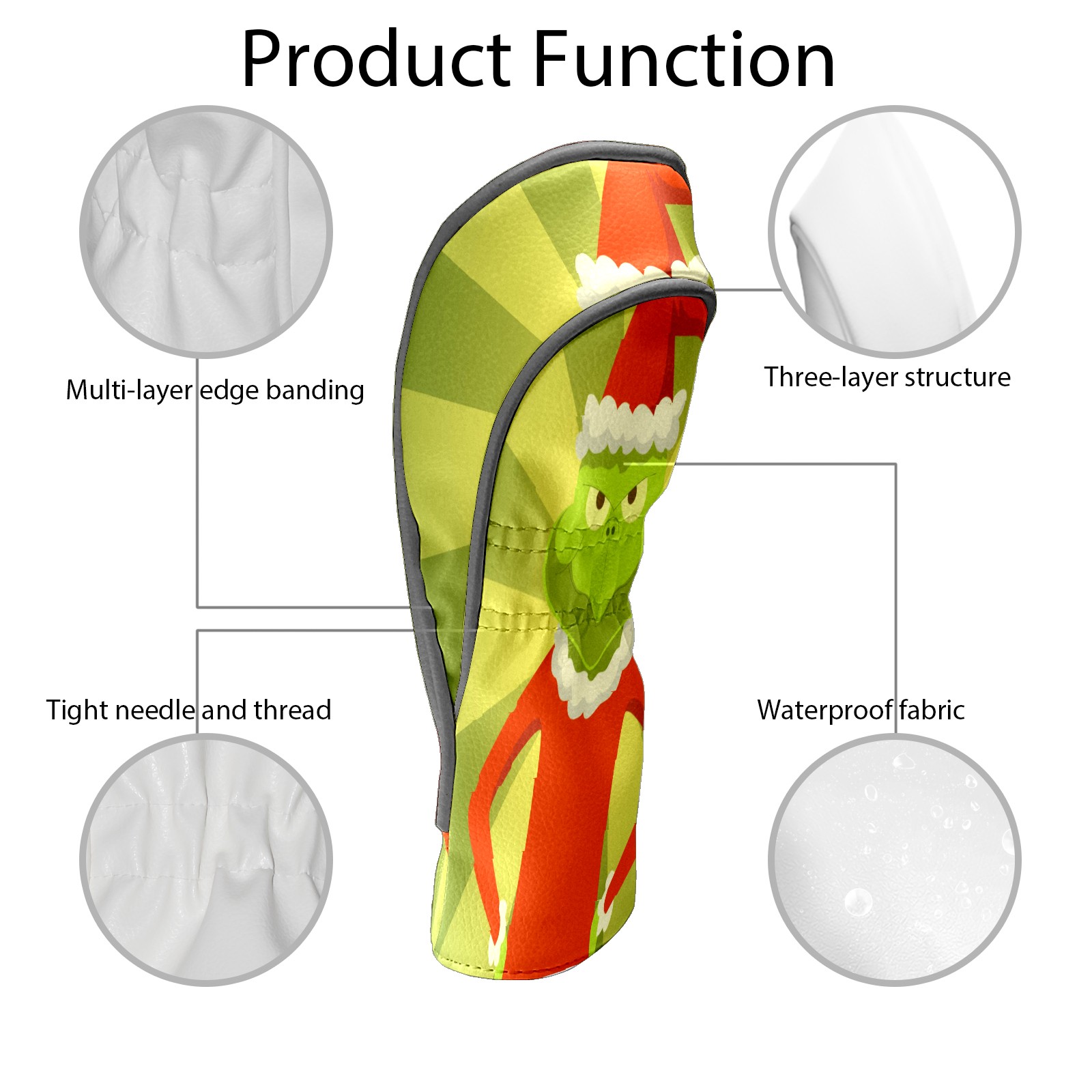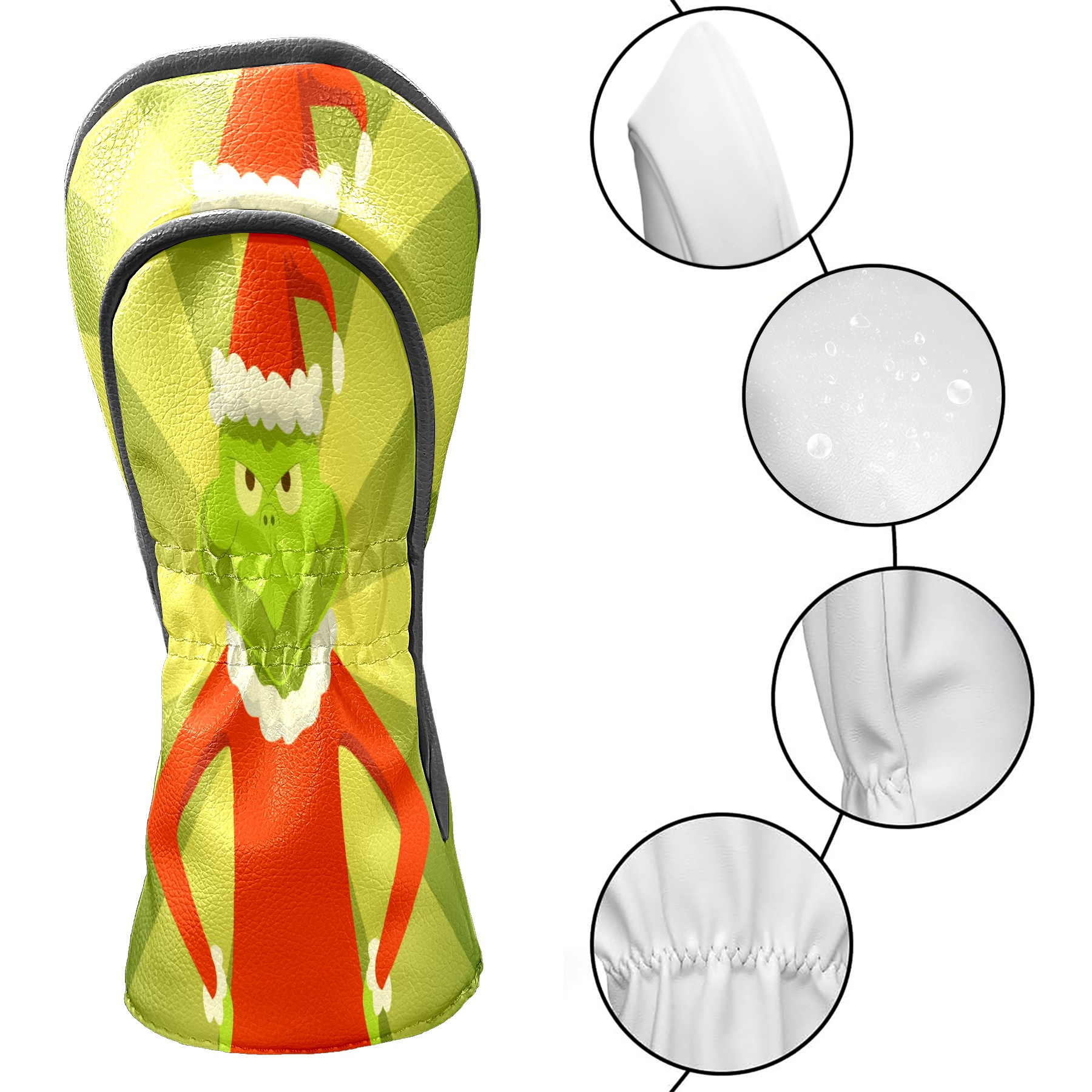 Golf Club Head Cover Waterproof Leather for Driver & Fairway Wood, Driver Headcovers, Golf Accessories for Men Women, Anti-Scratch, Golf Gift for Golfers, 1/3/5 Wood Cover The Grinch Vector