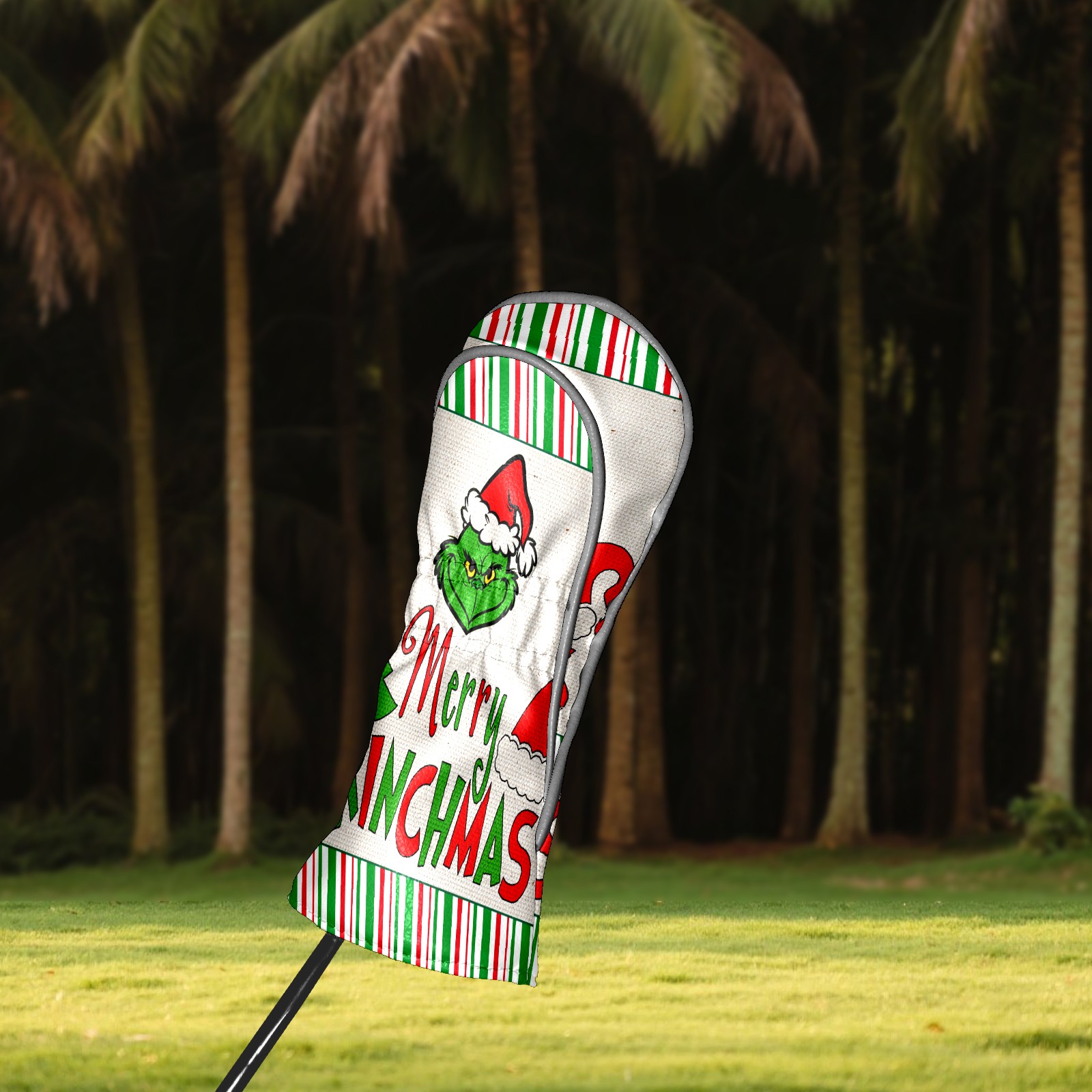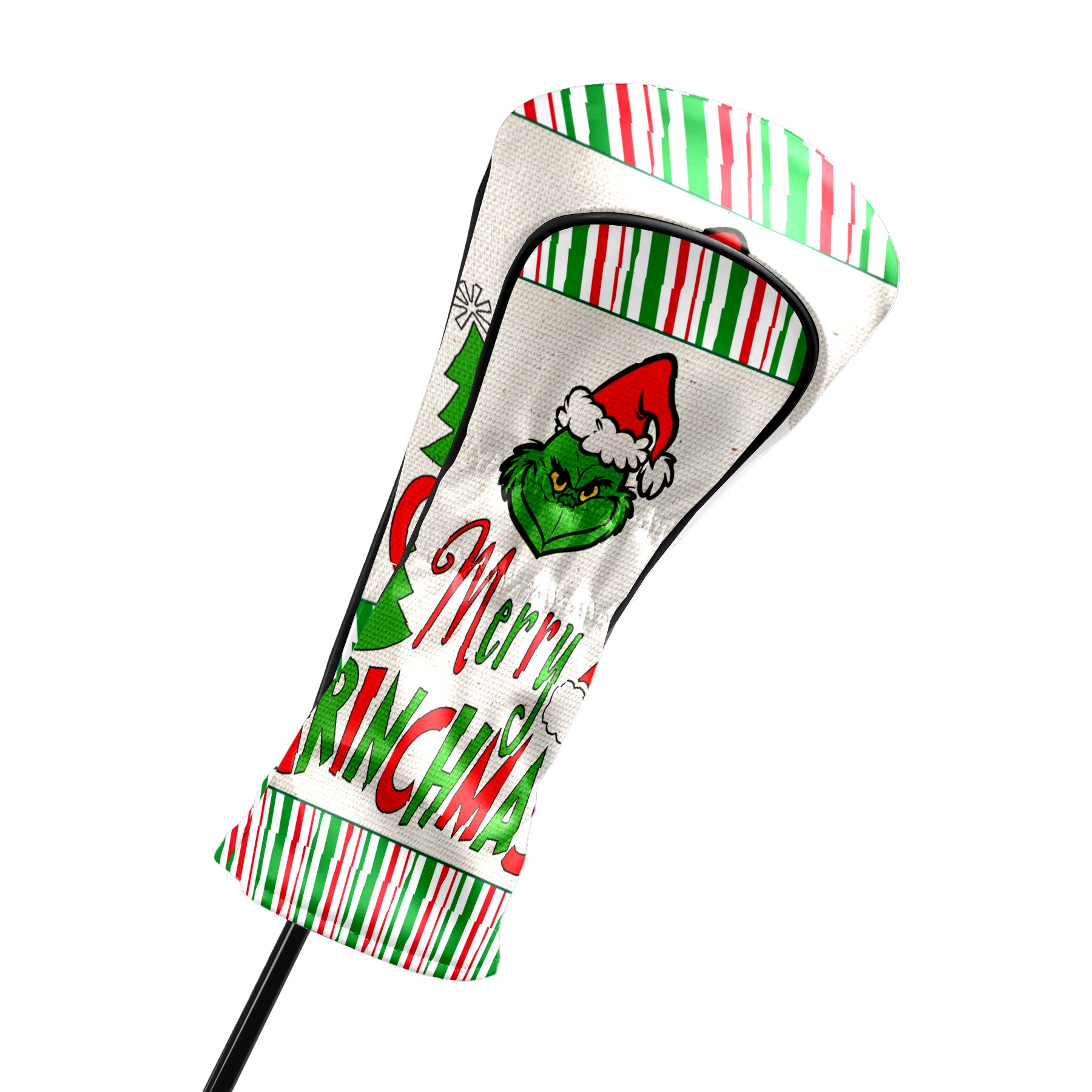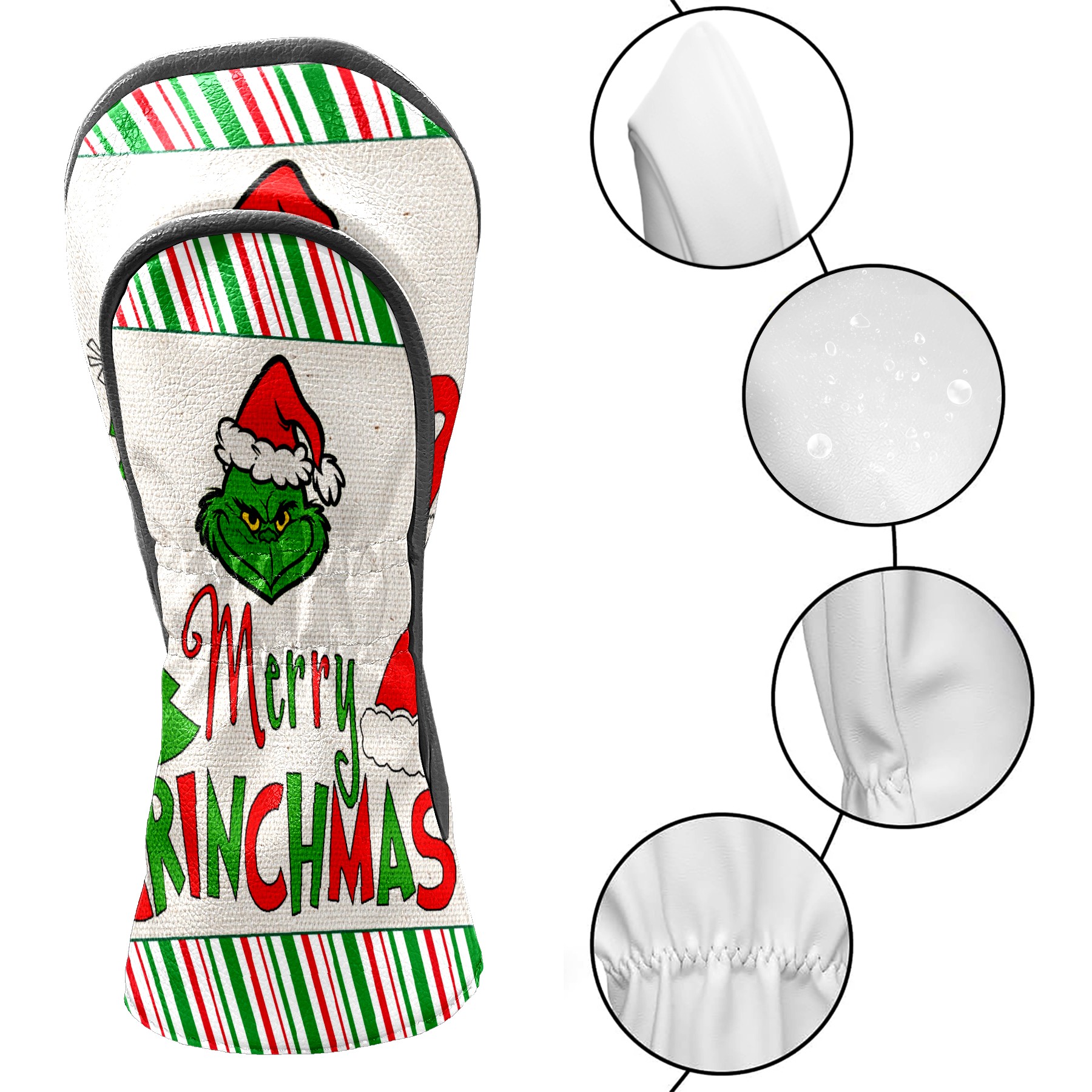 Golf Club Head Cover Waterproof Leather for Driver & Fairway Wood, Driver Headcovers, Golf Accessories for Men Women, Anti-Scratch, Golf Gift for Golfers, 1/3/5 Wood Cover Merry Christmas Grinchmas Stripe (1)