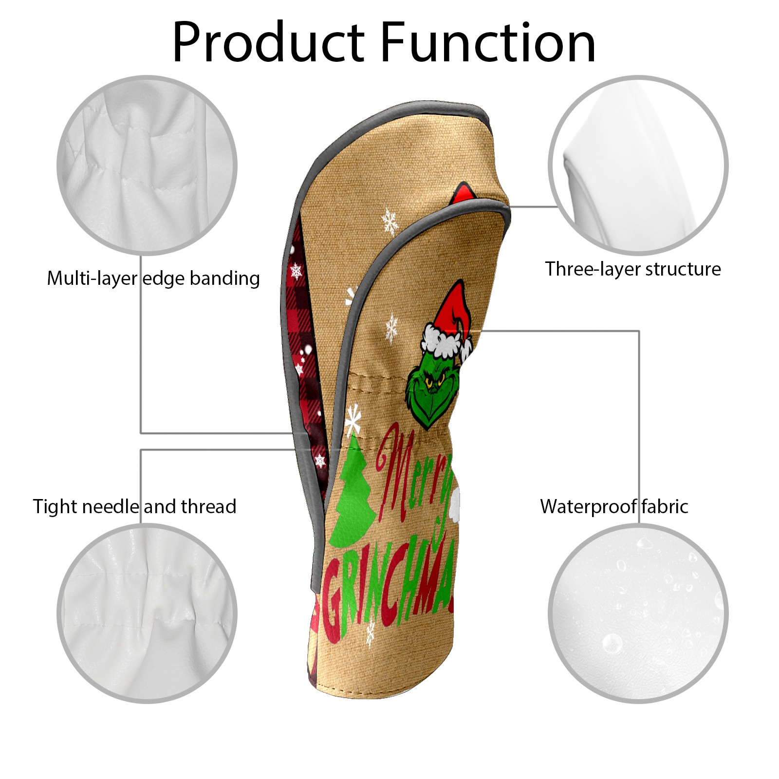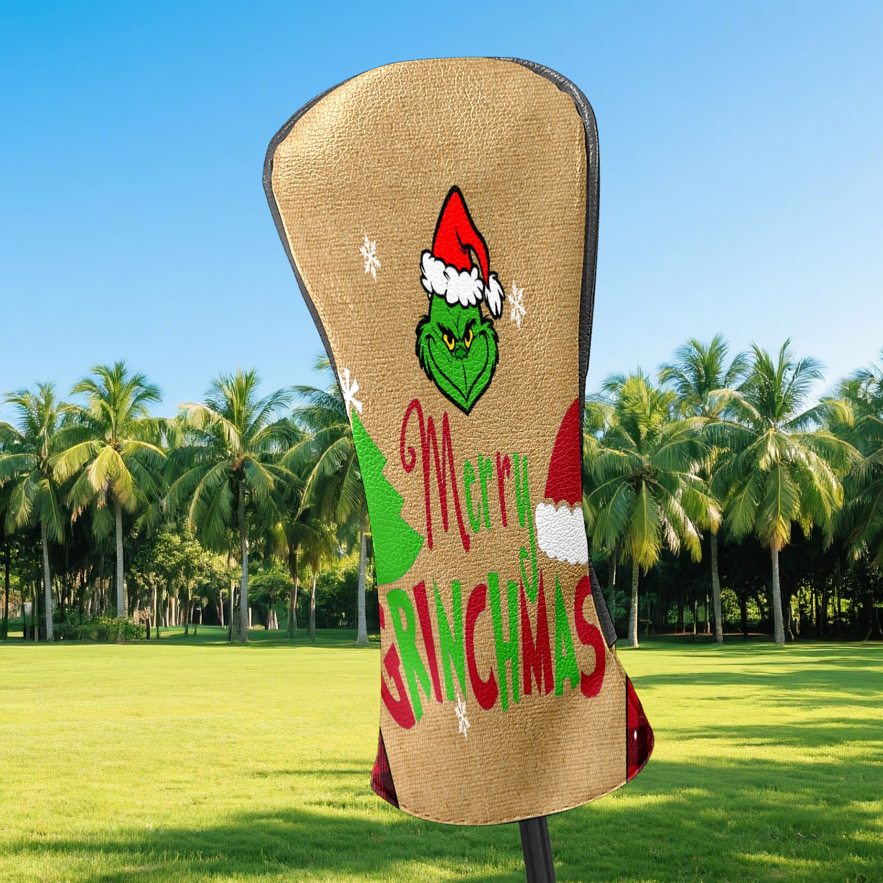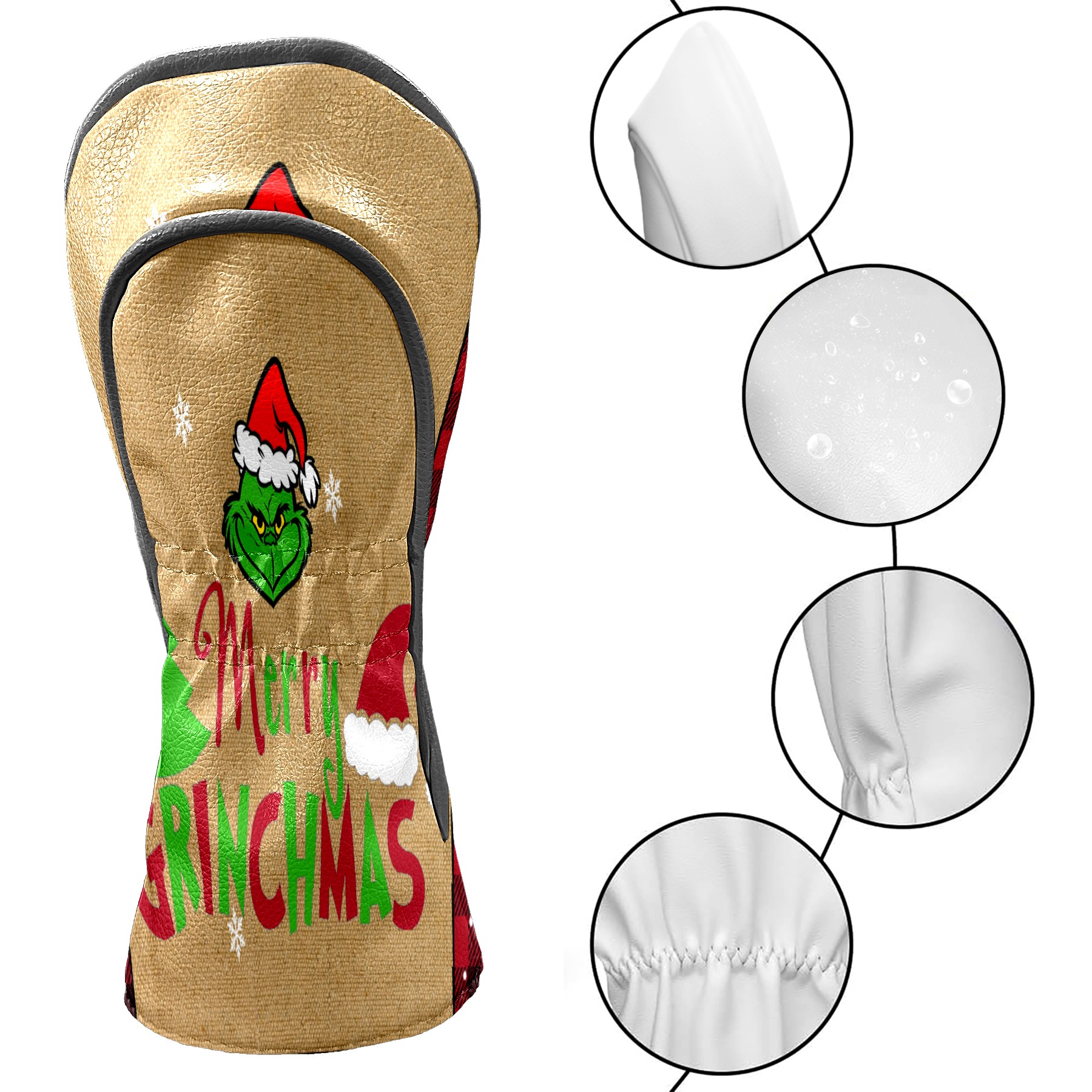 Golf Club Head Cover Waterproof Leather for Driver & Fairway Wood, Driver Headcovers, Golf Accessories for Men Women, Anti-Scratch, Golf Gift for Golfers, 1/3/5 Wood Cover Merry Christmas Grinchmas
