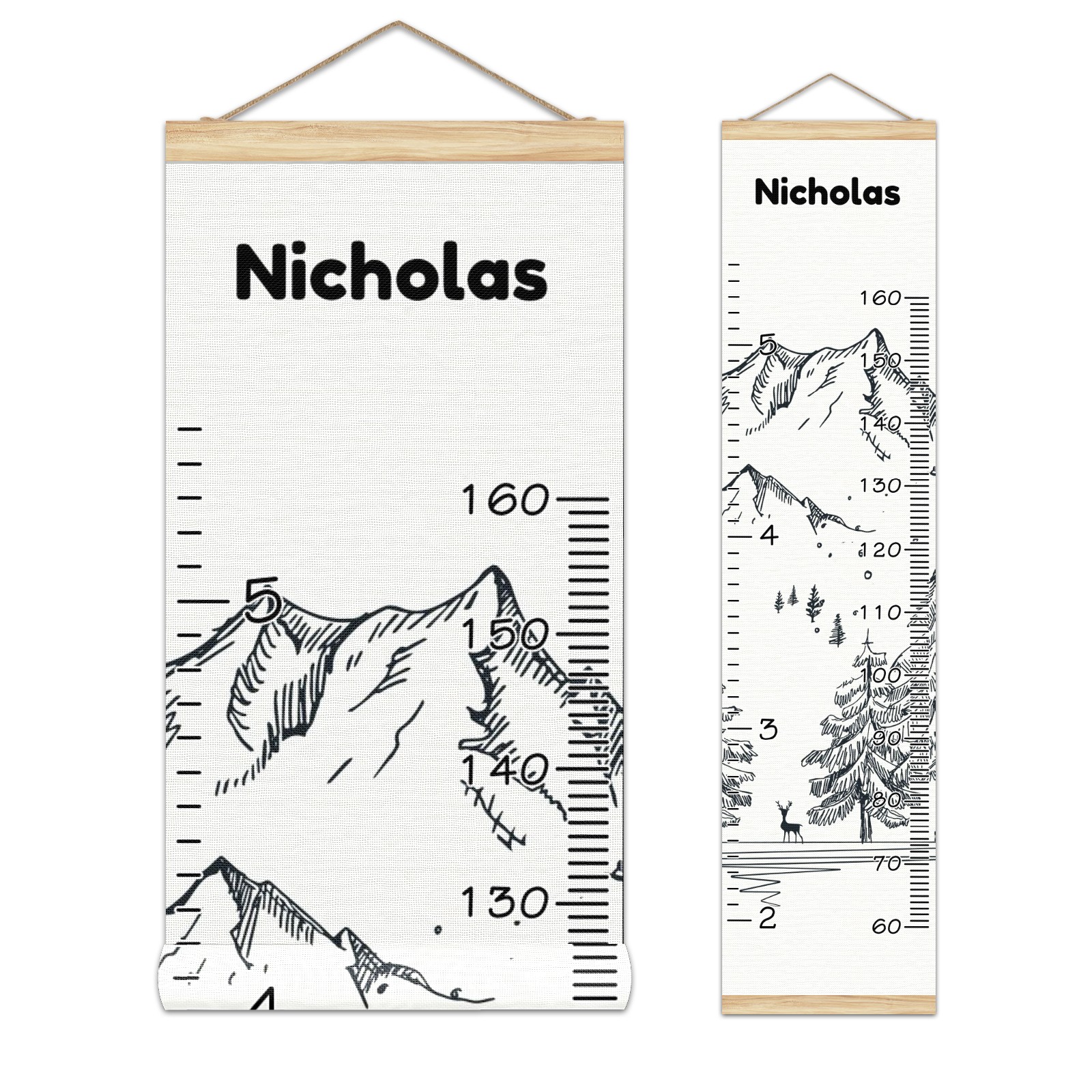 Personalized Kids Name Growth Chart Ruler for Wall Wood Frame Canvas Height Measure Chart 13.4x56 in Hanging Growth Chart Winter Mountain11.6-1 Boys Girls Room Decor